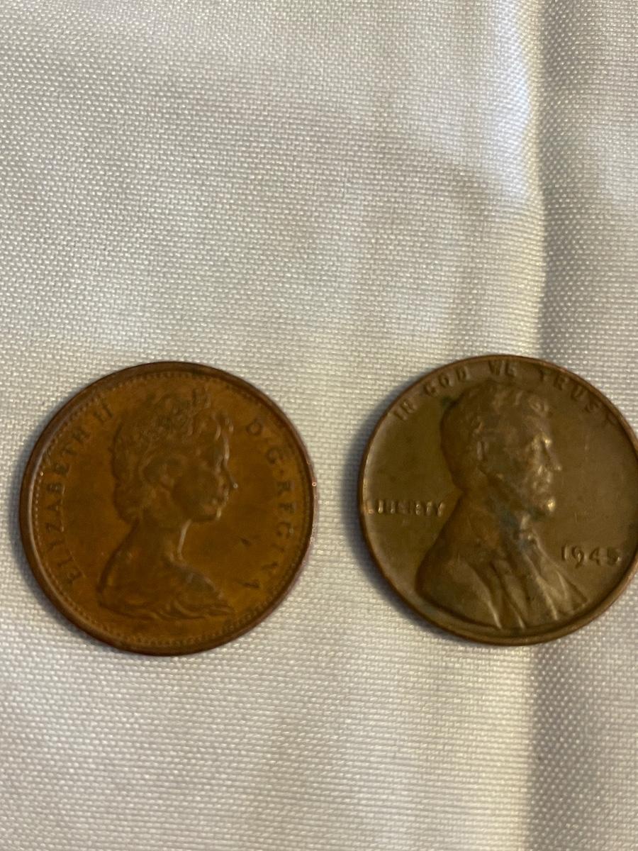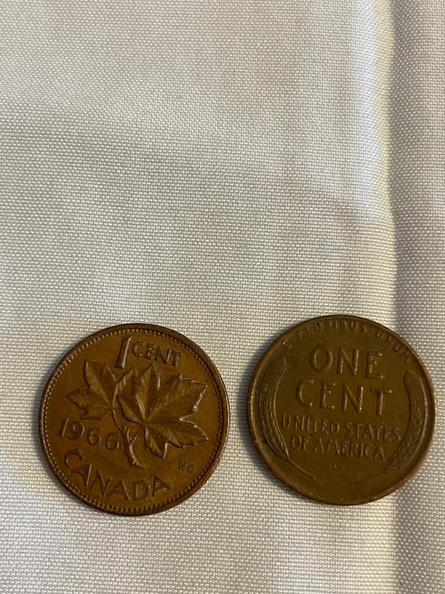 1945 WHEAT US PENNY AND CANADIAN 1966 CENT
