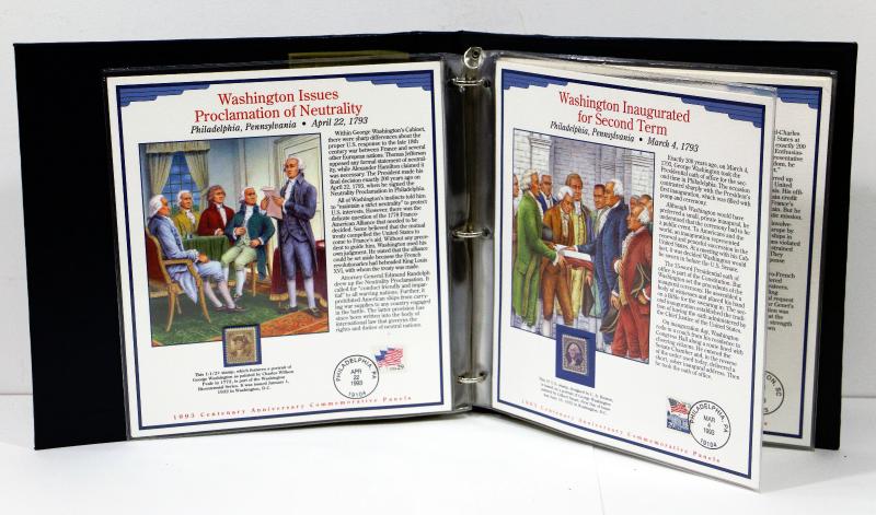 Featuring Important 100th & 200th Anniversaries in U.S. History, beautiful historical album with panels, mint stamps and canceled stamps as well as with stamp blocks, excellent condition - as seen on pictures.