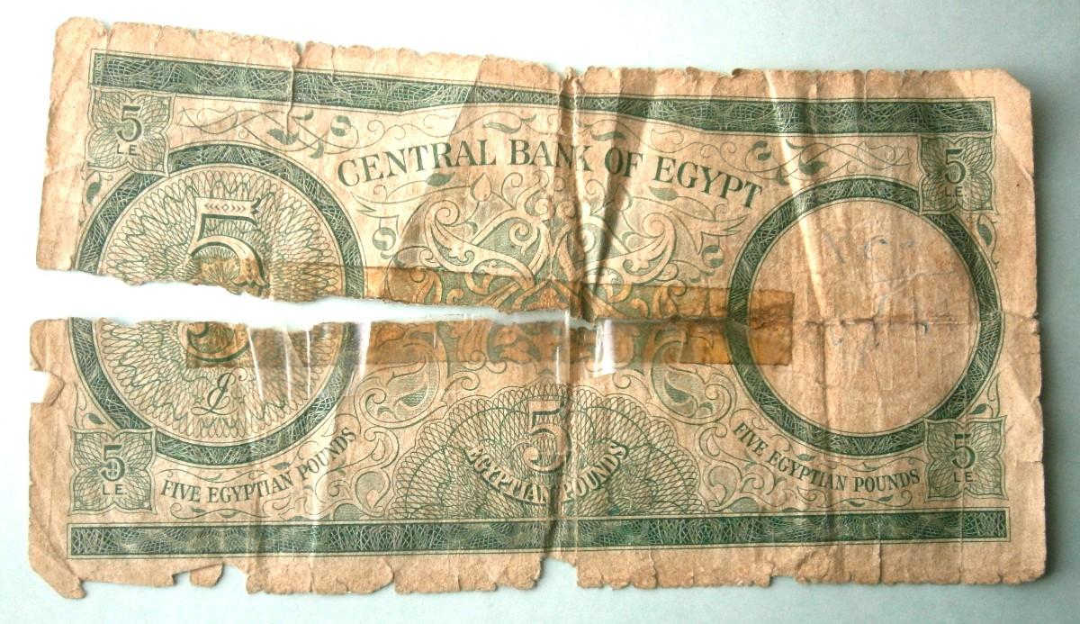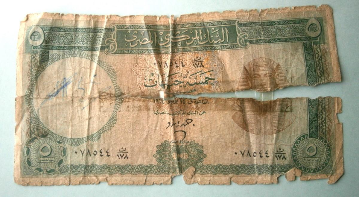 CENTRAL BANK OF EGYPT 5 EGYPTIAN POUNDS Banknote 1960's