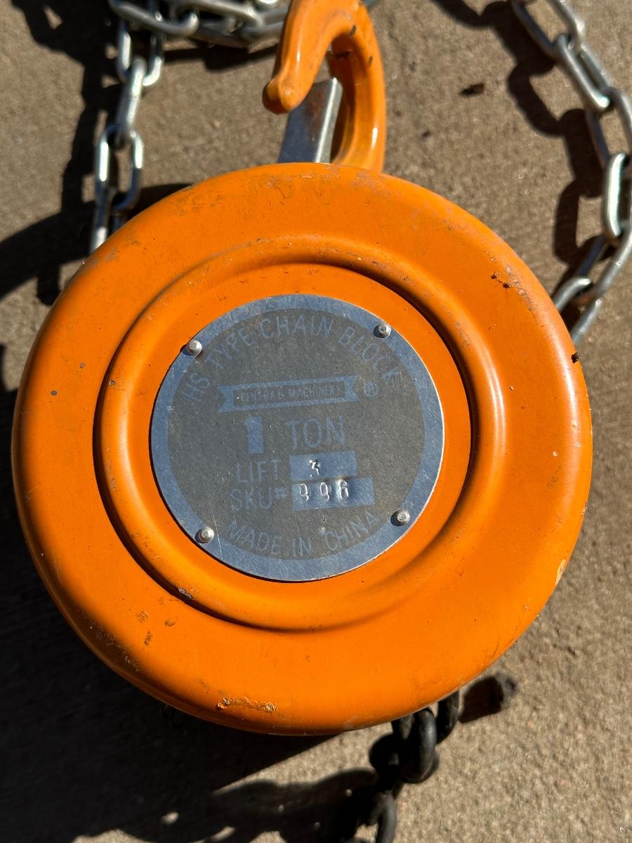 CENTRAL MACHINERY 1 TON CHAIN HOIST AND CHAINS