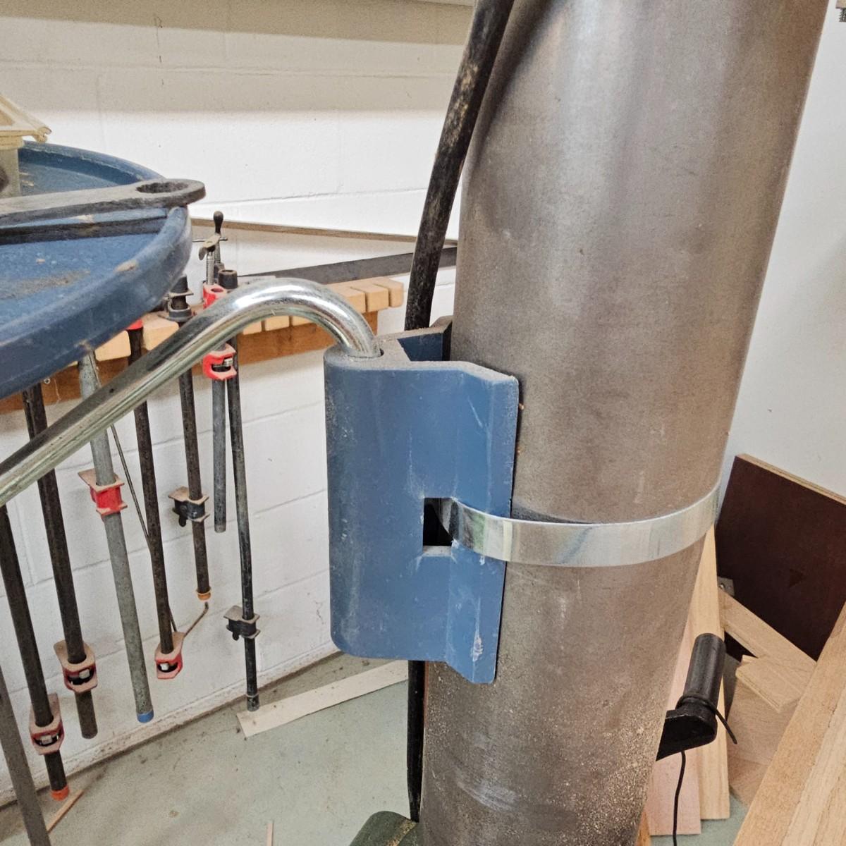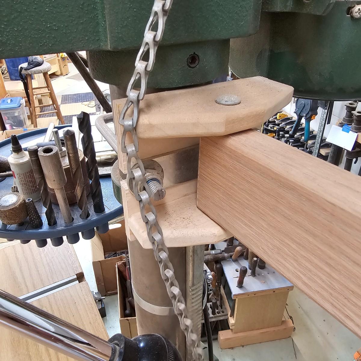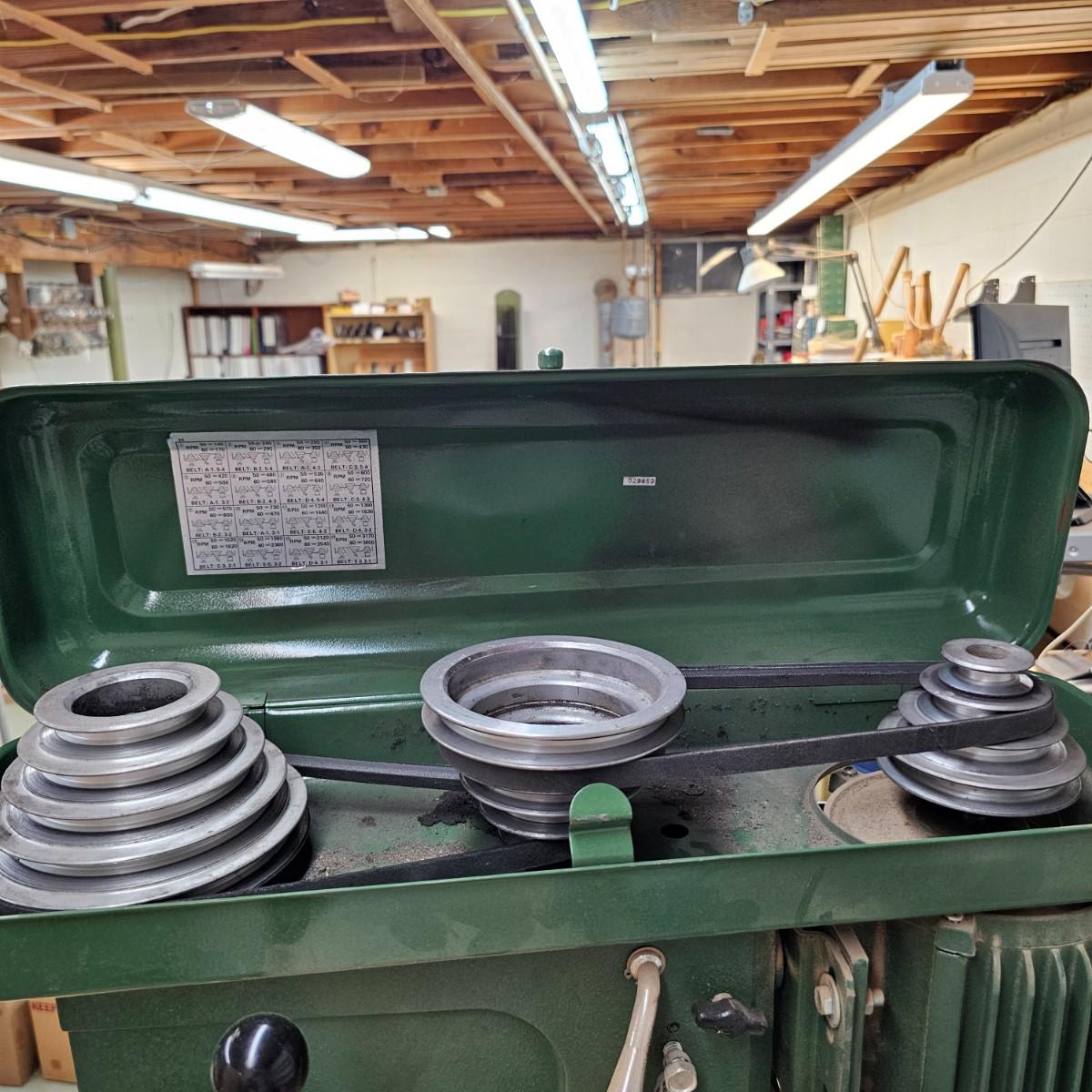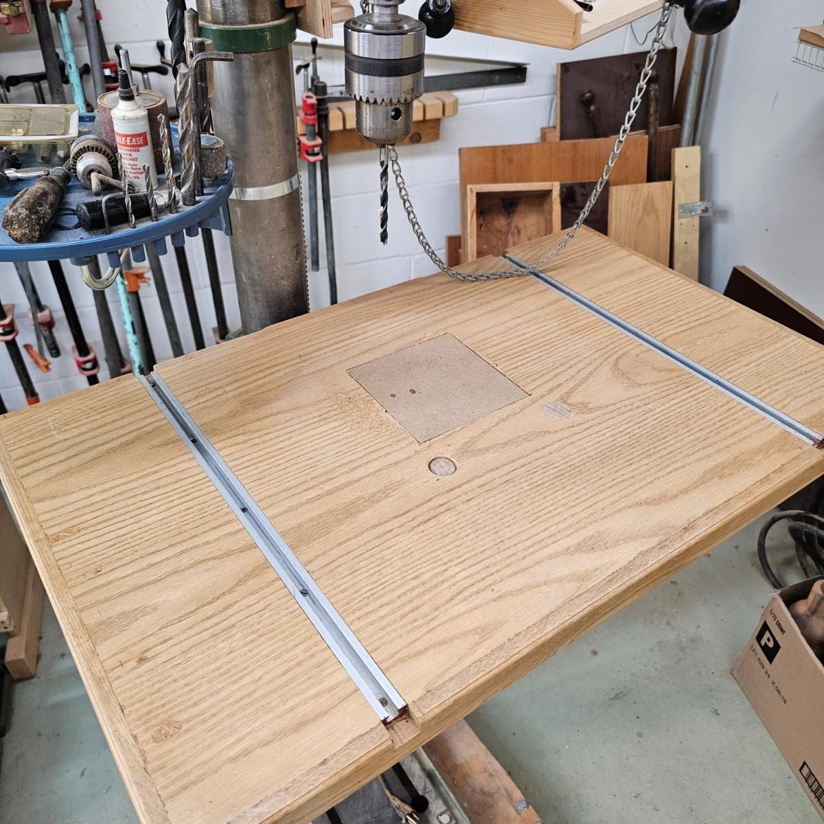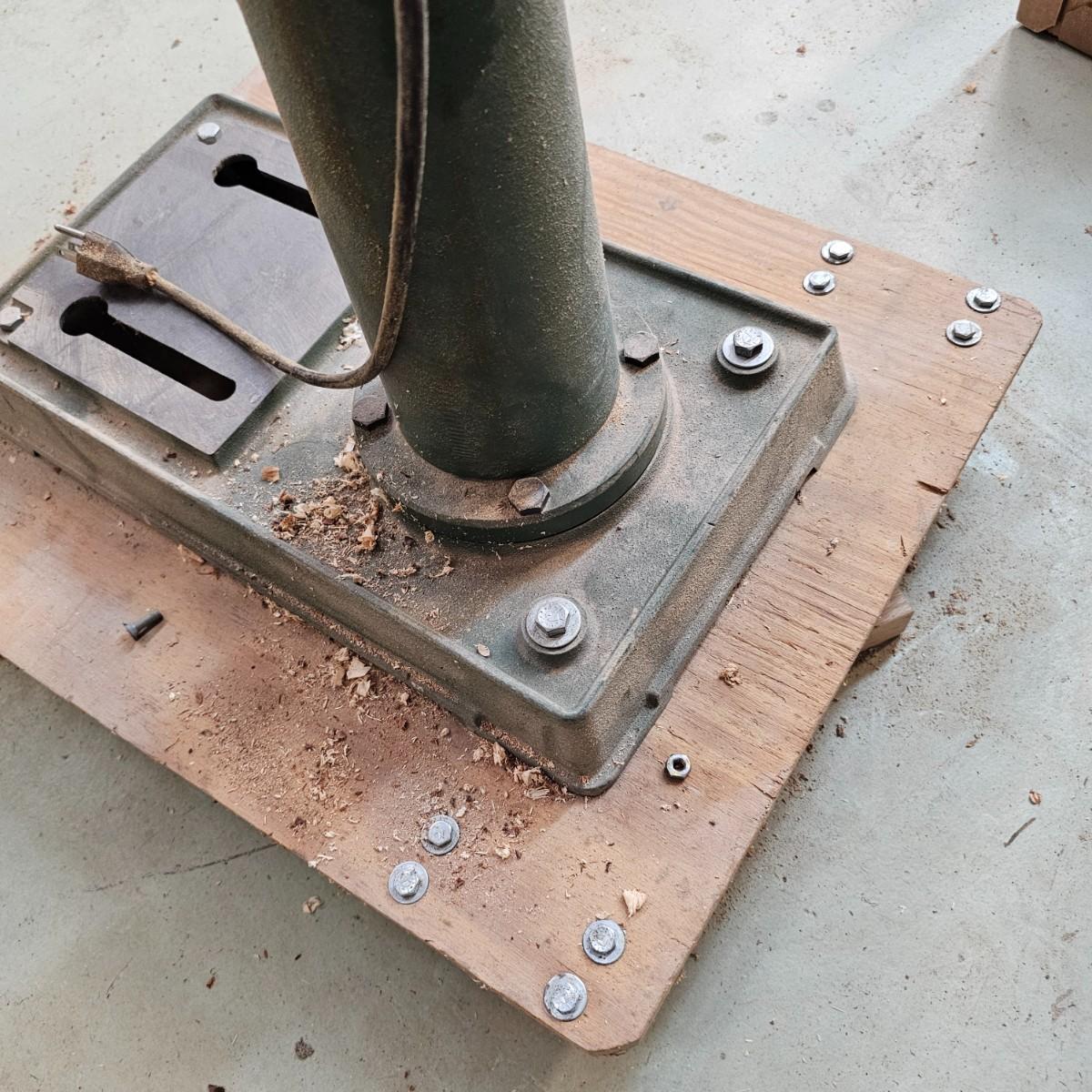 Floor standing heavy duty drill press by Central Machinery. 16 speed adjustable by different belt configurations. Item has had a custom work table added, as well as two specialty tool holders. Unit is wired for and tested on 120V power. Drill powered on when plugged in. Drill is bolted to rolling base for ease of movement, and measures 30" x 31" x 67"H on rolling base, 63"H on its own. Includes chuck key and all items seen on tool holders. See photos for details. Local pickup only. Winning bidder must bring assistance to help move and load this item due to its weight and/or size.