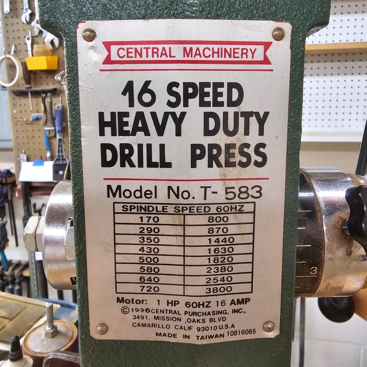Central Machinery 16 Speed Drill Press & Accessories (WS-JS)