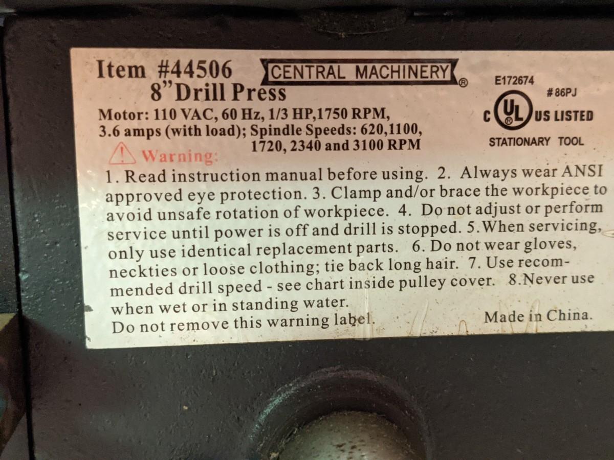 Central Machinery 8" drill press