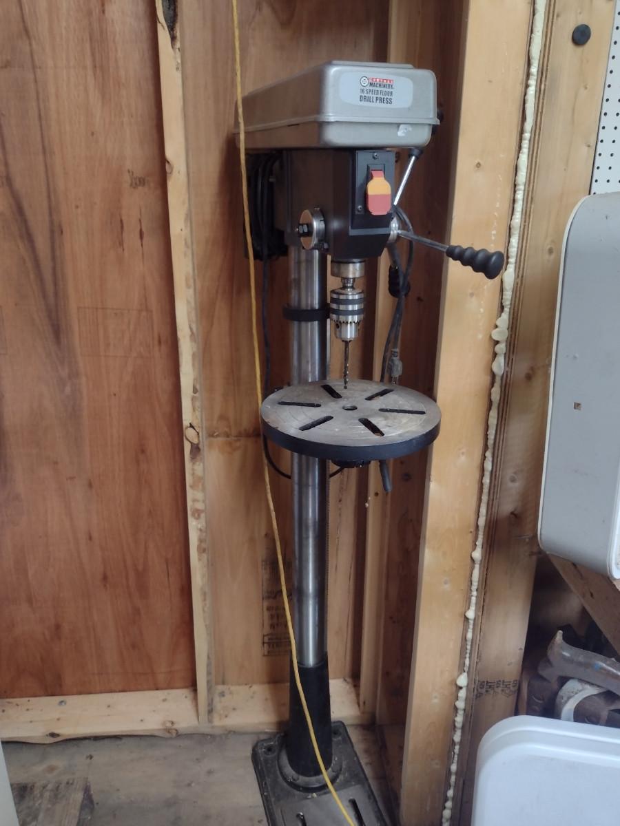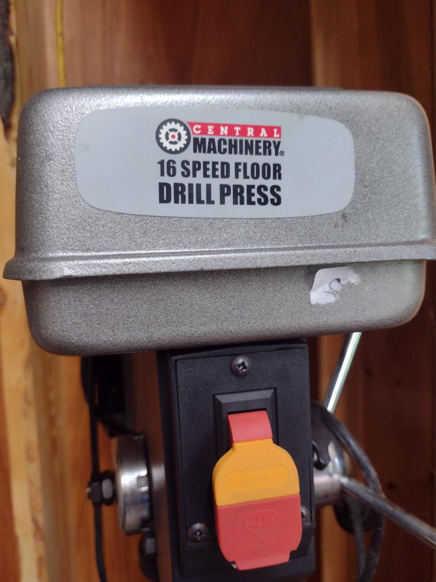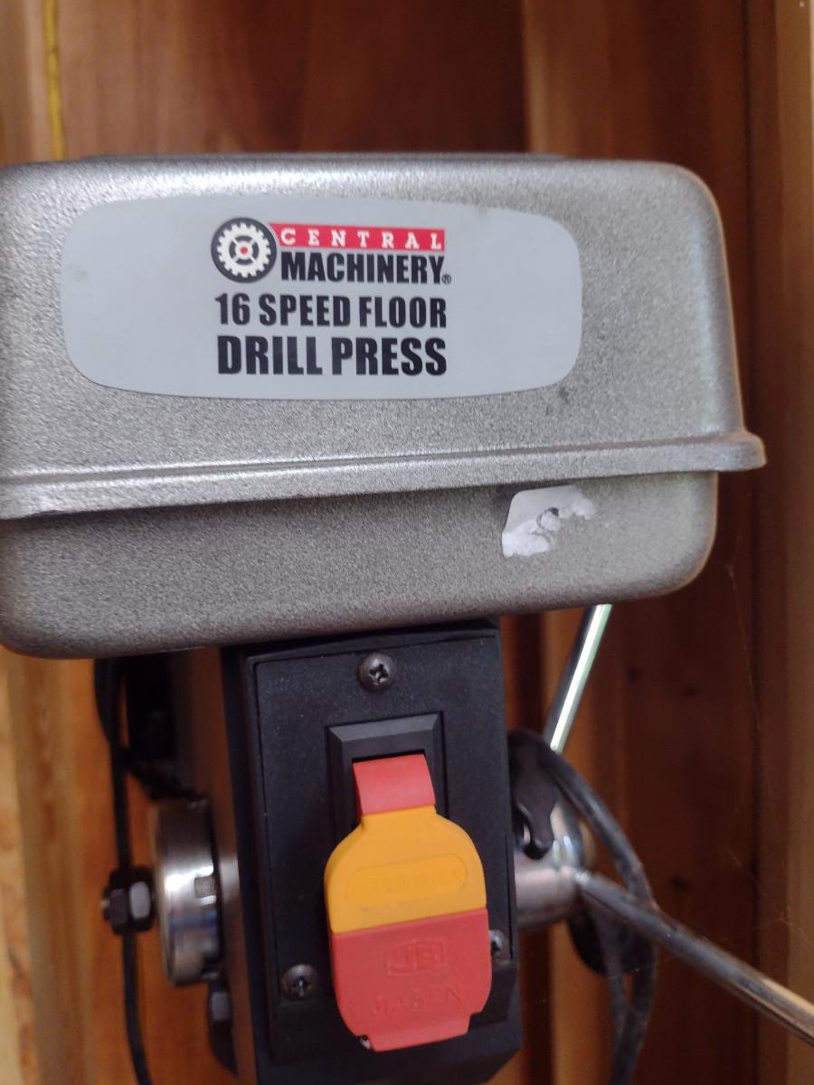 Central Machinery Drill Press. In working condition. Will have to bring hand truck. Items are about a hundred yards from the driveway.