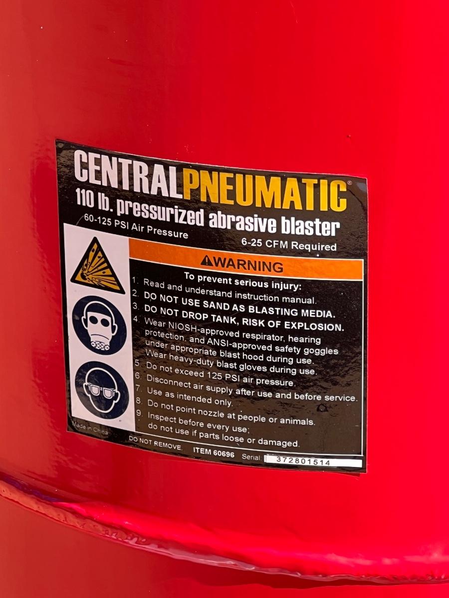 CENTRAL PNEUMATIC ~ 110lb Pressurized Abrasive Blaster
