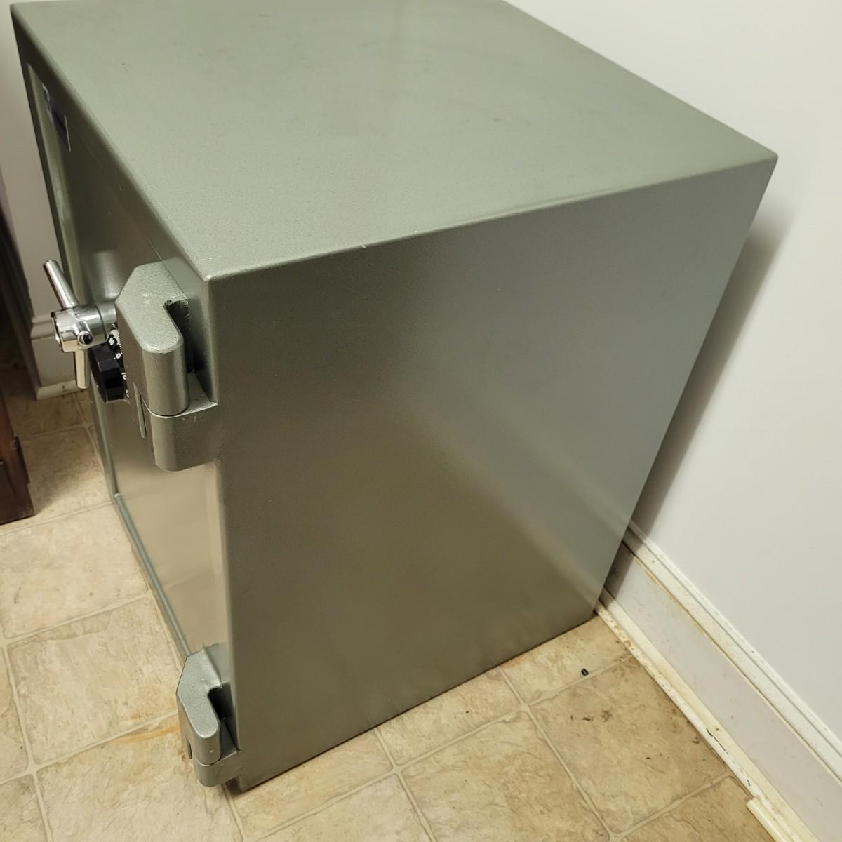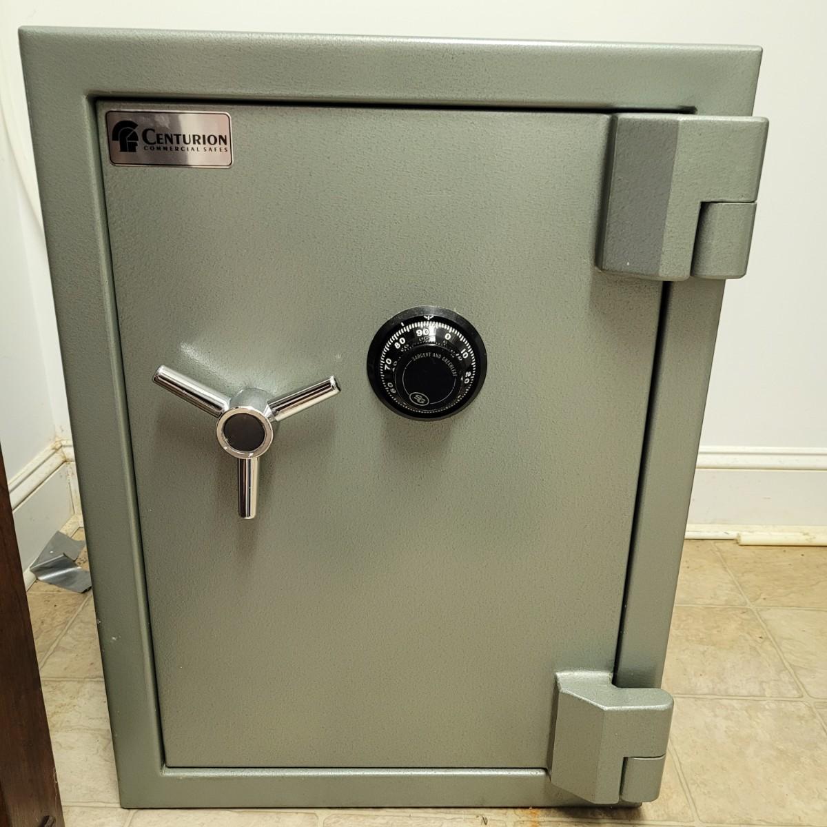 This Centurion combination lock safe needs to be recoded. Current code unknown, unable to open safe. Measures approximately 20" x 20.5" x 27"H. Local pickup only. Extremely heavy! Winning bidder must bring assistance to help move and load this item due to its weight. Safe is located in basement.