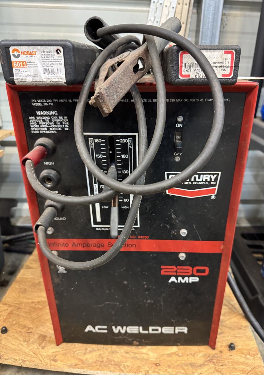 CENTURY 230 AMP AC WELDER, RODS INCLUDES HOBART WELDING RODS AS PICTURED, TESTED