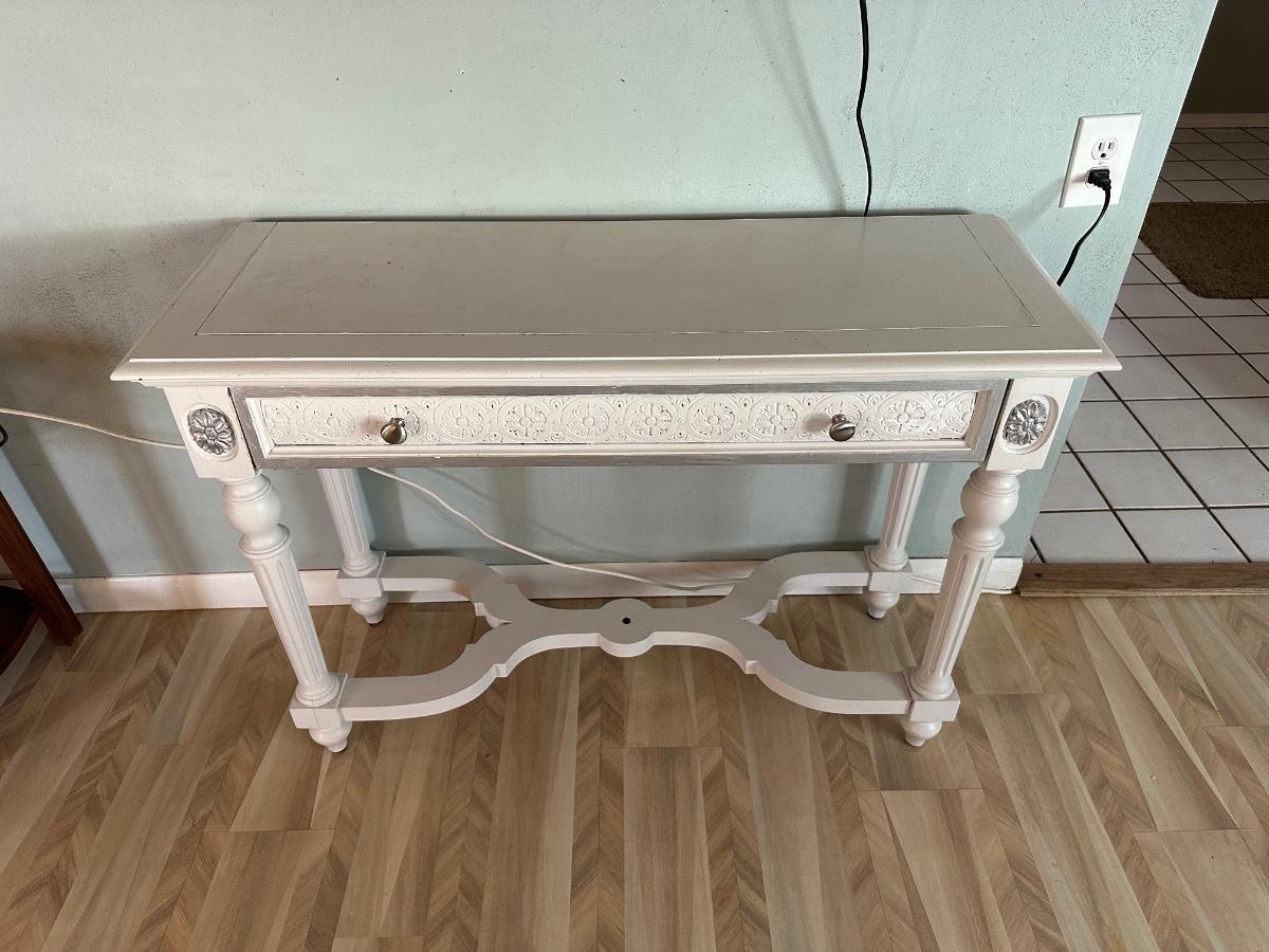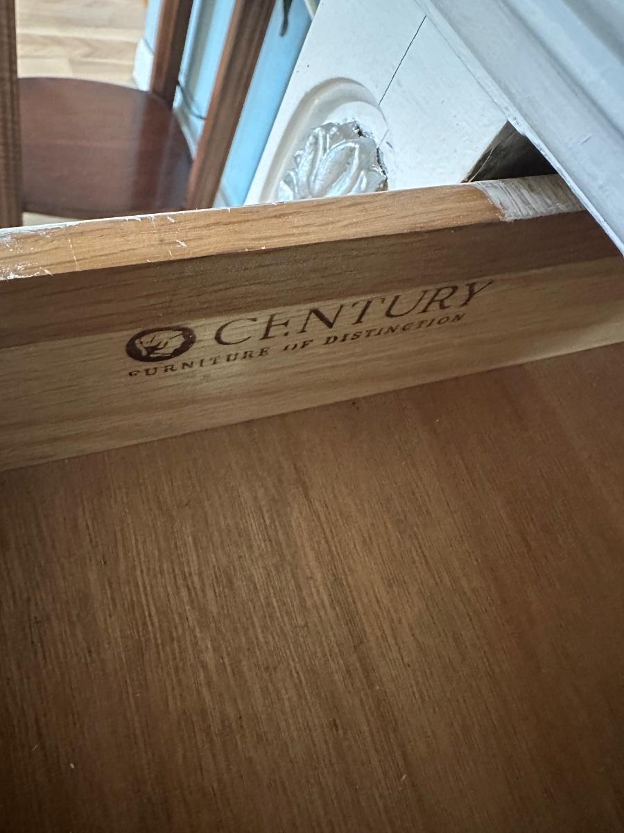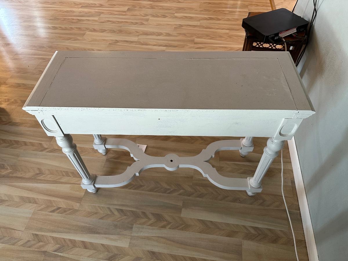 Nicely designed table built by Century “Furniture of Distinction”. It was painted white and measures 30.5”H x 42.5”W x 15”D