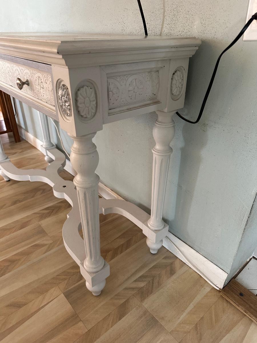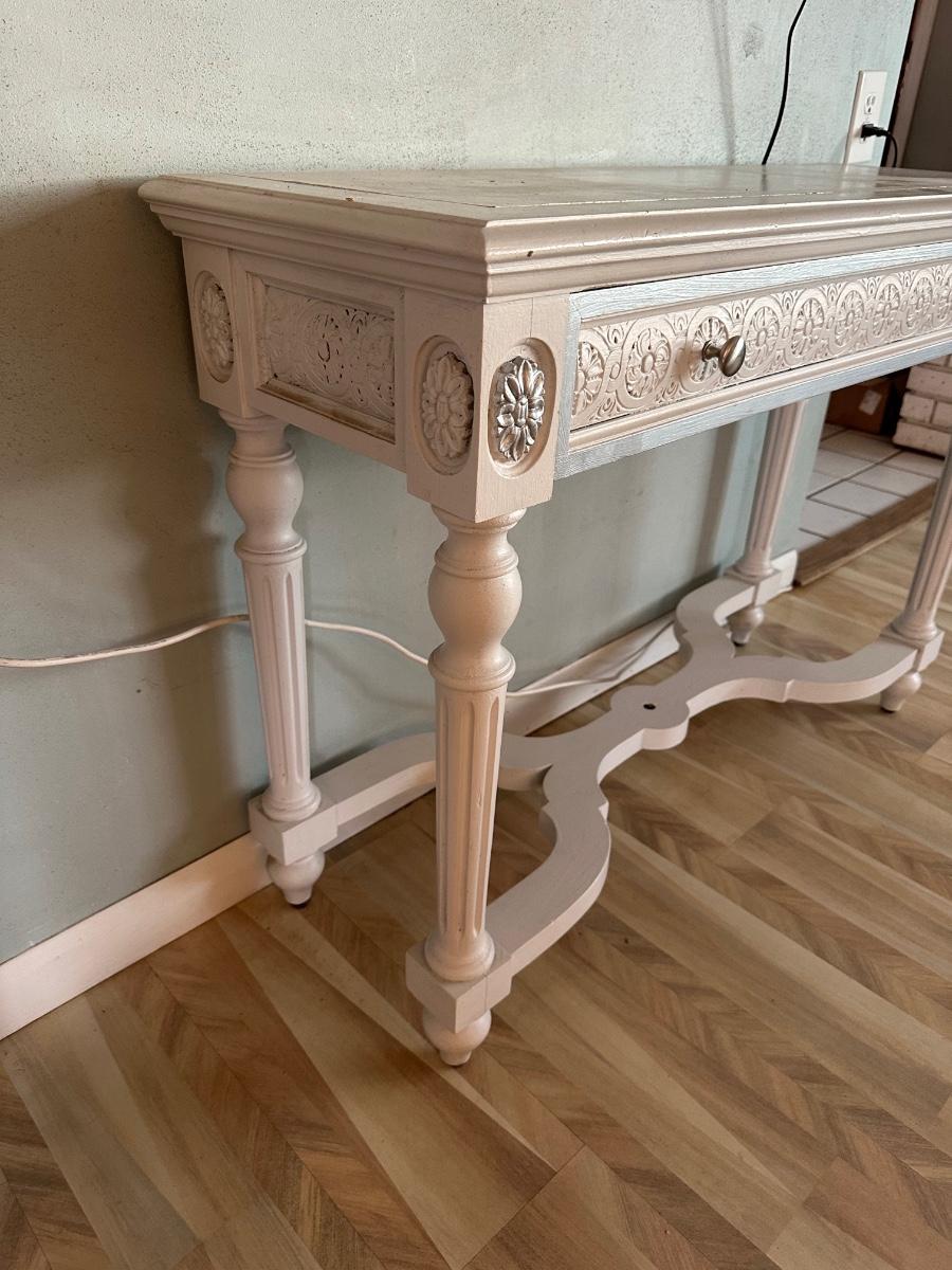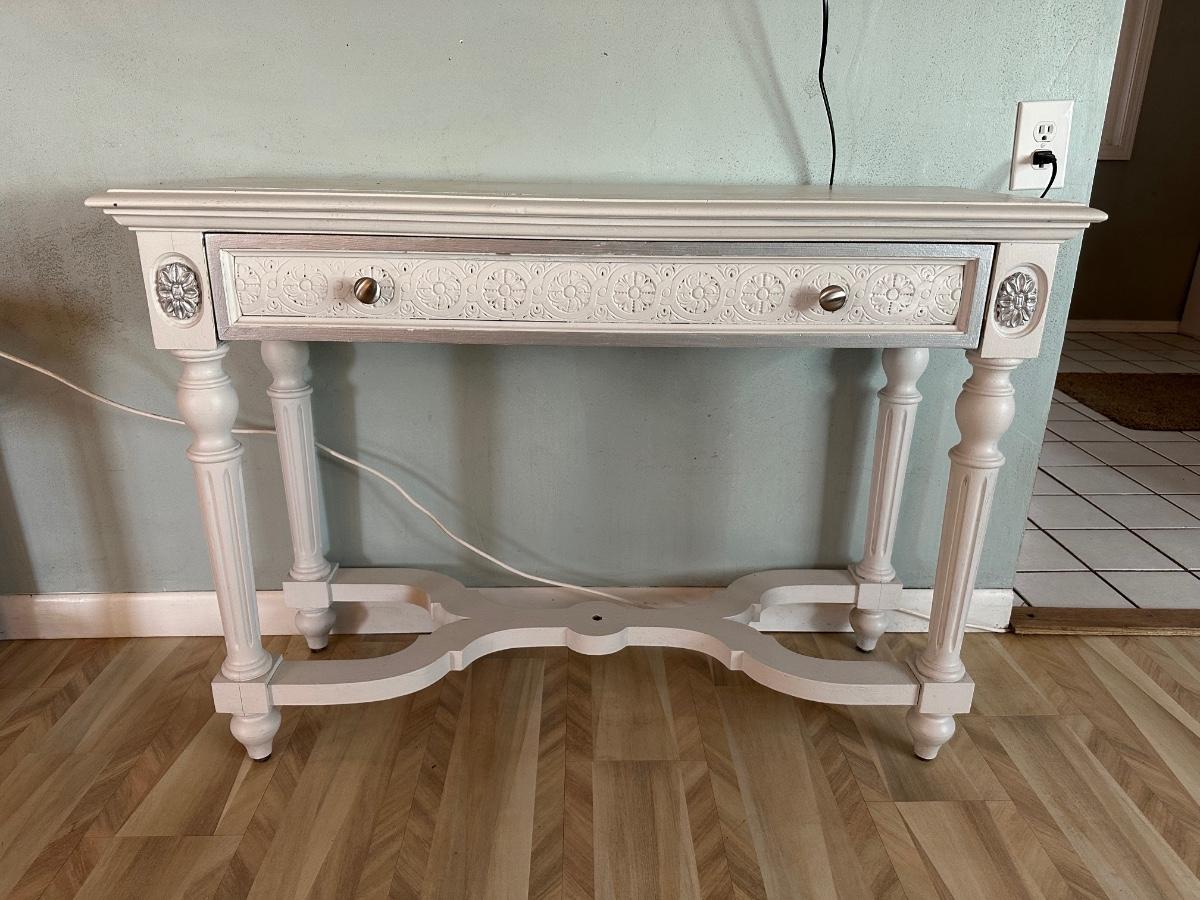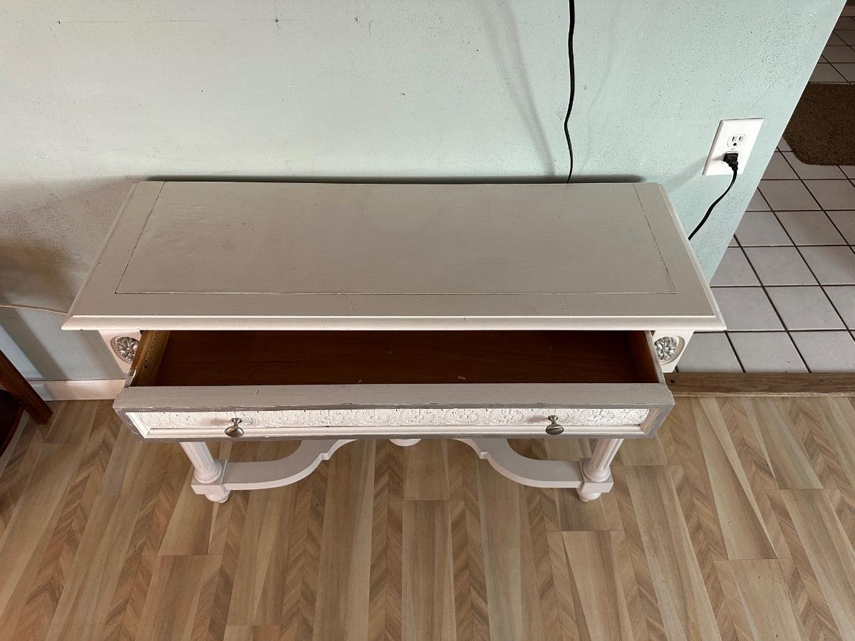 Nicely designed table built by Century “Furniture of Distinction”. It was painted white and measures 30.5”H x 42.5”W x 15”D