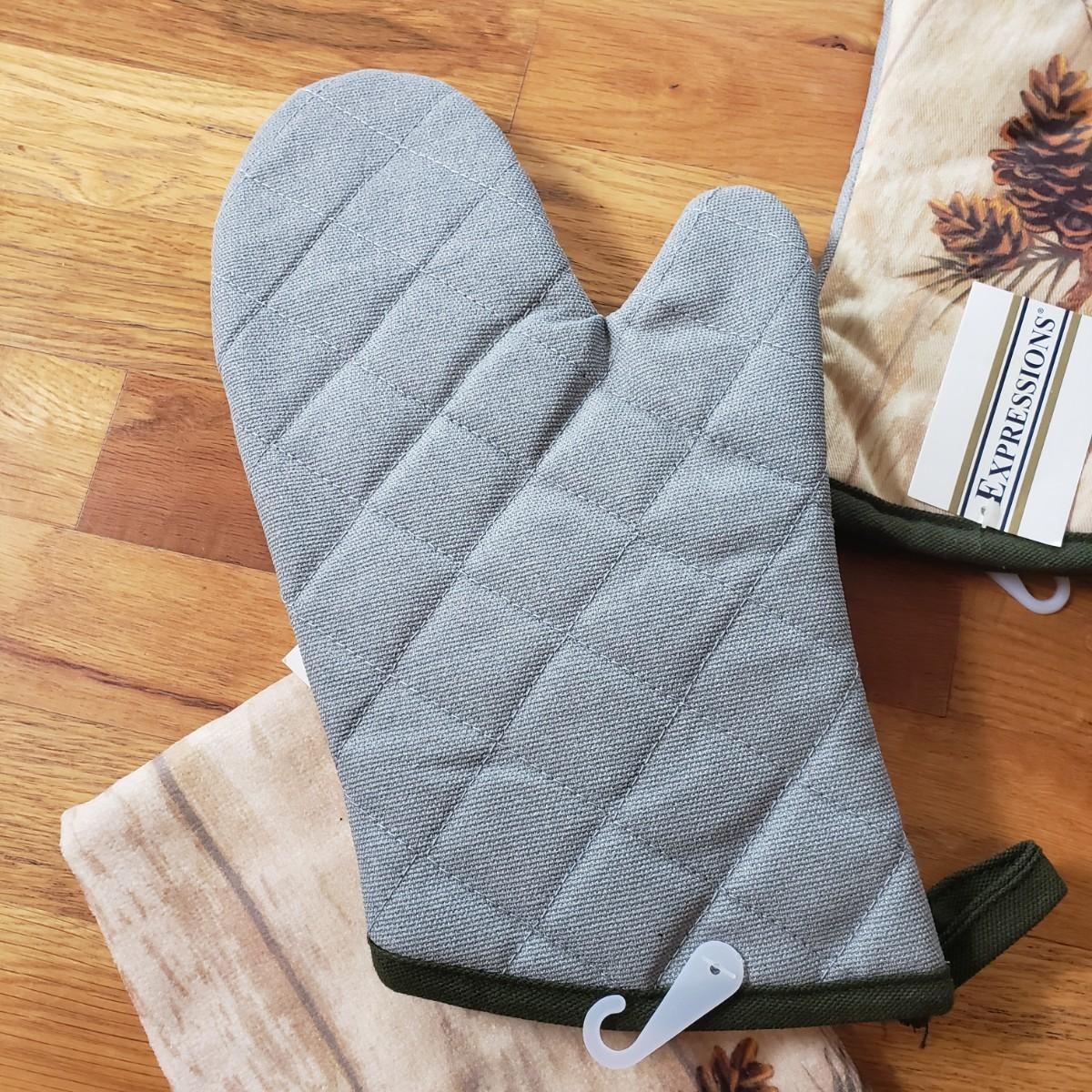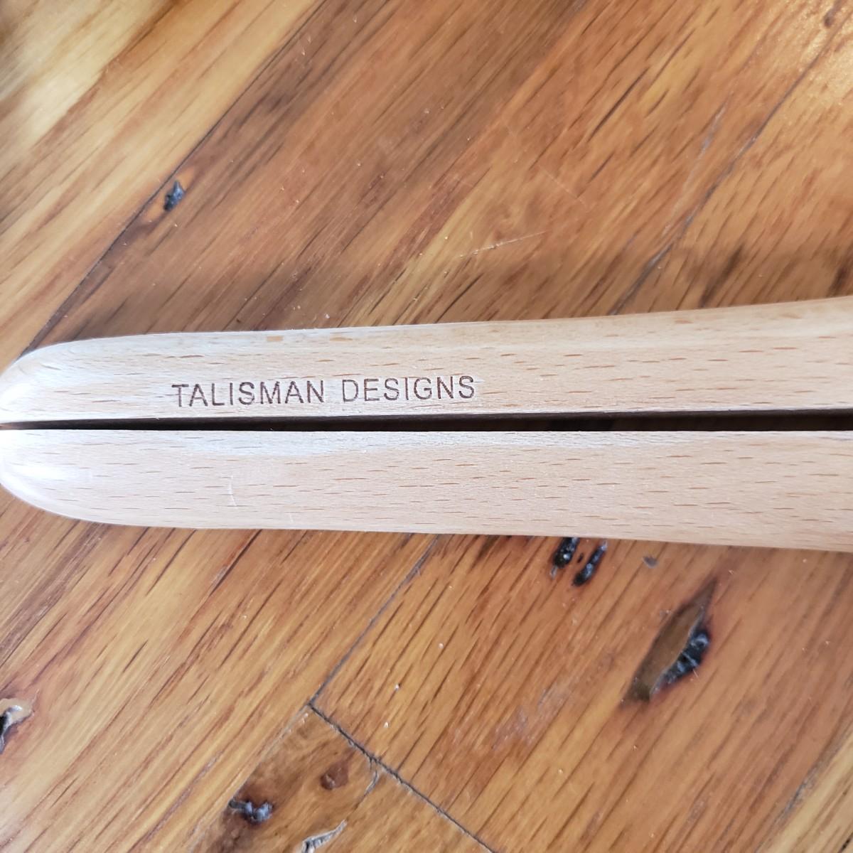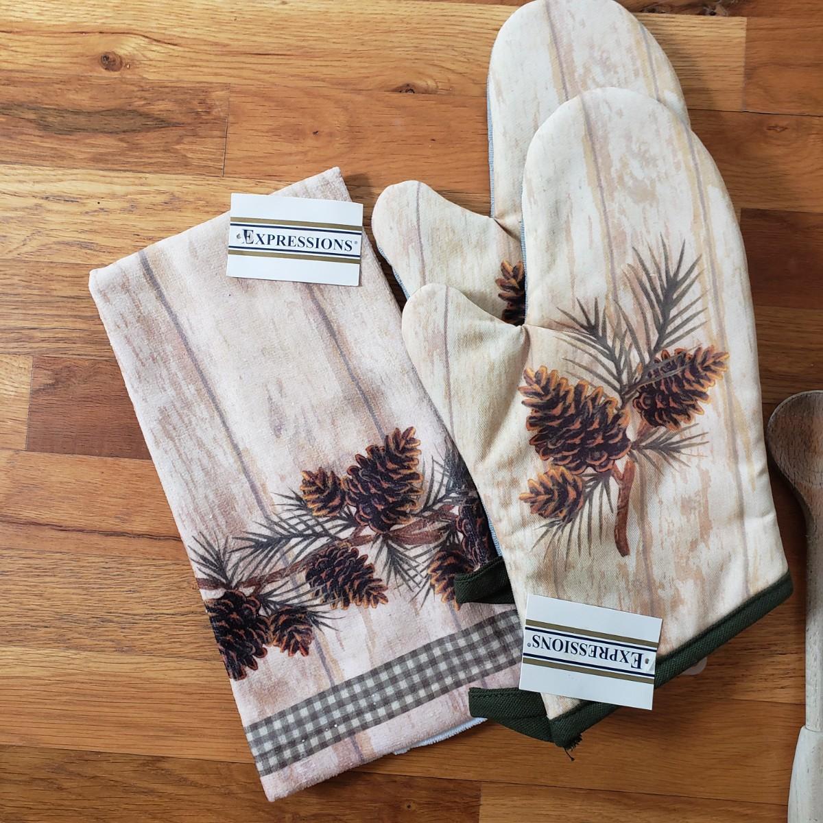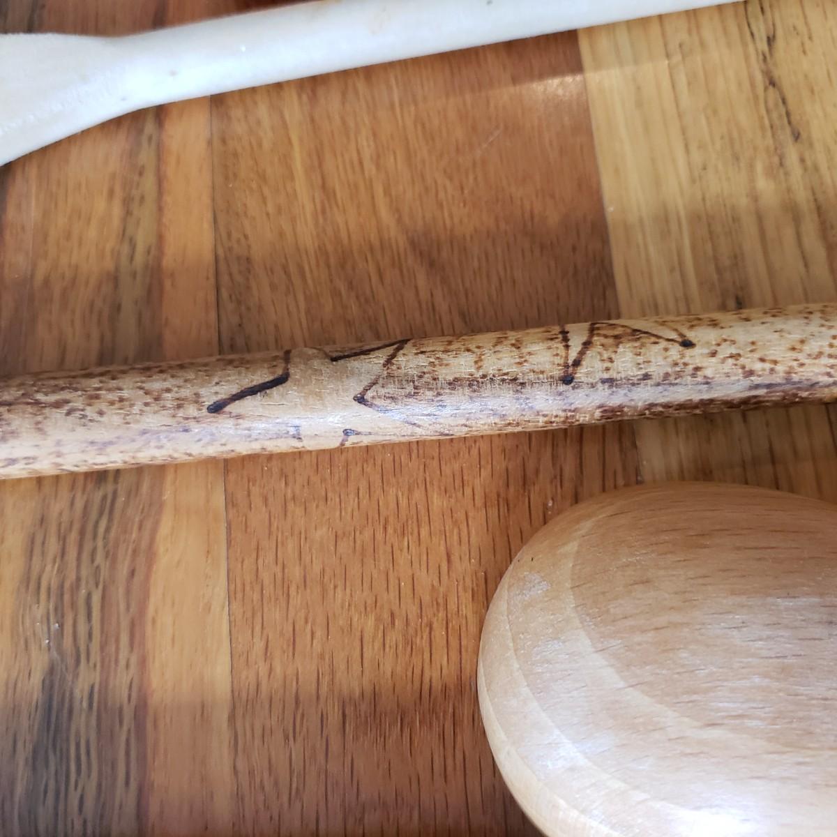 This is an 18-piece wooden spoon and NIB towel and oven mitts. There are some unique spoons, like the wood-burned star and moons and the Talisman Designs spoons, as well as one rubber spatula.