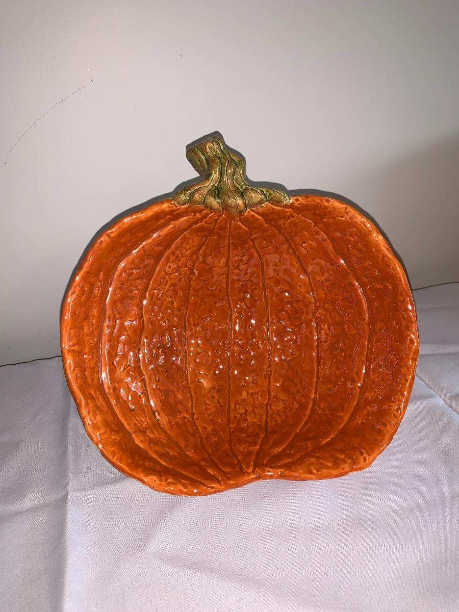 Decorative pumpkin, can be stoo upright or used as non-food holding bowl .No damage. No signature.