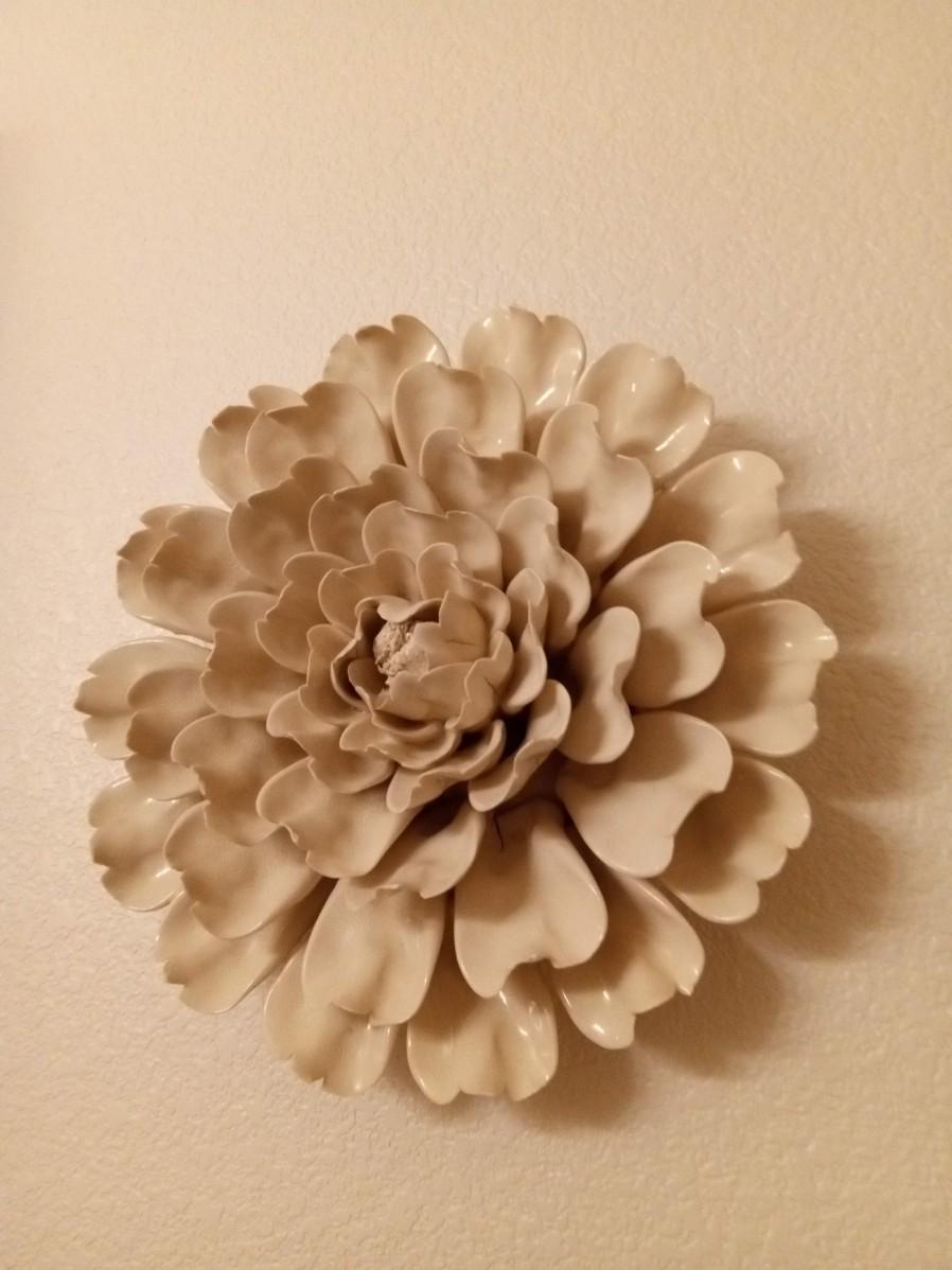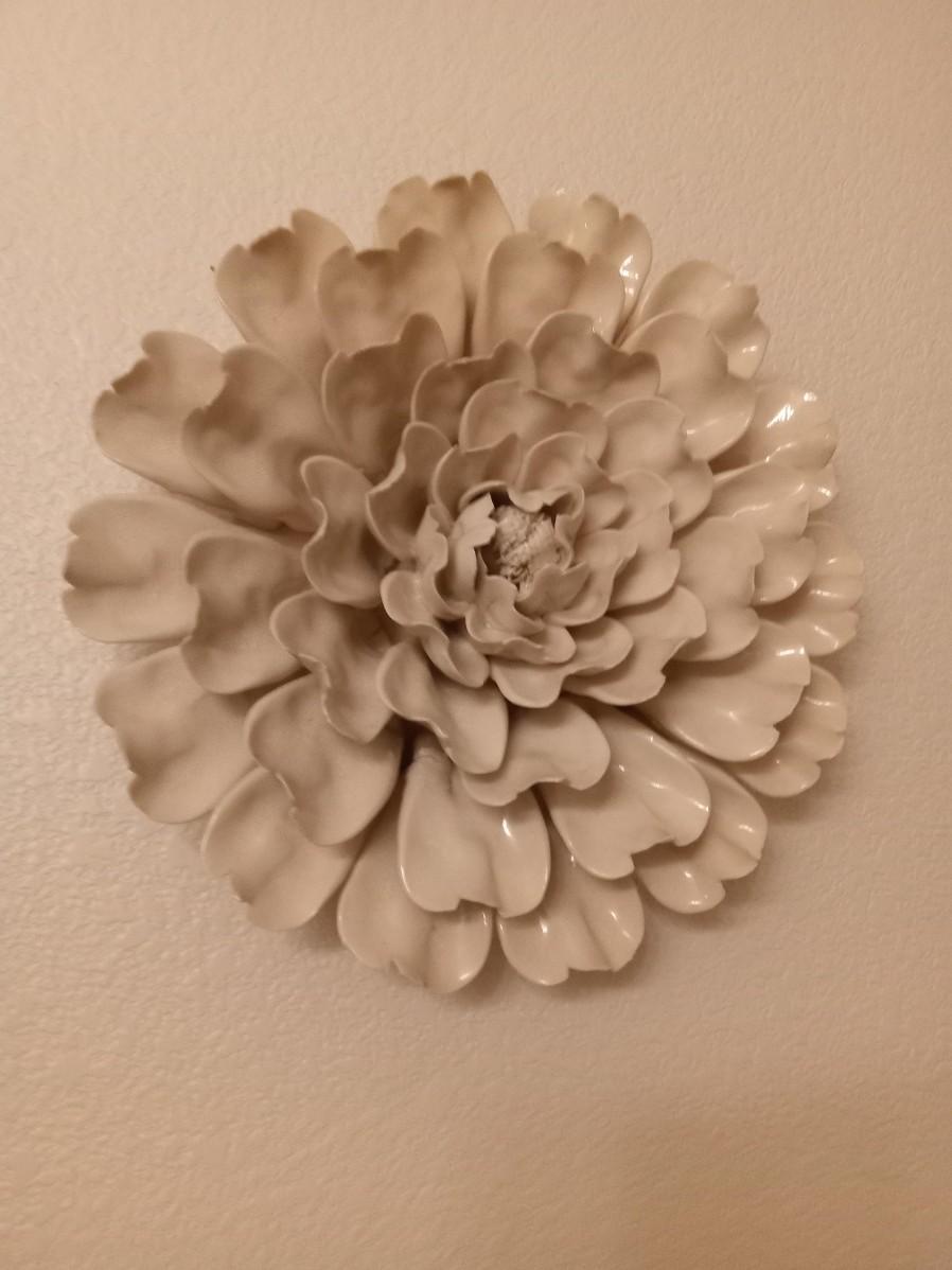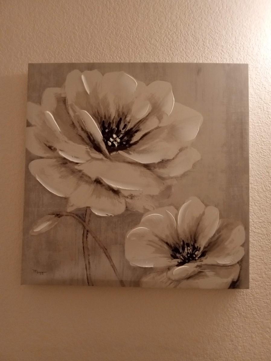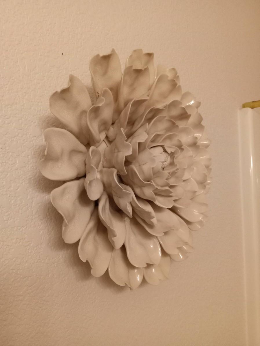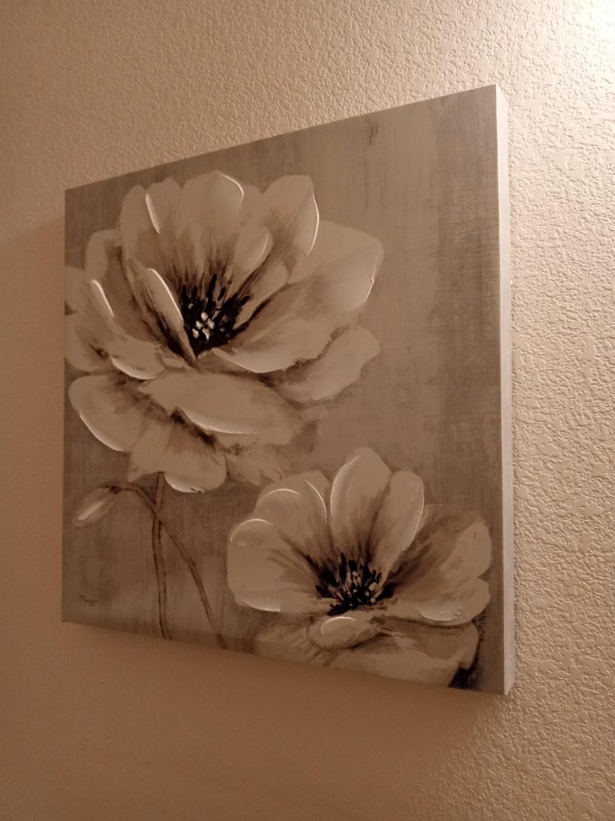 THE CERAMIC FLOWER IS APPROX 12", THE CANVAS PAINTING IS 20" SQUARE