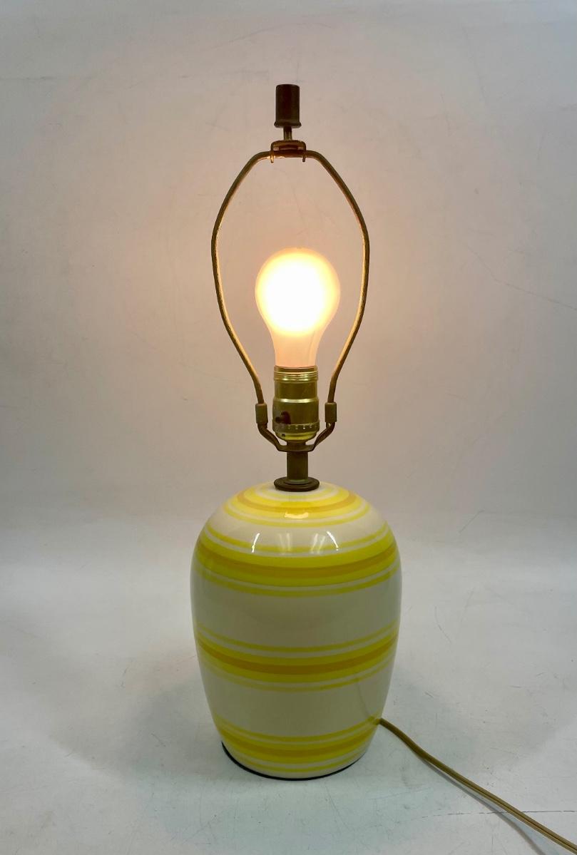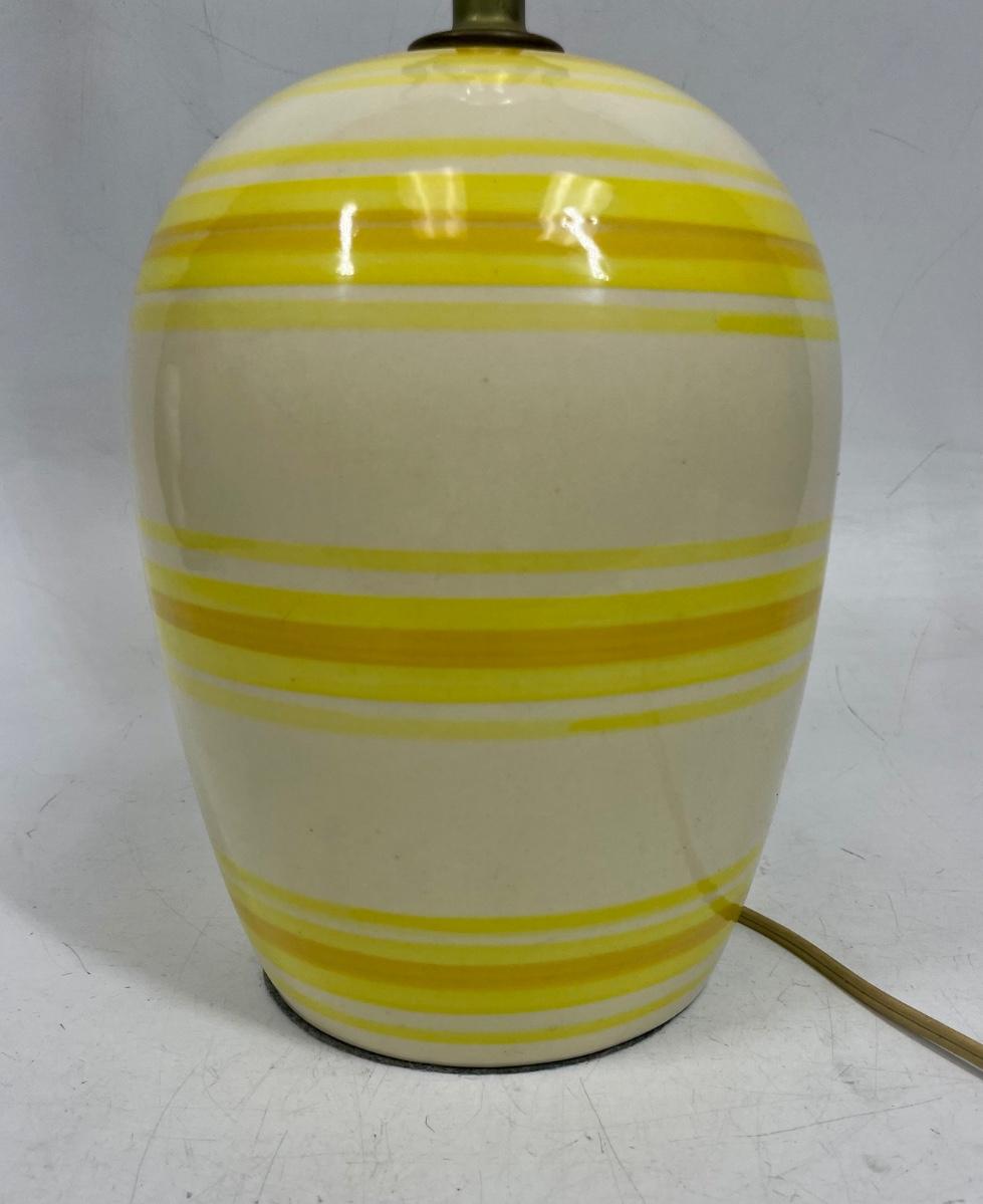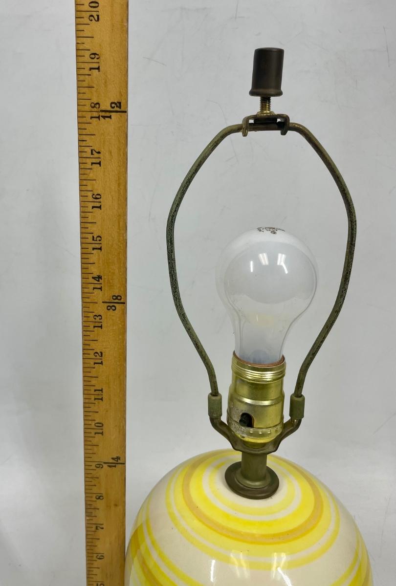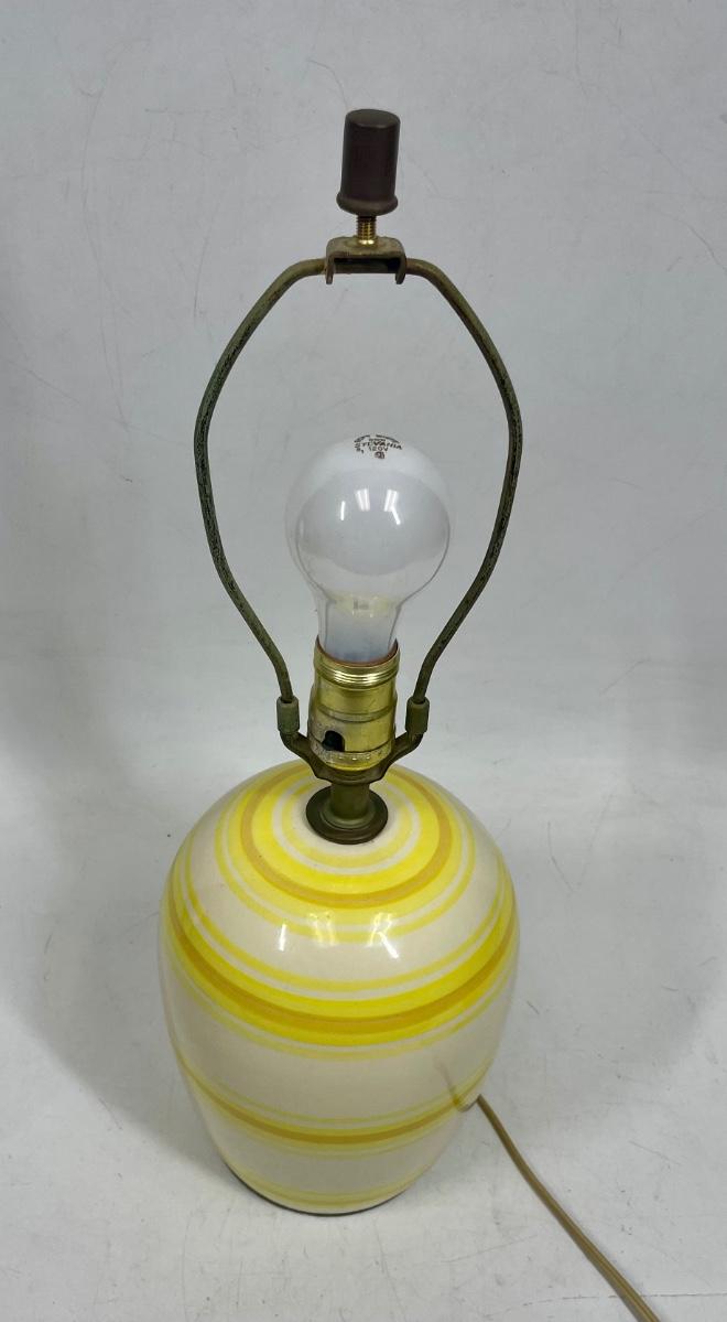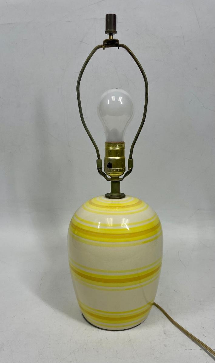 Vintage ceramic table lamp with yellow, brown and cream colors. Excellent condition. No shade.
