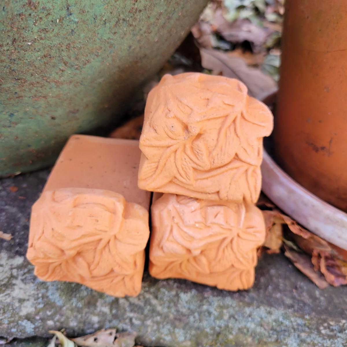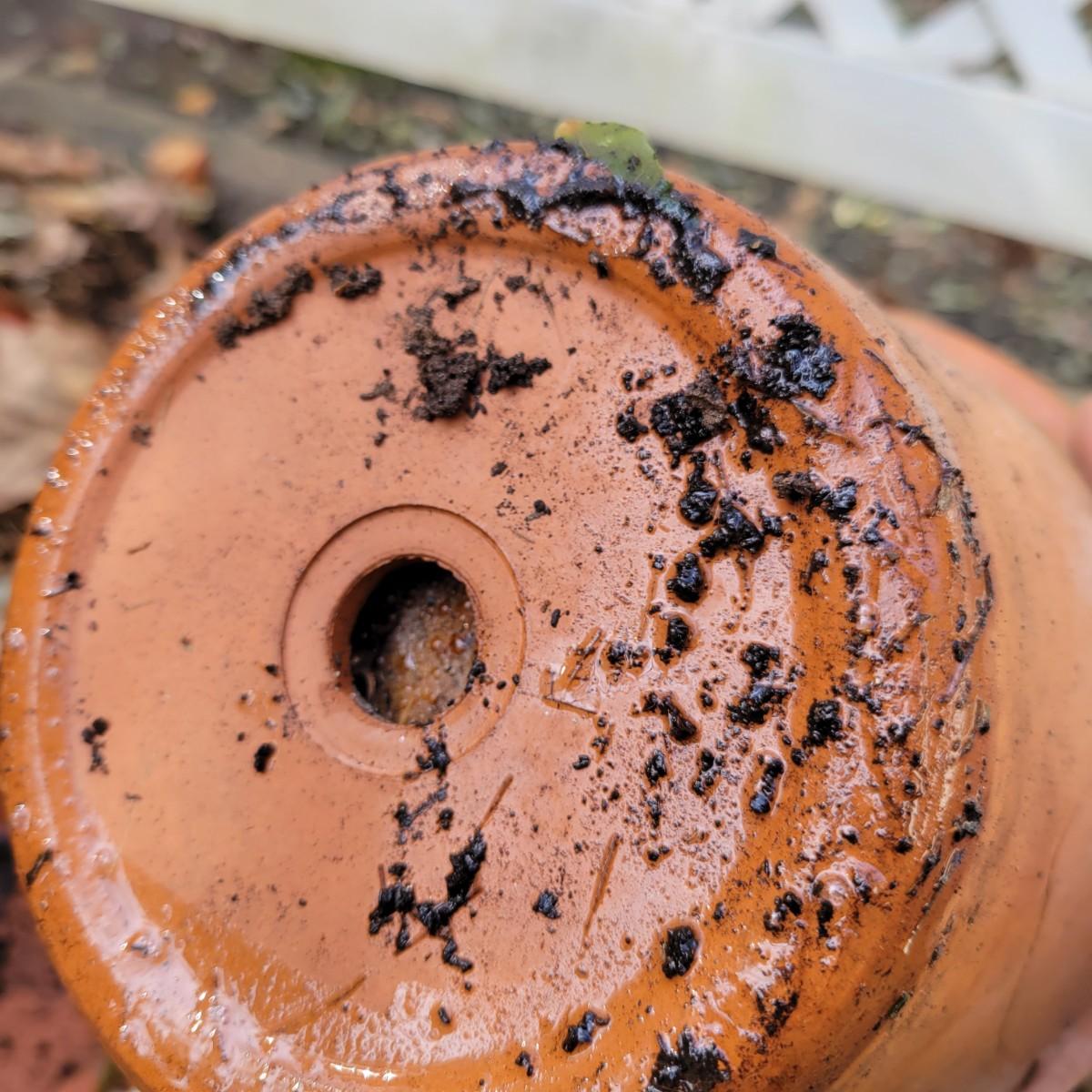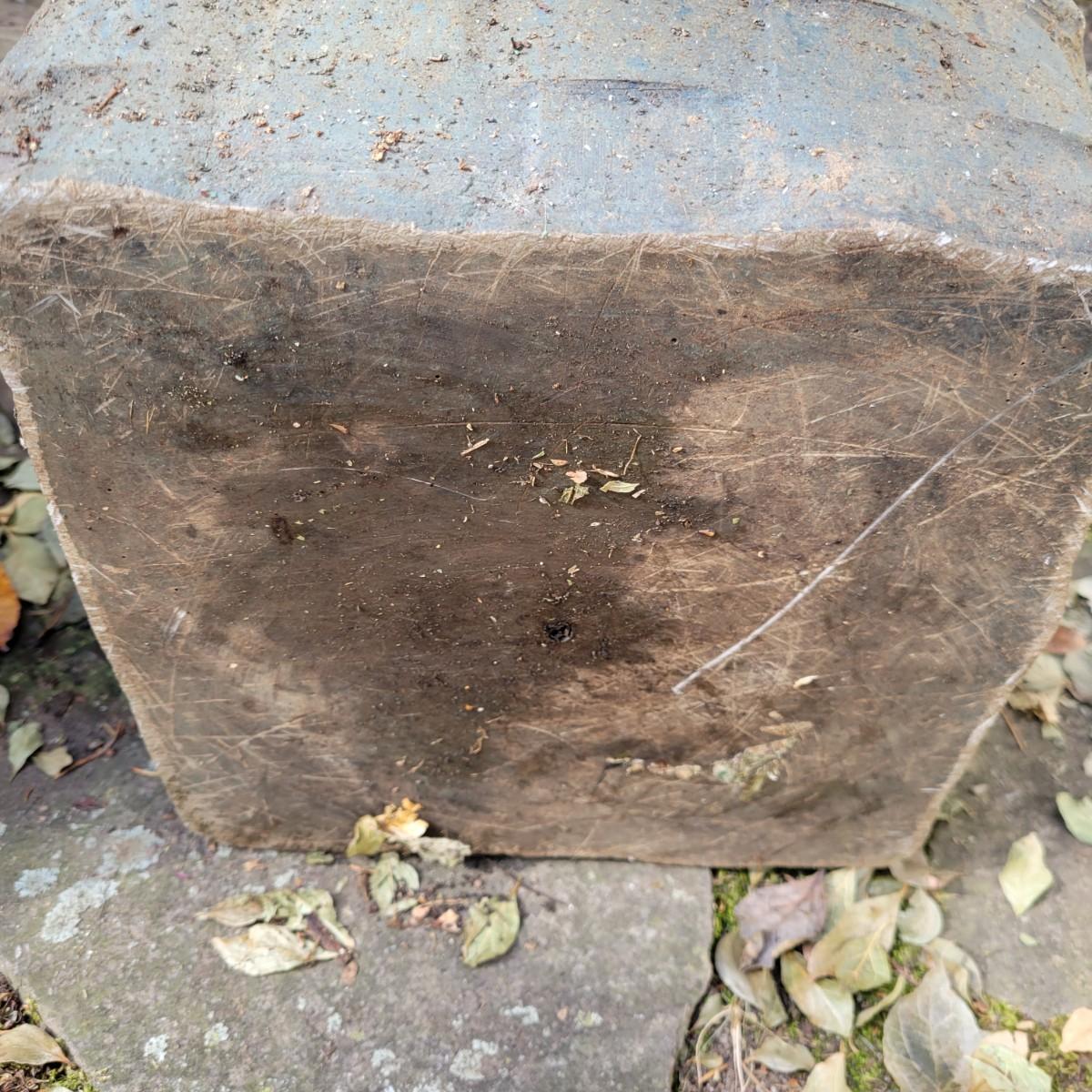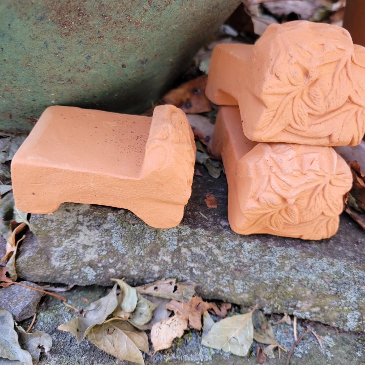 An assortment of planters that are a mix of materials. Included are five planters, the three largest are ceramic and the two smaller ones are terracotta. Also included is a set of three terracotta planter feet. See images for conditions and examples of blemishes. The large green planter measures approximately 15"D x 11.5"H. Local pickup only