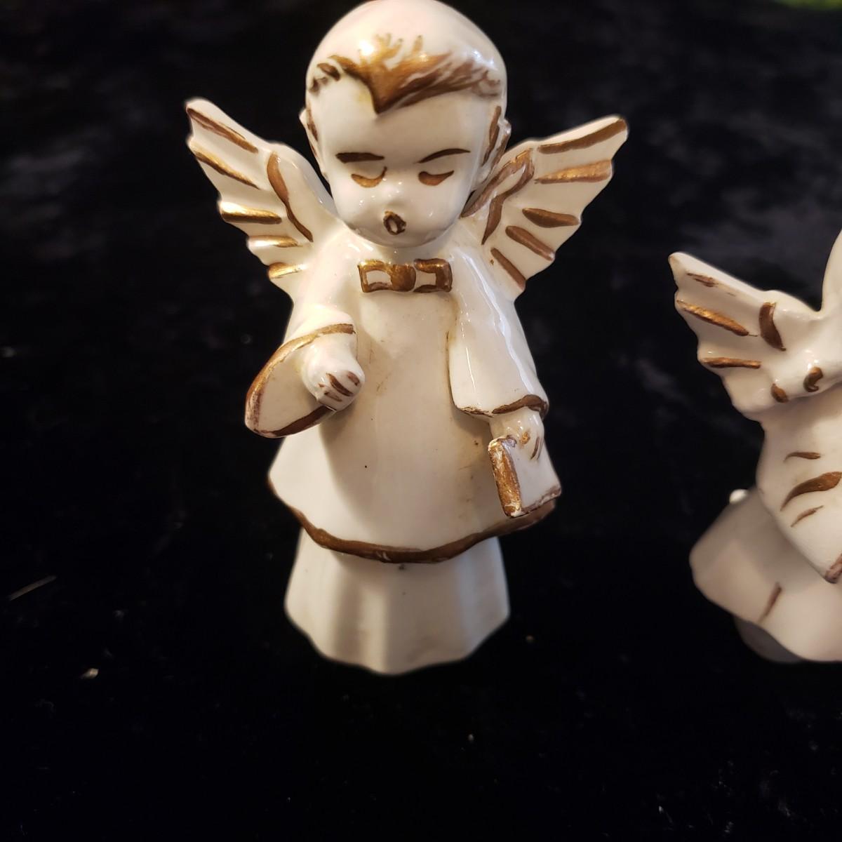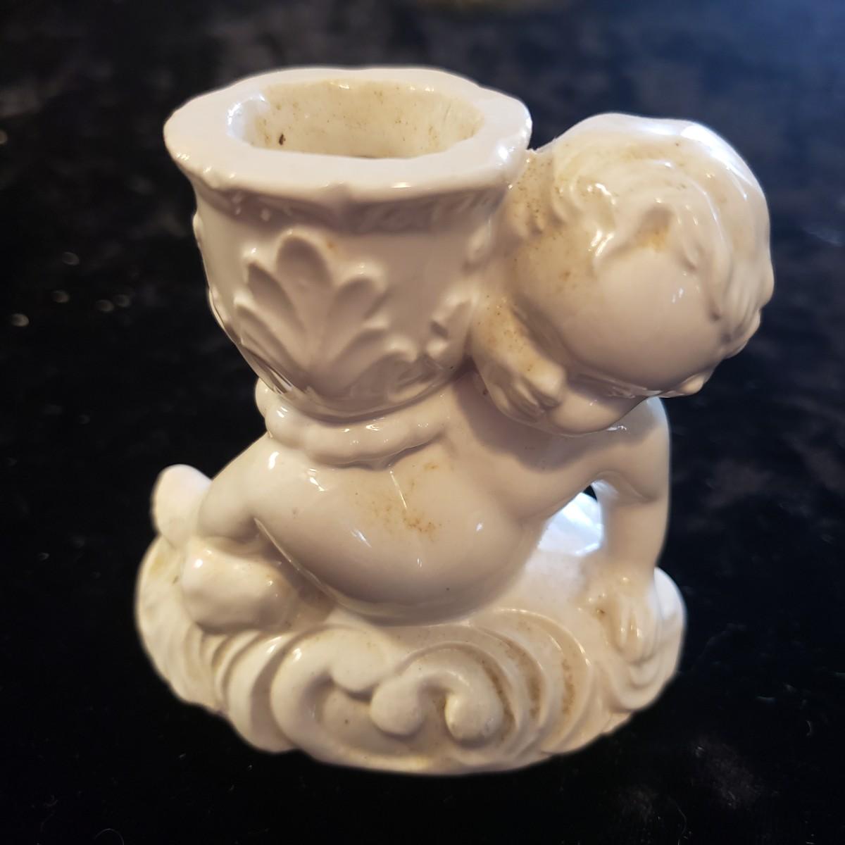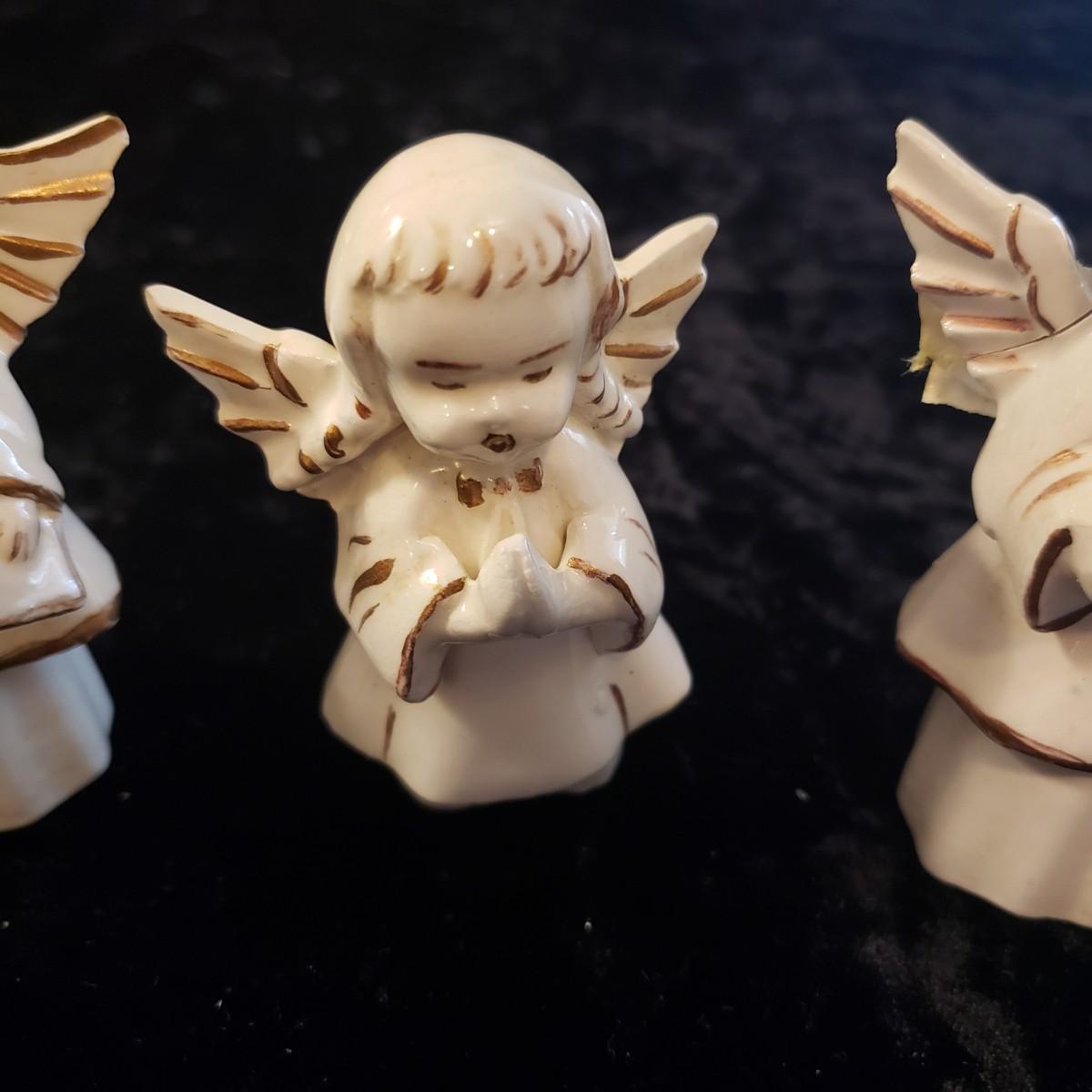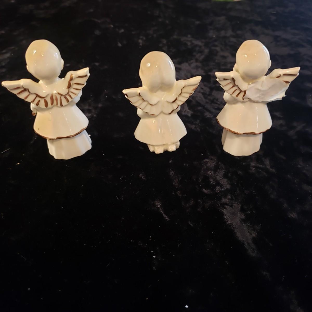 This mostly ceramic art was made by Virginia Llewellyn back in the 1970's. We believe she was a relative of this seller. The Iris pitcher measures 6" x 9"H. The Poinsettia plate is 10", dish holder not included. The ceramics definitely have a 70's charm! The angel has a wing broken and the mugs have a few cracks, yet are all still functional.