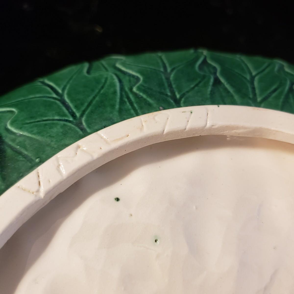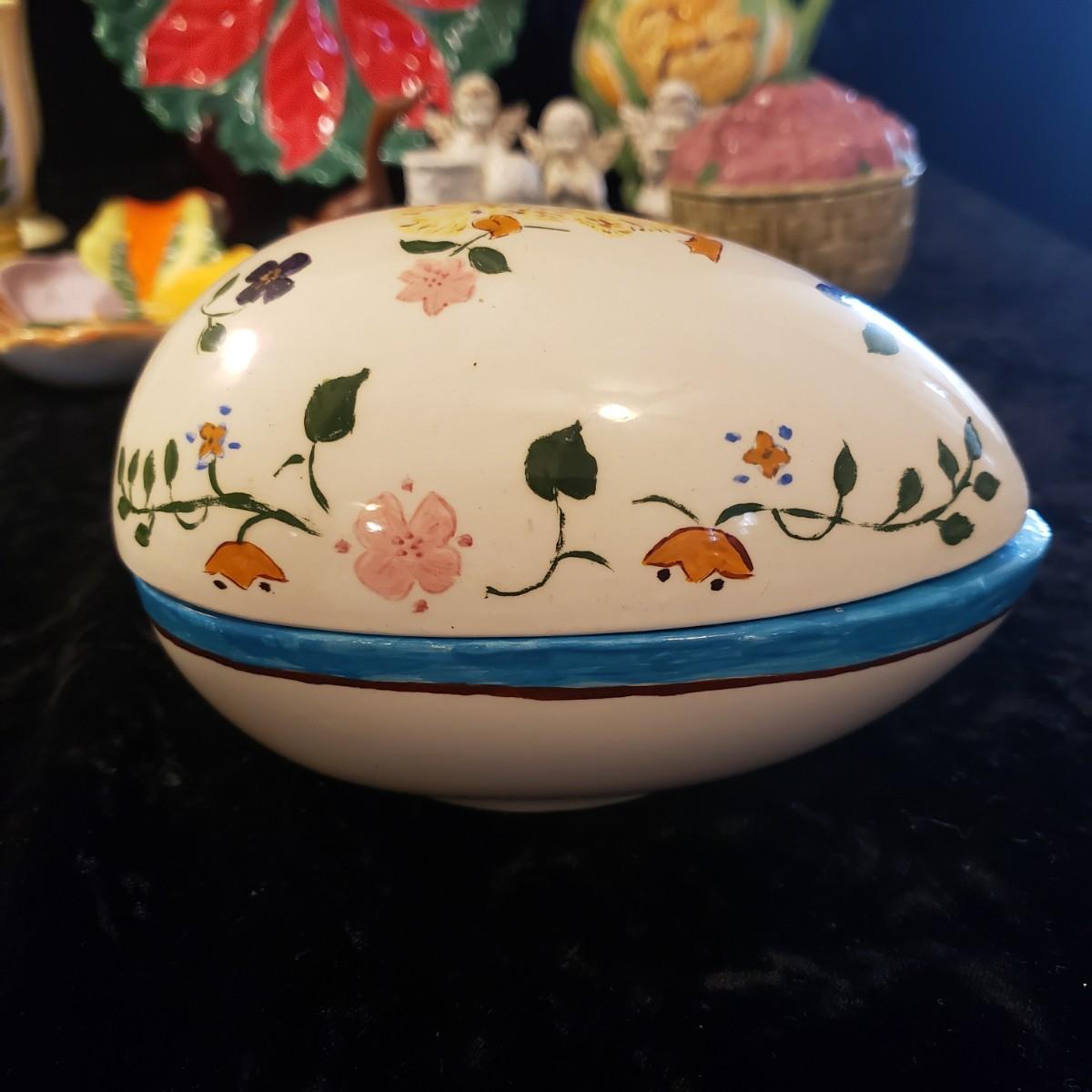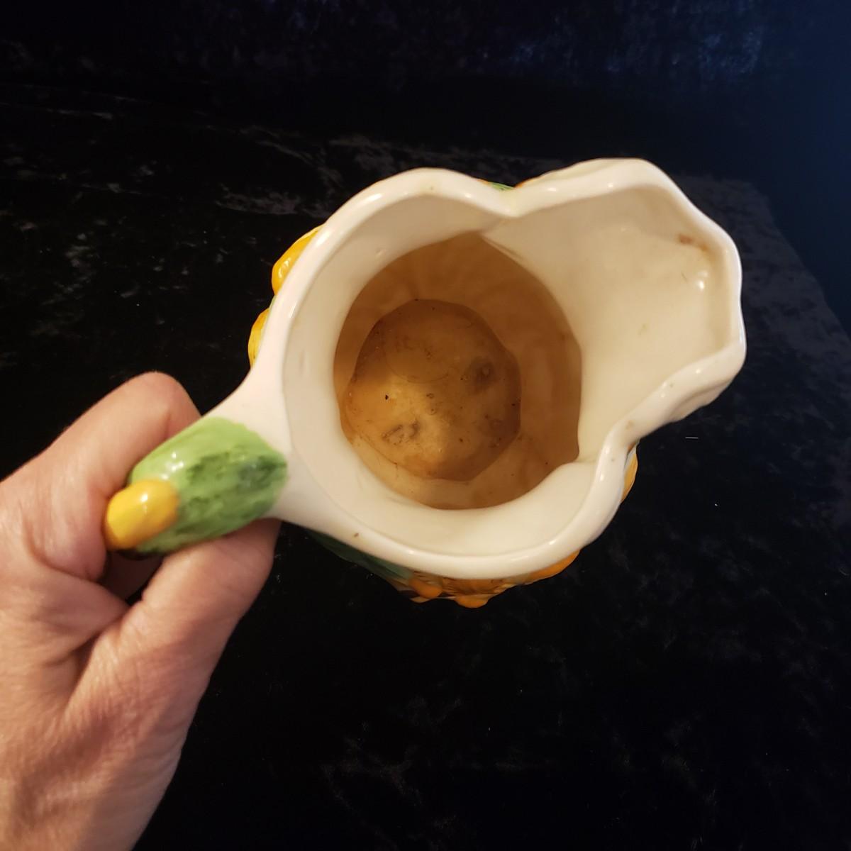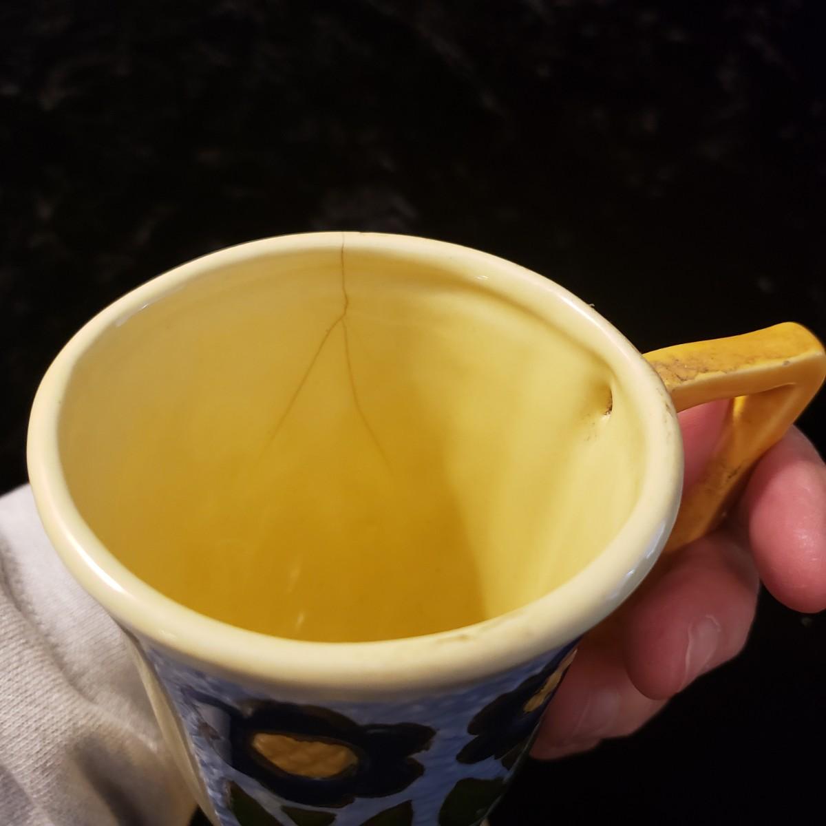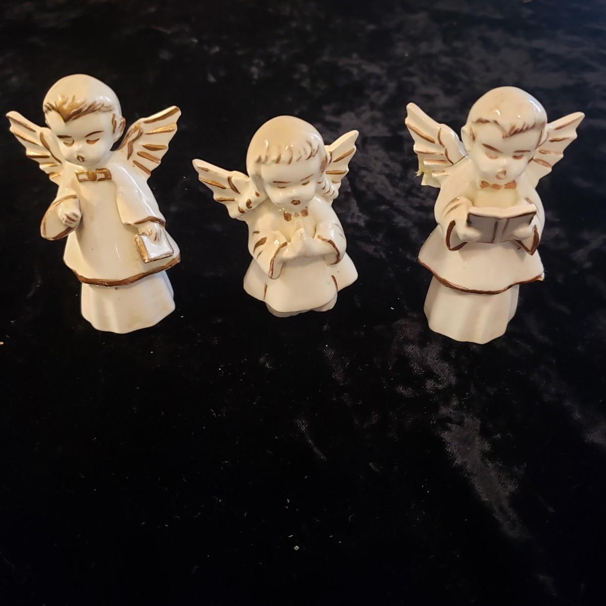 This mostly ceramic art was made by Virginia Llewellyn back in the 1970's. We believe she was a relative of this seller. The Iris pitcher measures 6" x 9"H. The Poinsettia plate is 10", dish holder not included. The ceramics definitely have a 70's charm! The angel has a wing broken and the mugs have a few cracks, yet are all still functional.