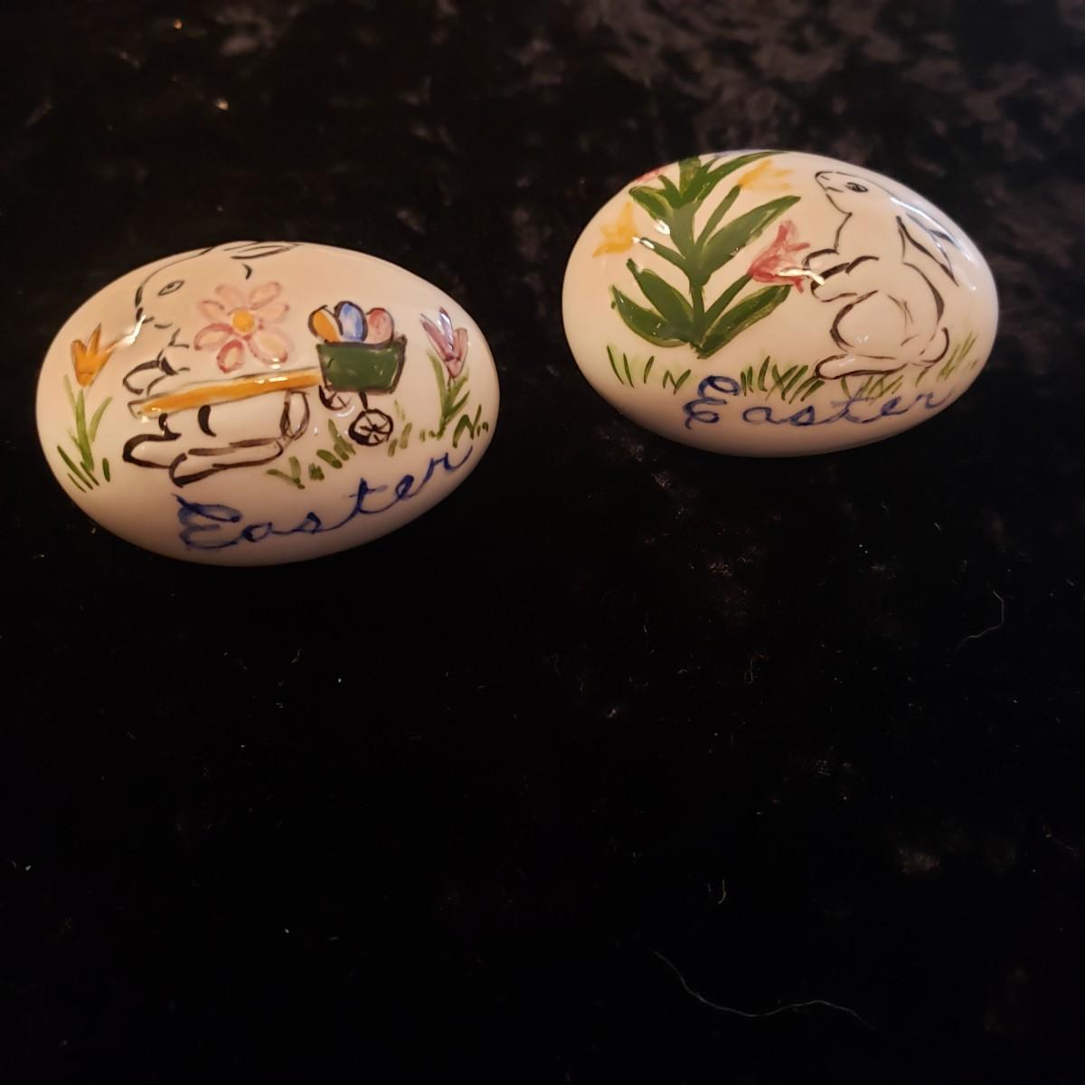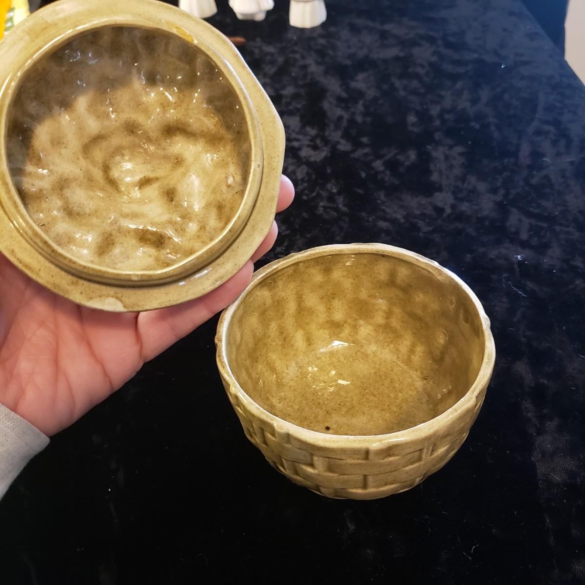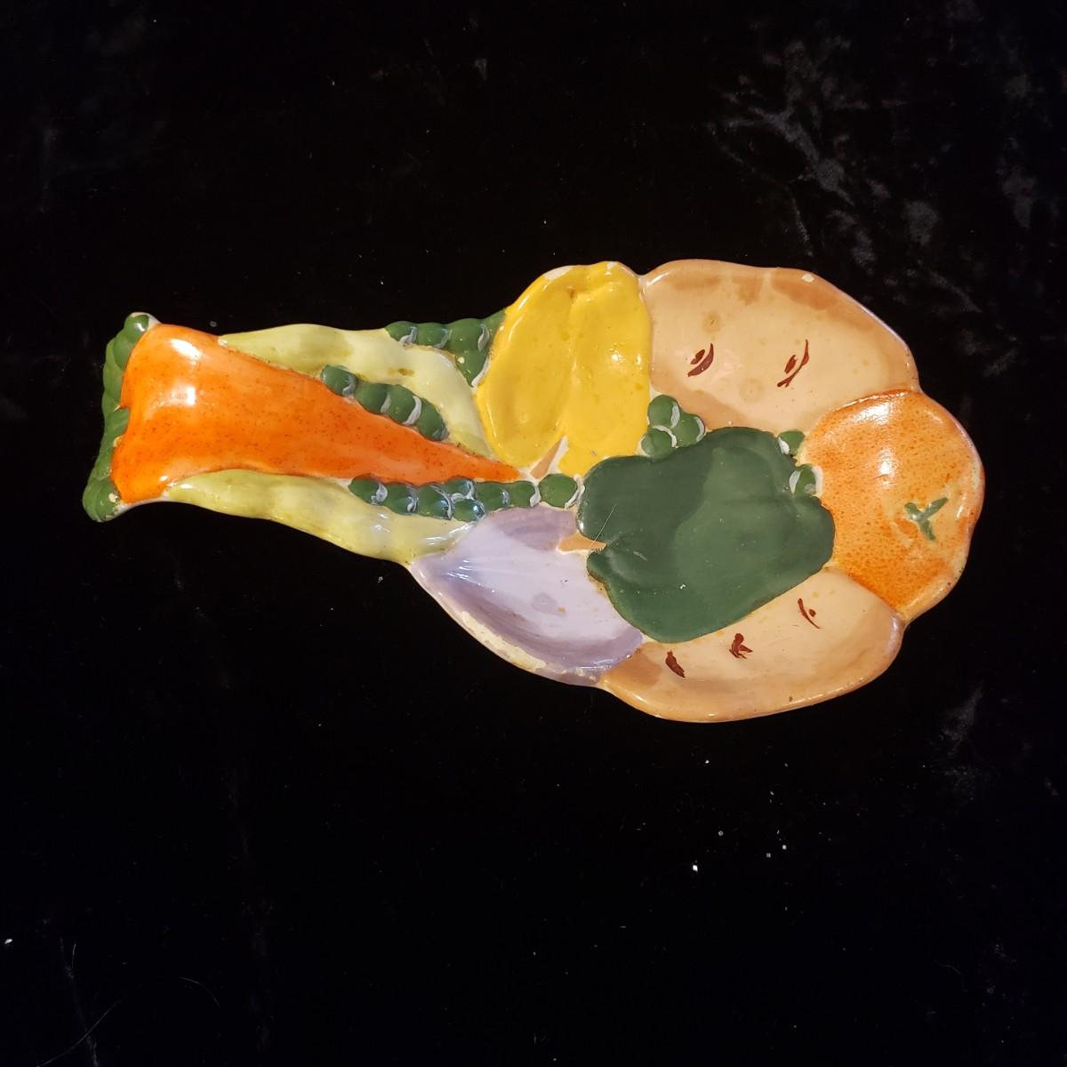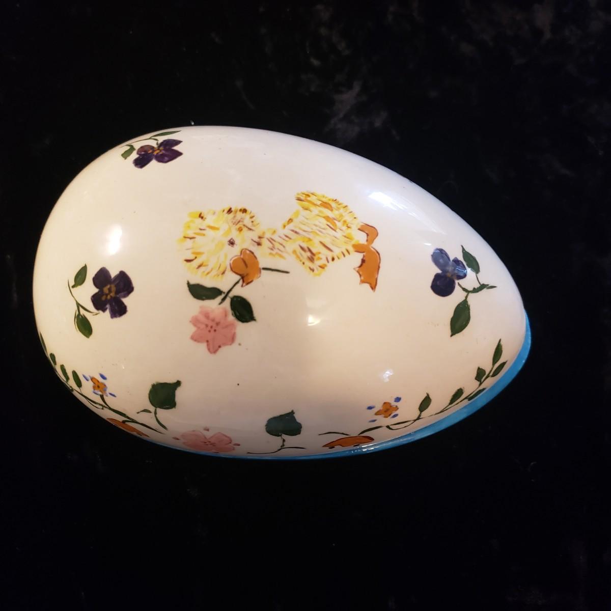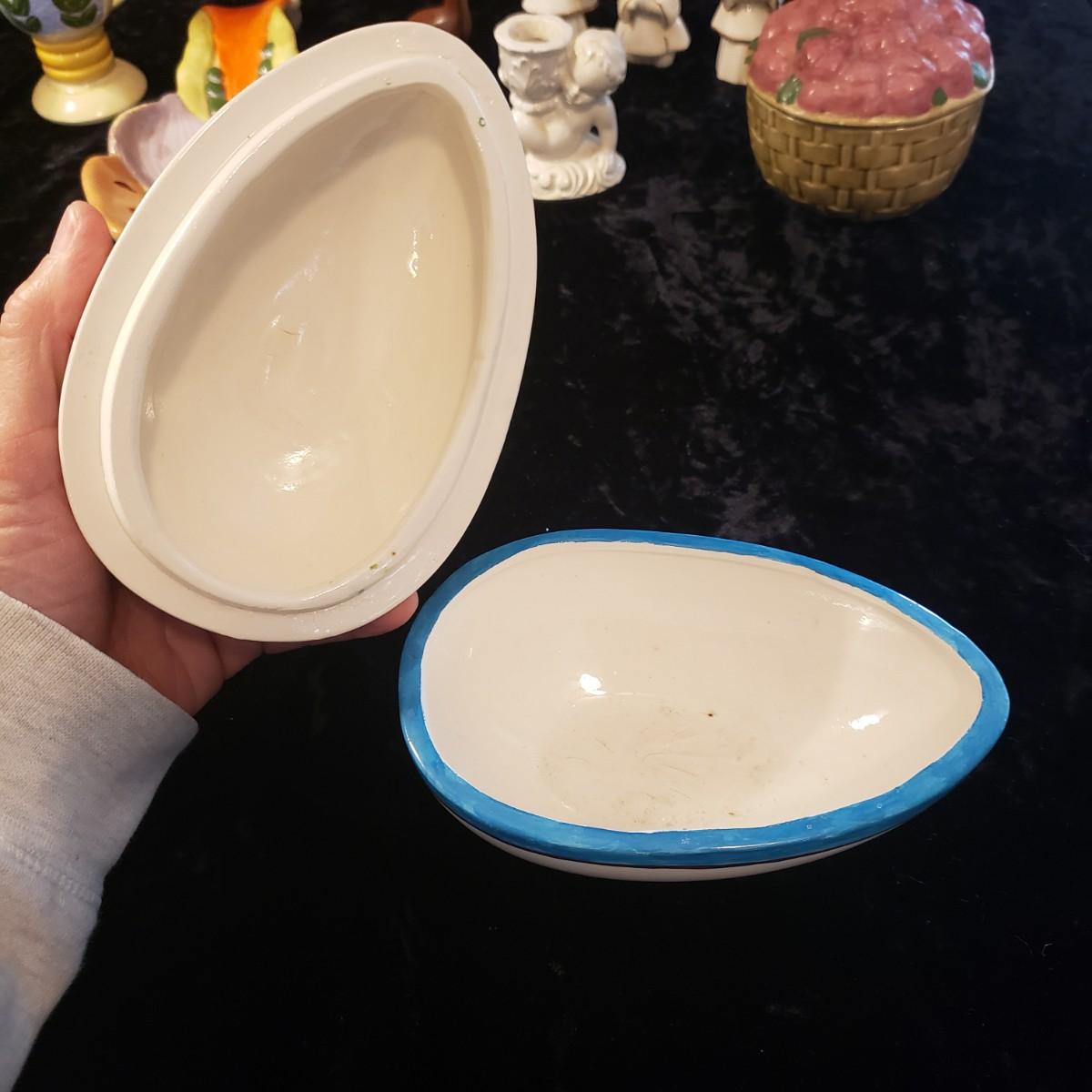 This mostly ceramic art was made by Virginia Llewellyn back in the 1970's. We believe she was a relative of this seller. The Iris pitcher measures 6" x 9"H. The Poinsettia plate is 10", dish holder not included. The ceramics definitely have a 70's charm! The angel has a wing broken and the mugs have a few cracks, yet are all still functional.