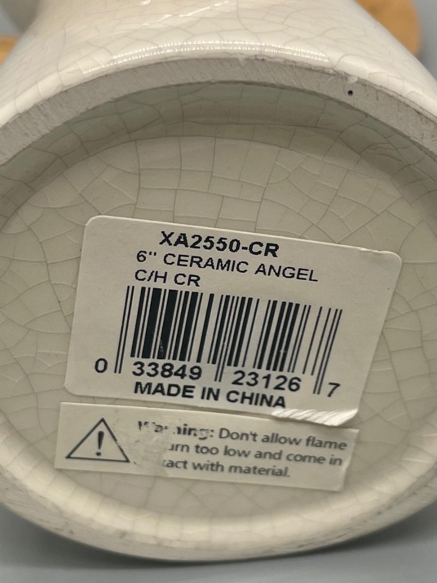 Both candle holders are in great condition. They are both approximately 6” tall. When lighting a candle on this candle holder, don’t allow the flame to burn too low and come in contact with the material. Both angels were made in China. Completed crazed finish, not sure if that was purposely or not to give them an old look.