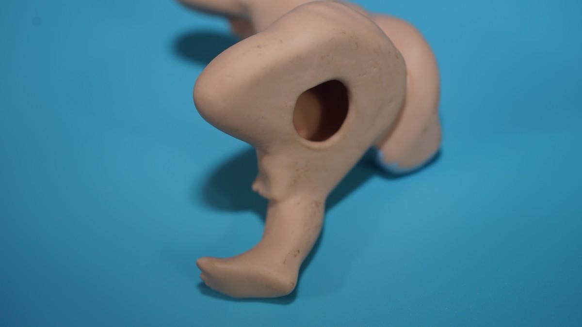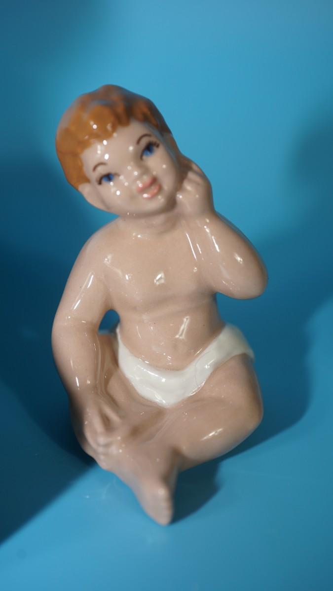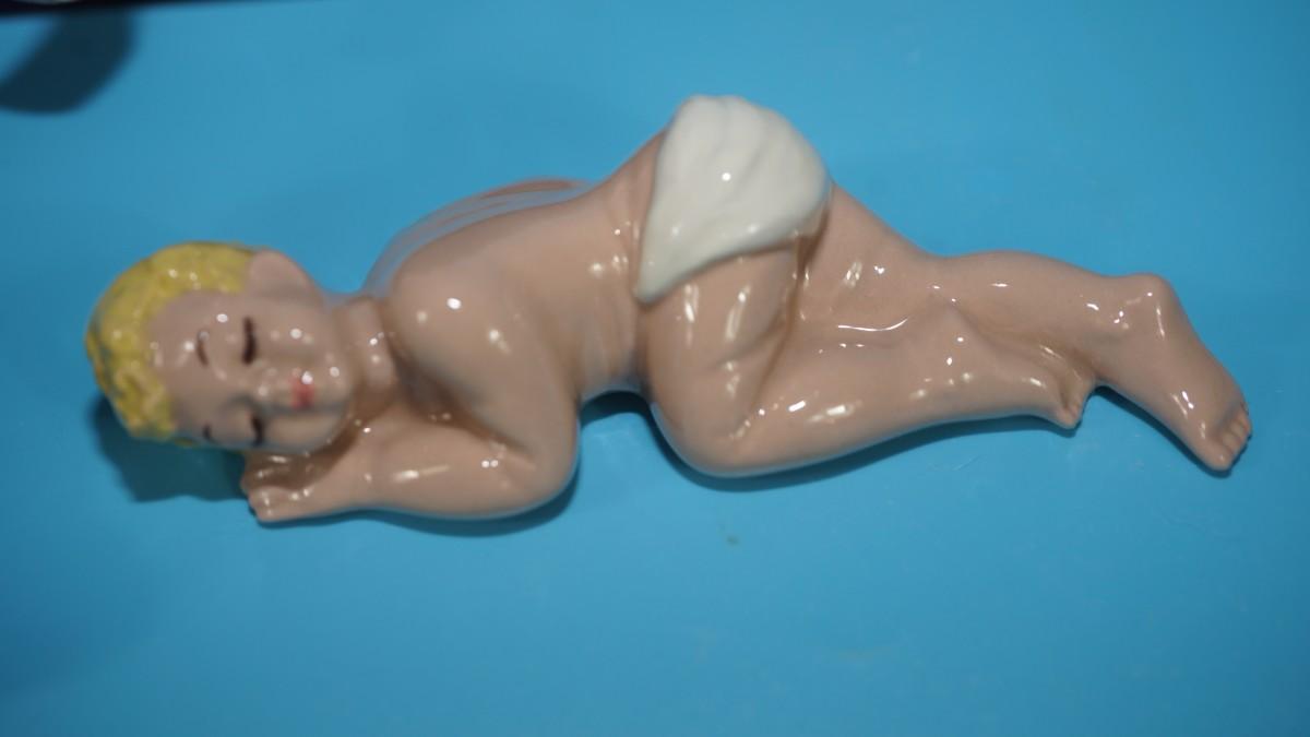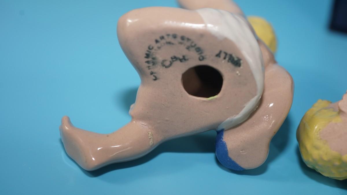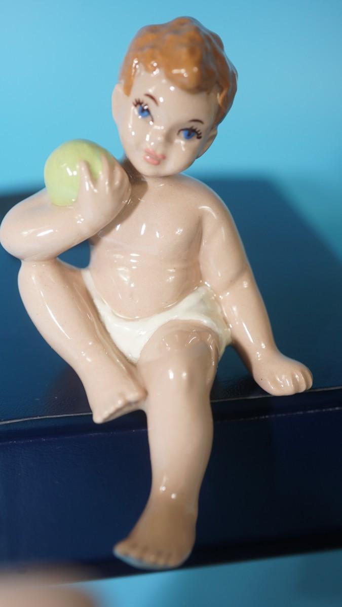 glazed and two holding a ball, one reclining in a nap there is one that did not get painted or glazed