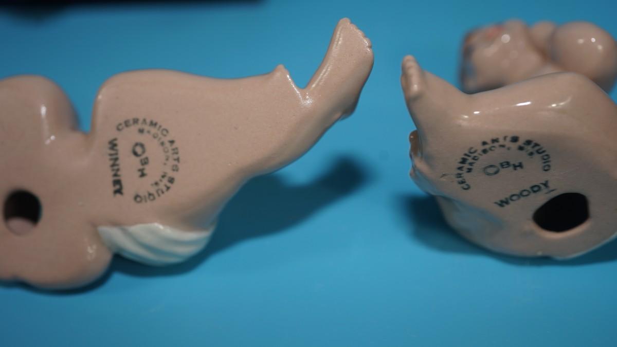 CERAMIC ARTS STUDIO 1942-1956 BABIES "WILLY," "WALLY", "WINNEY", & "WOODY" /ALSO ONE UNPAINTED.