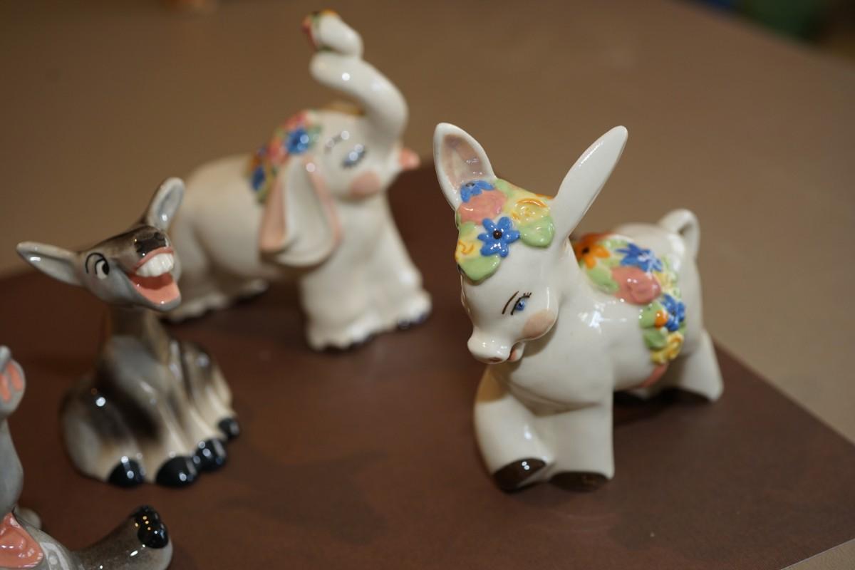 CERAMIC ARTS STUDIO CHARACERS. DONKEYS AND ELEPHANTS.