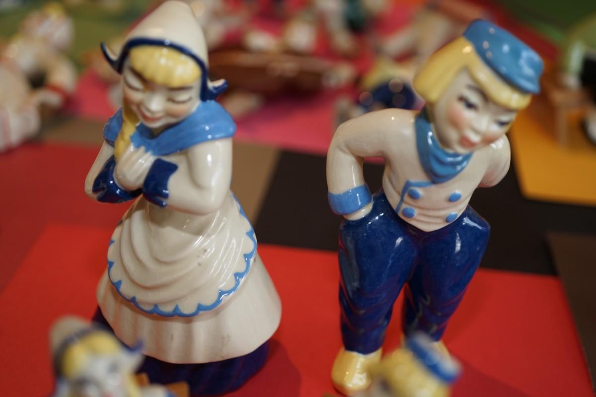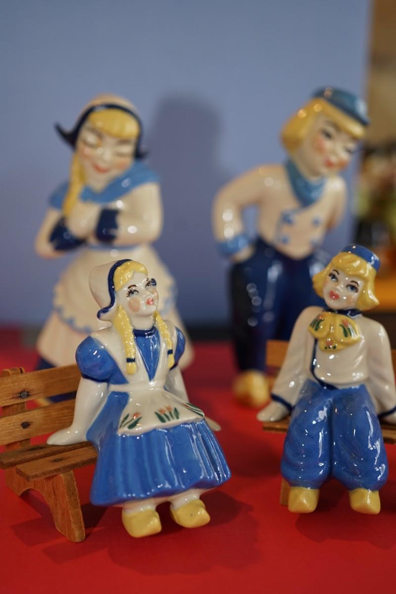 CERAMIC ARTS STUDIO. DUTCH STYLE FIGURINES ONE SET WITH BENCH /ONE PAIR STANDING