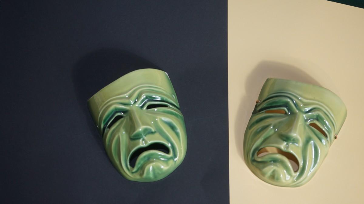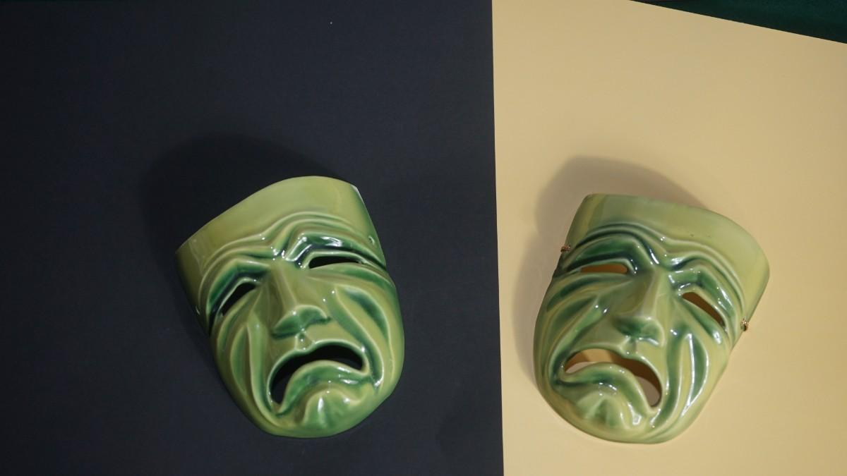 CERAMIC ARTS STUDIO - MADISON, WI 1942-1956 TRAGEDY MASKS PAIR