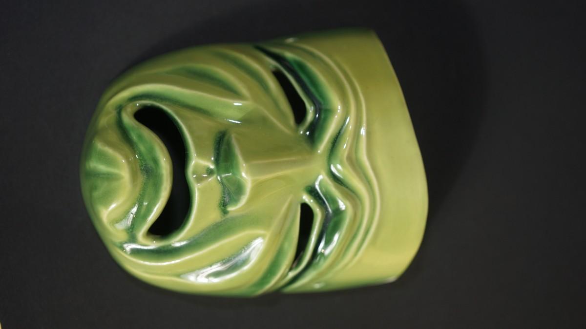 Ceramic arts studio unmarked. pair of 5 1/4" wall plaque masks