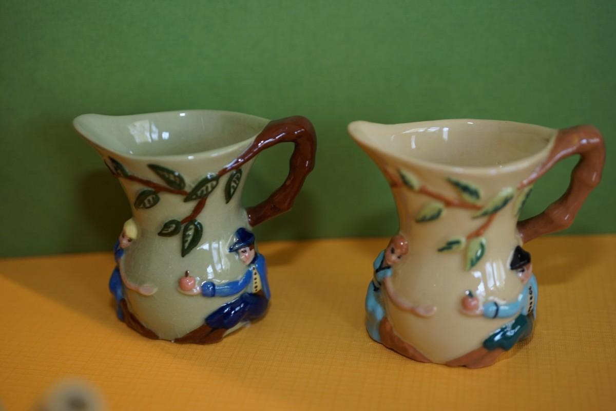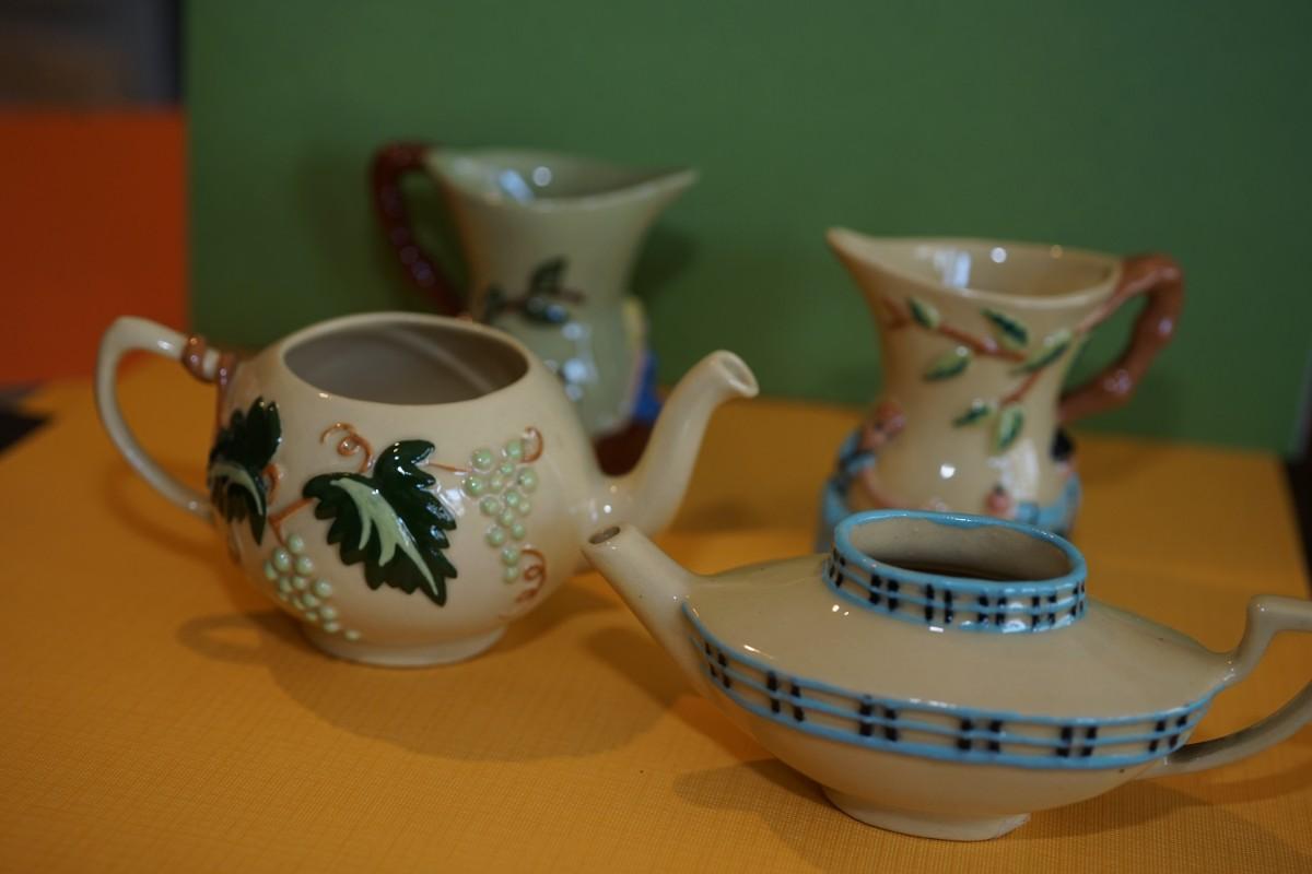 CERAMIC ARTS STUDIO MINIATURE HANDLES PITCHERS, TEA POT GROUPING OF 4