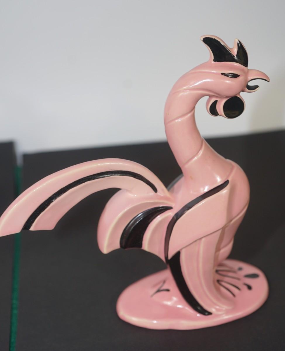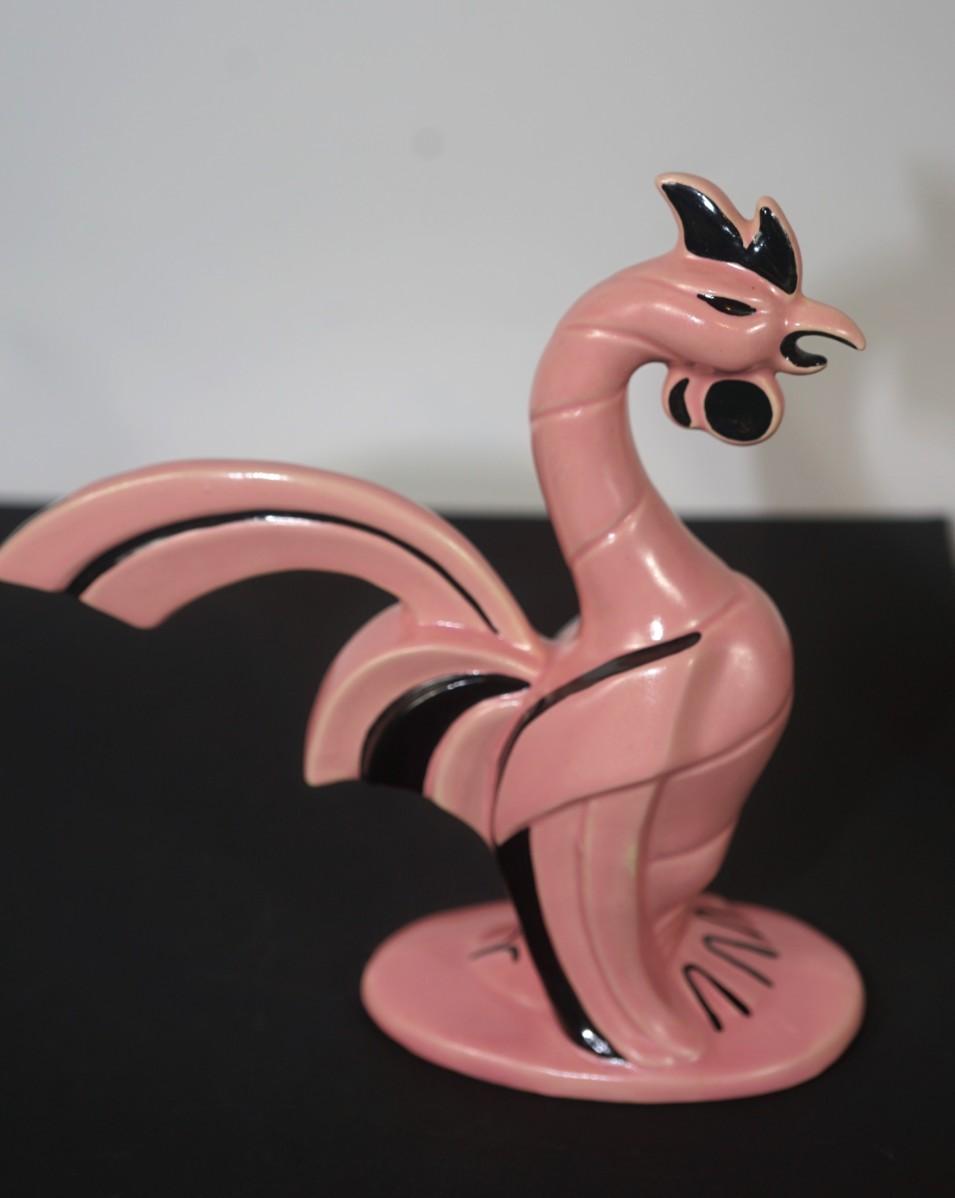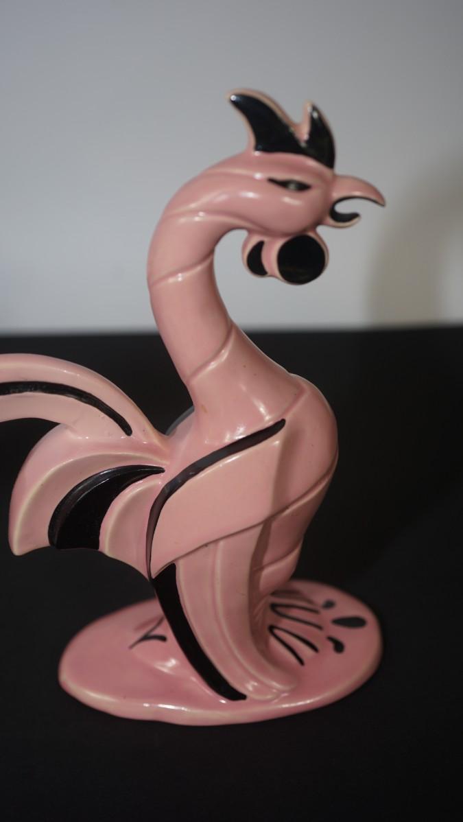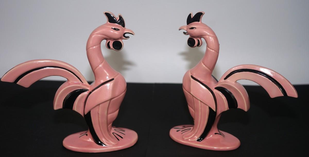 CERAMIC ARTS STUDIO - PAIR OF PINK / BLACK ROOSTERS. #481