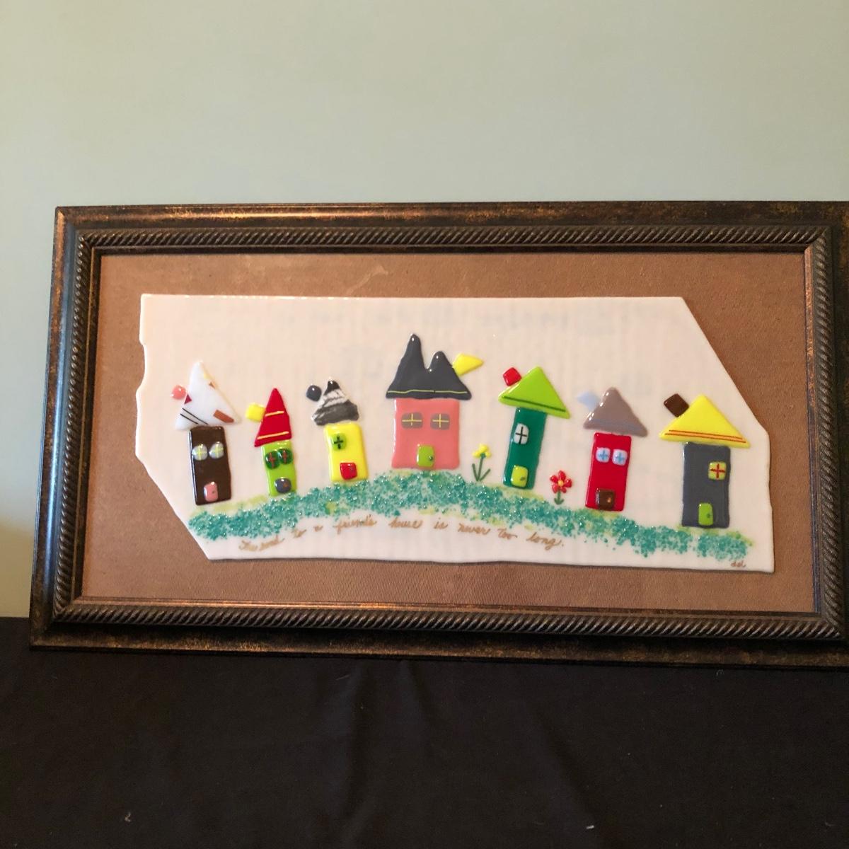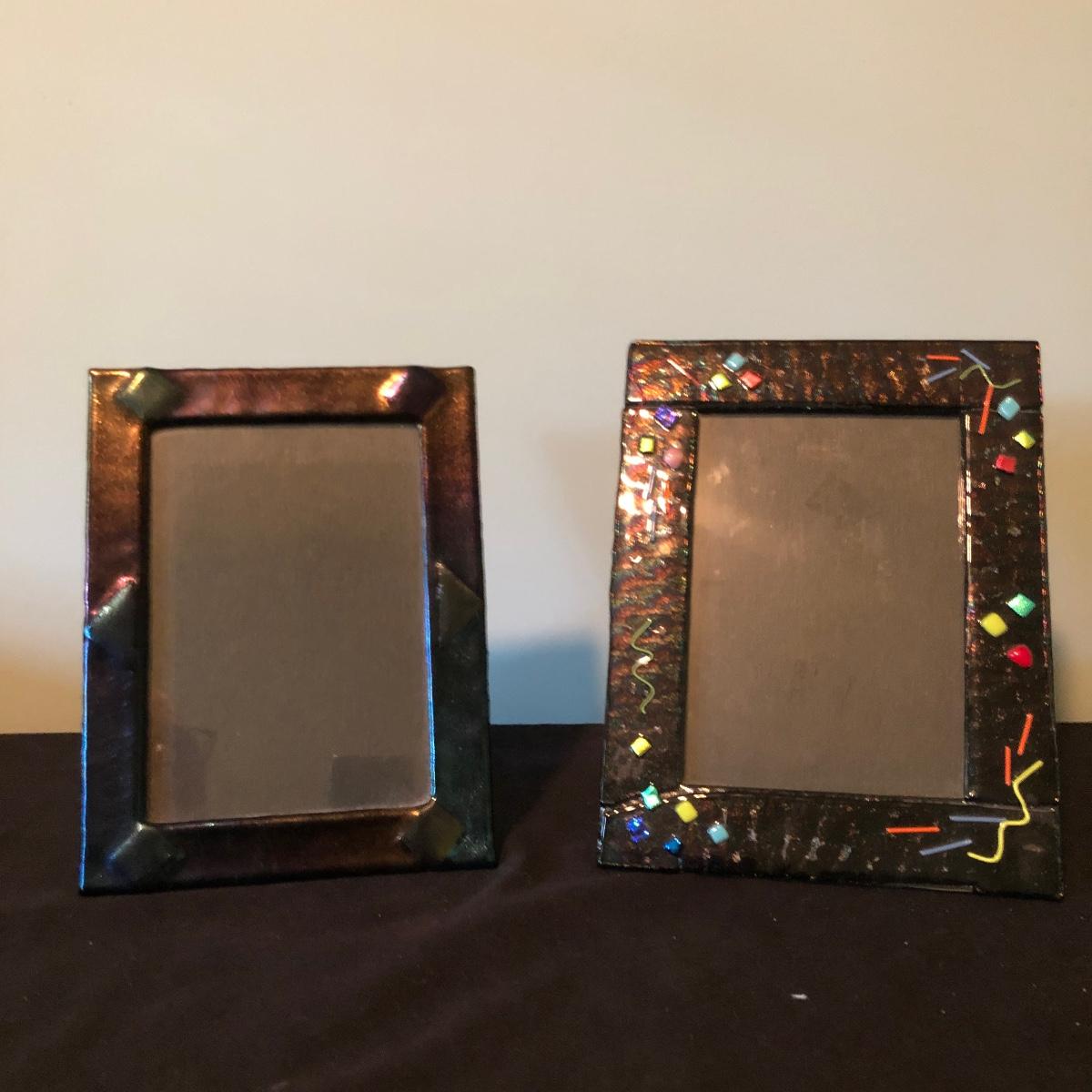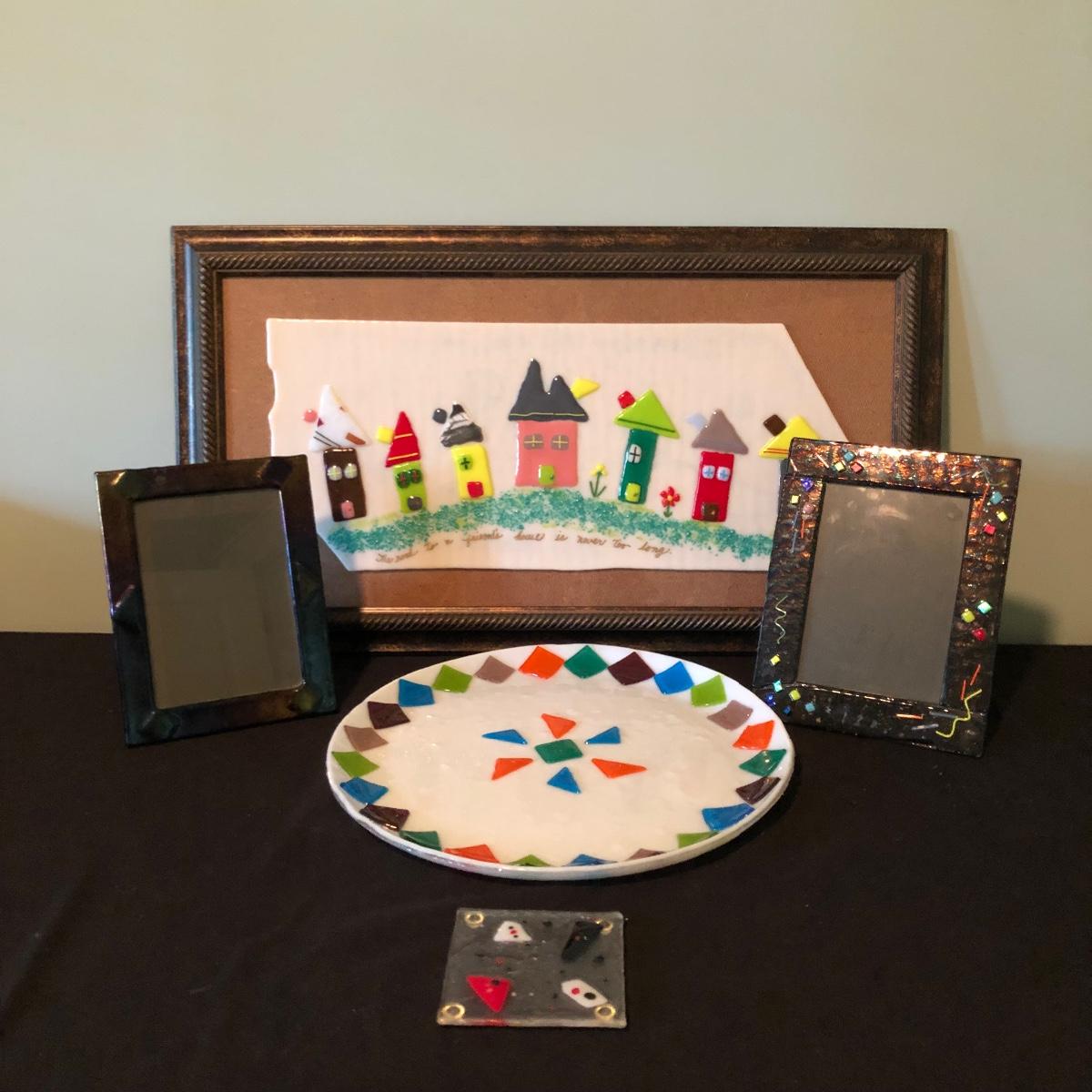 Lot includes framed glass artwork signed by the artist, two ceramic picture frames, a large plate and a small glass square art piece. Largest frame measures 15” x 27”. Largest piece is glass art and it is not under glass in the frame but rather on top of it. Shipping Available. Shipping Art can be costly please call UPS store at 828-252-6930 for quote.