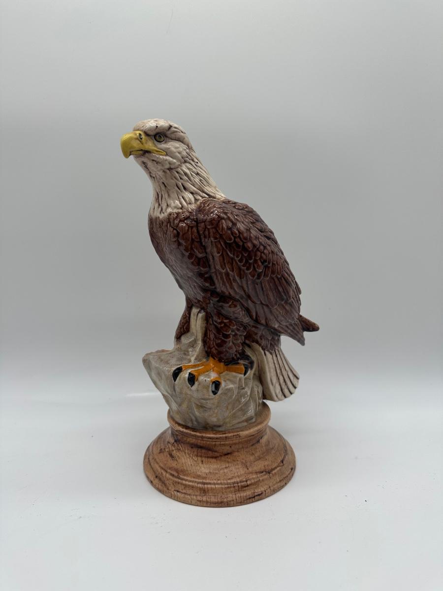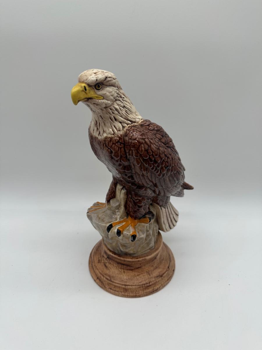 Ceramic Bald Eagle Figurine on Pedestal Base