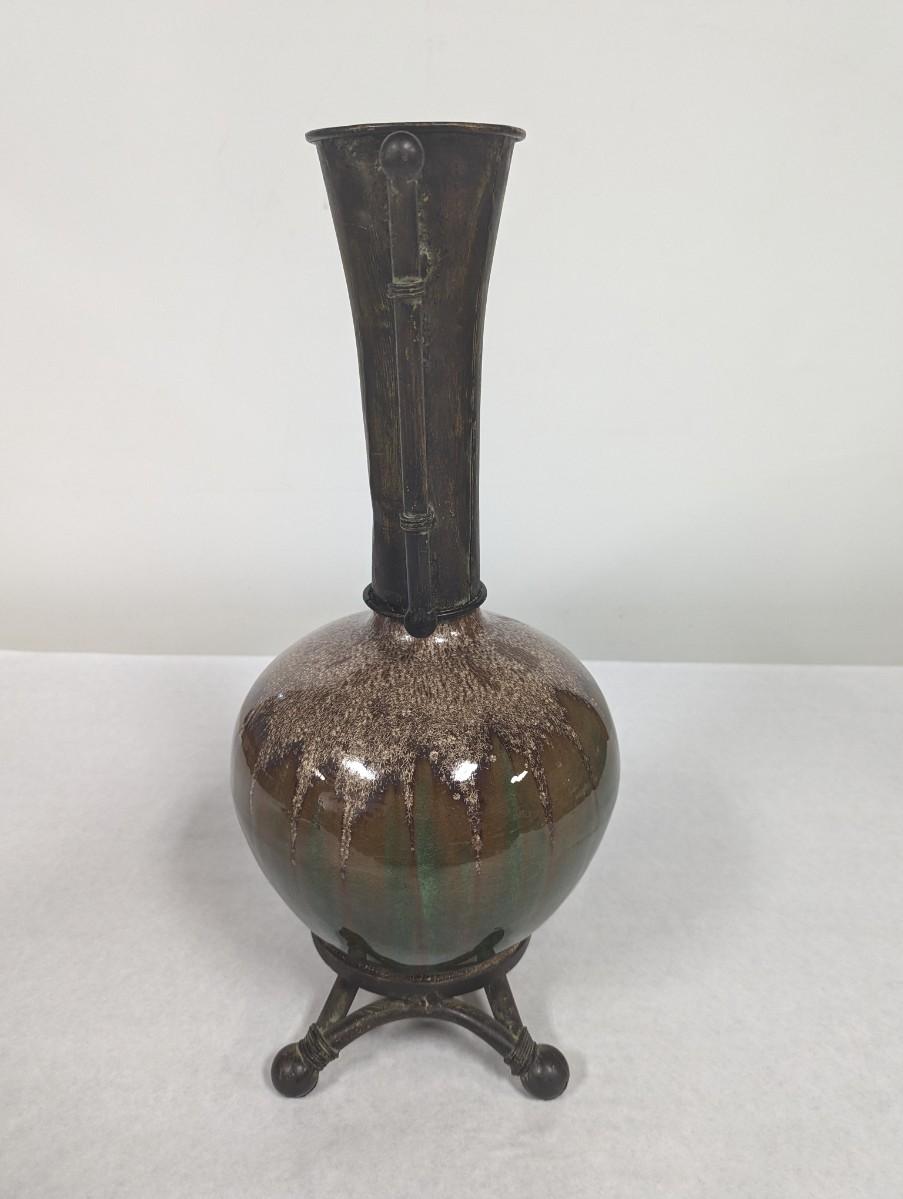 Ceramic Base With Metal Neck Vase