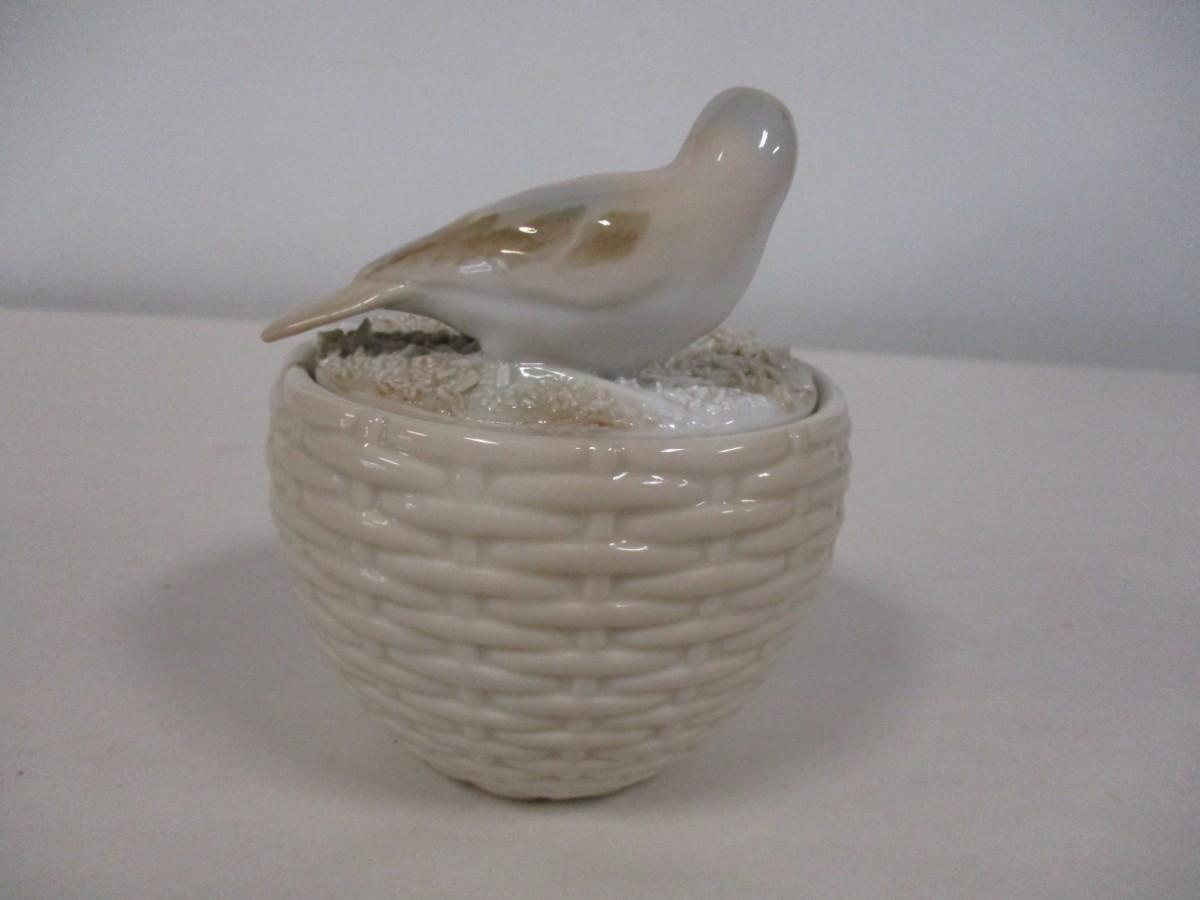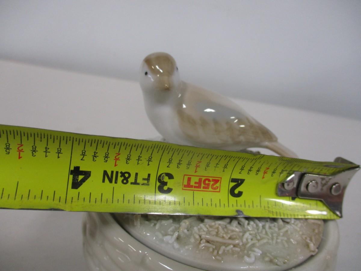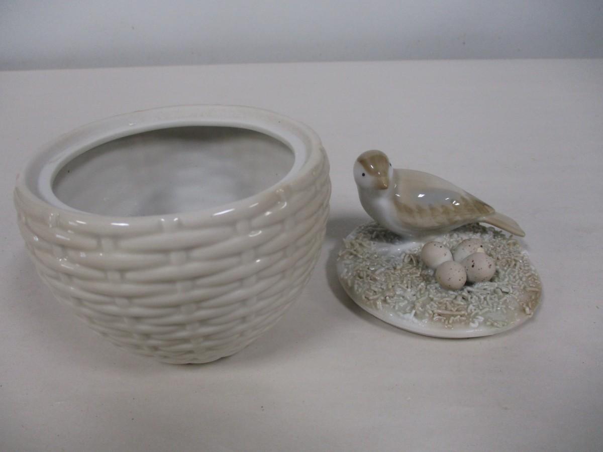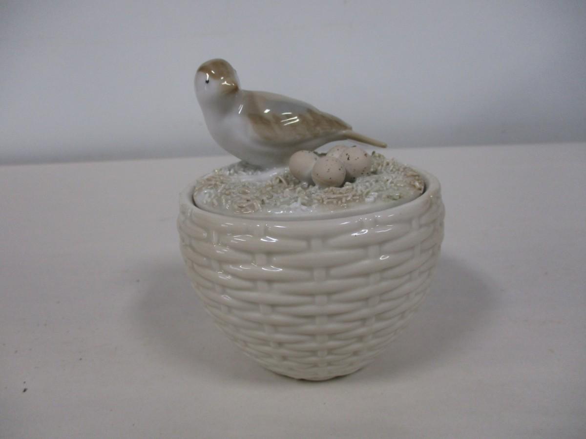 Glazed Ceramic Covered Bowl- Nesting Bird with Eggs- Approx 3 3/4" in Diameter