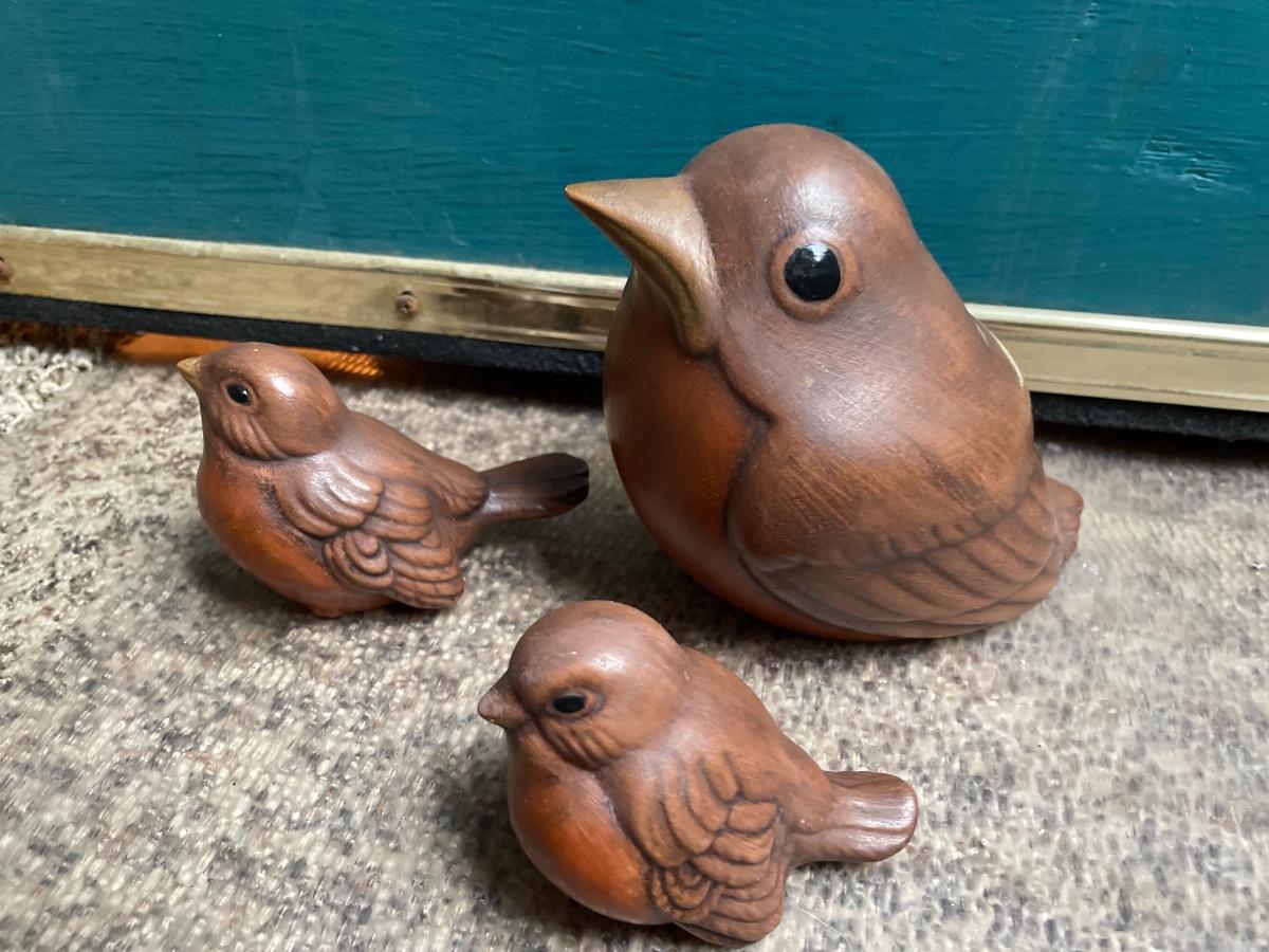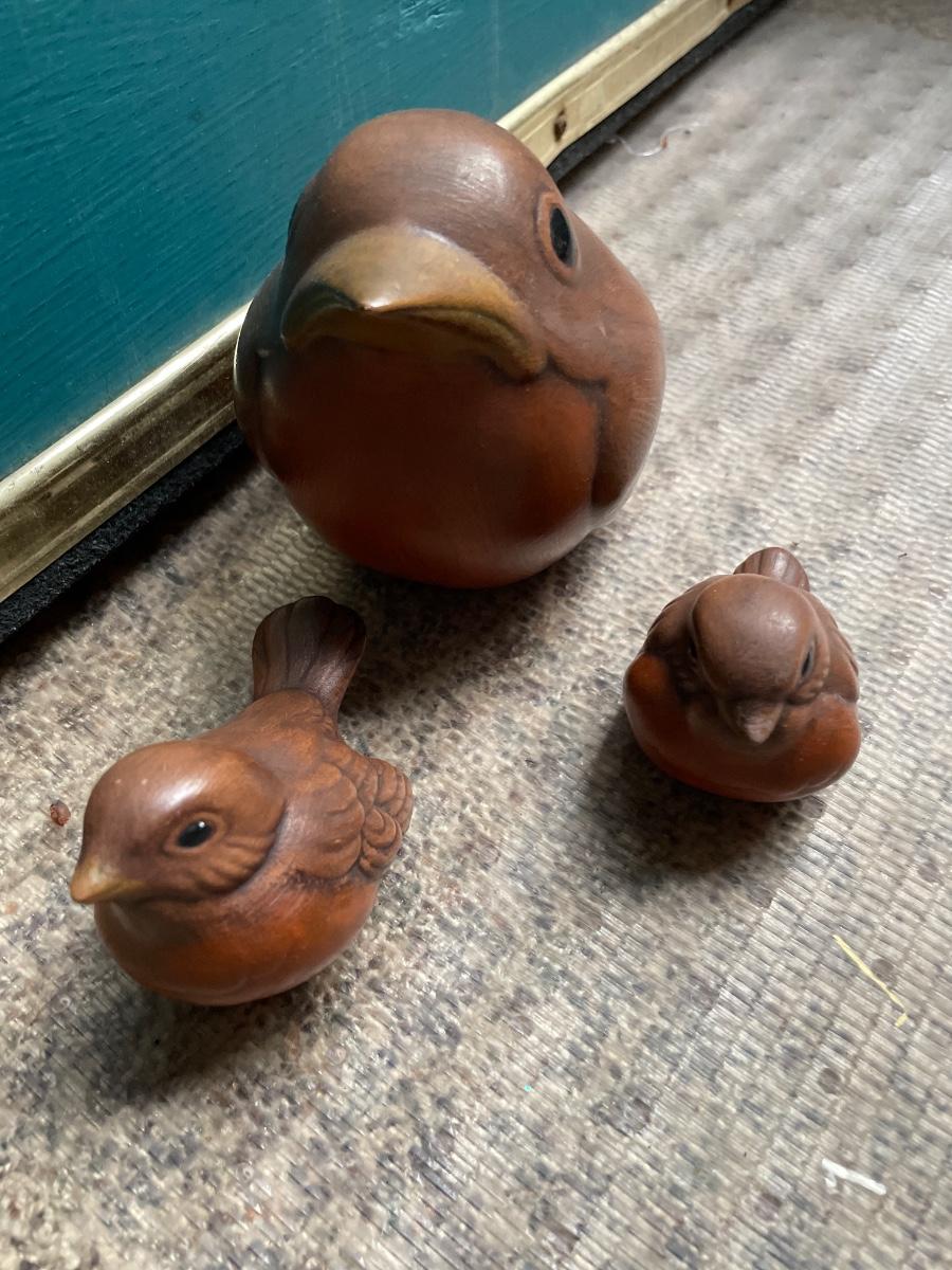 3 small ceramic family of birds