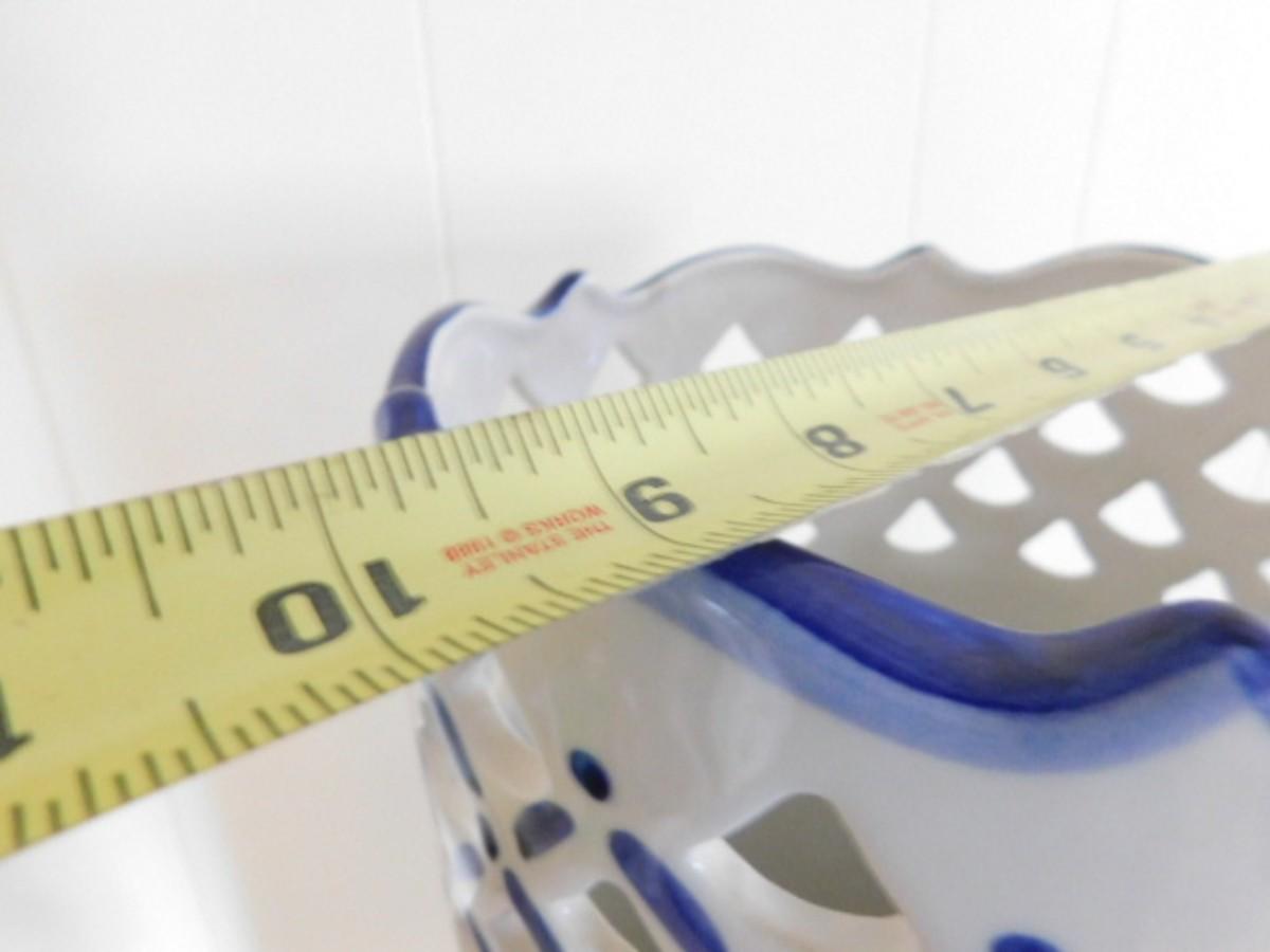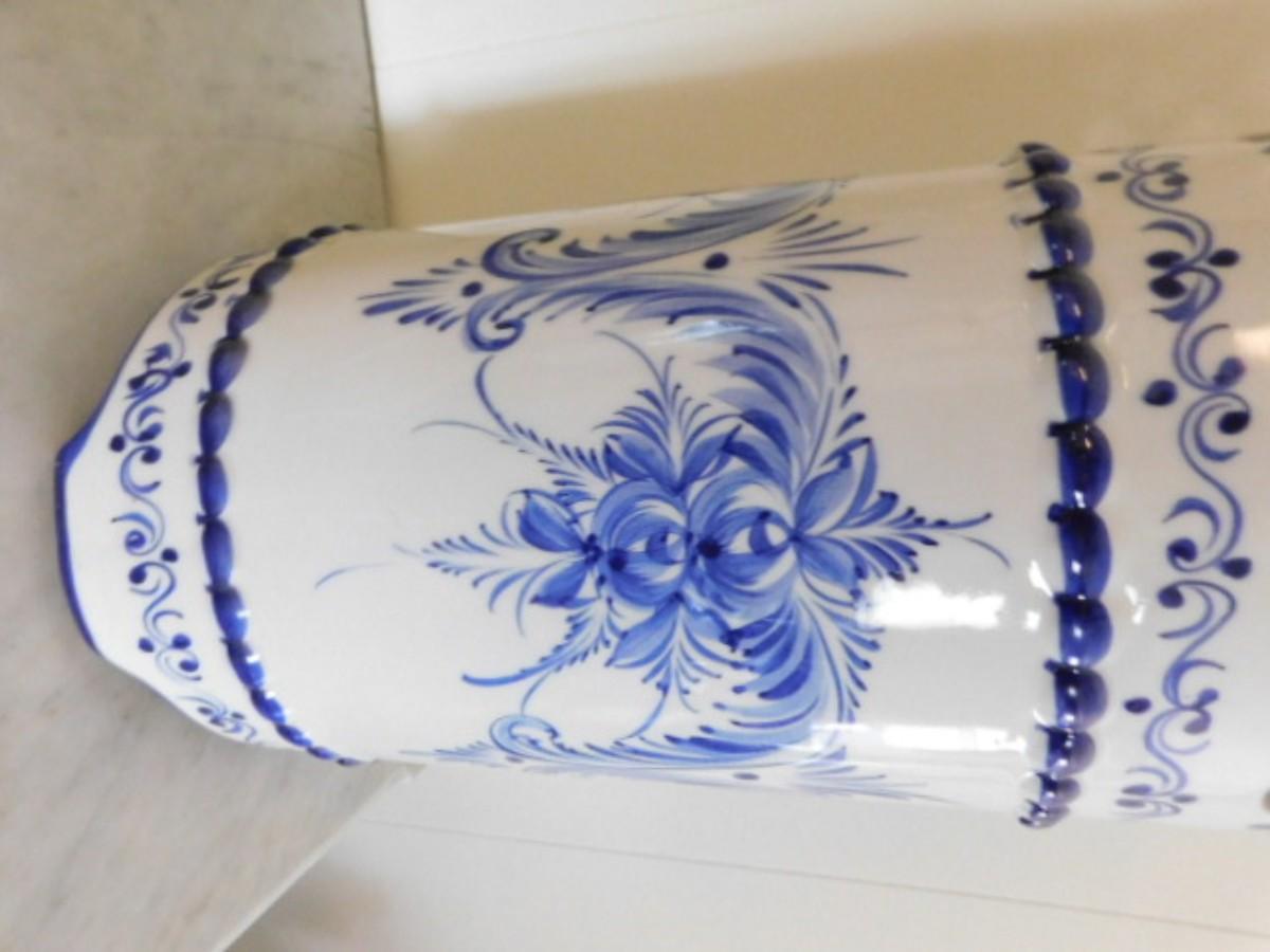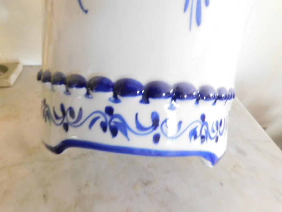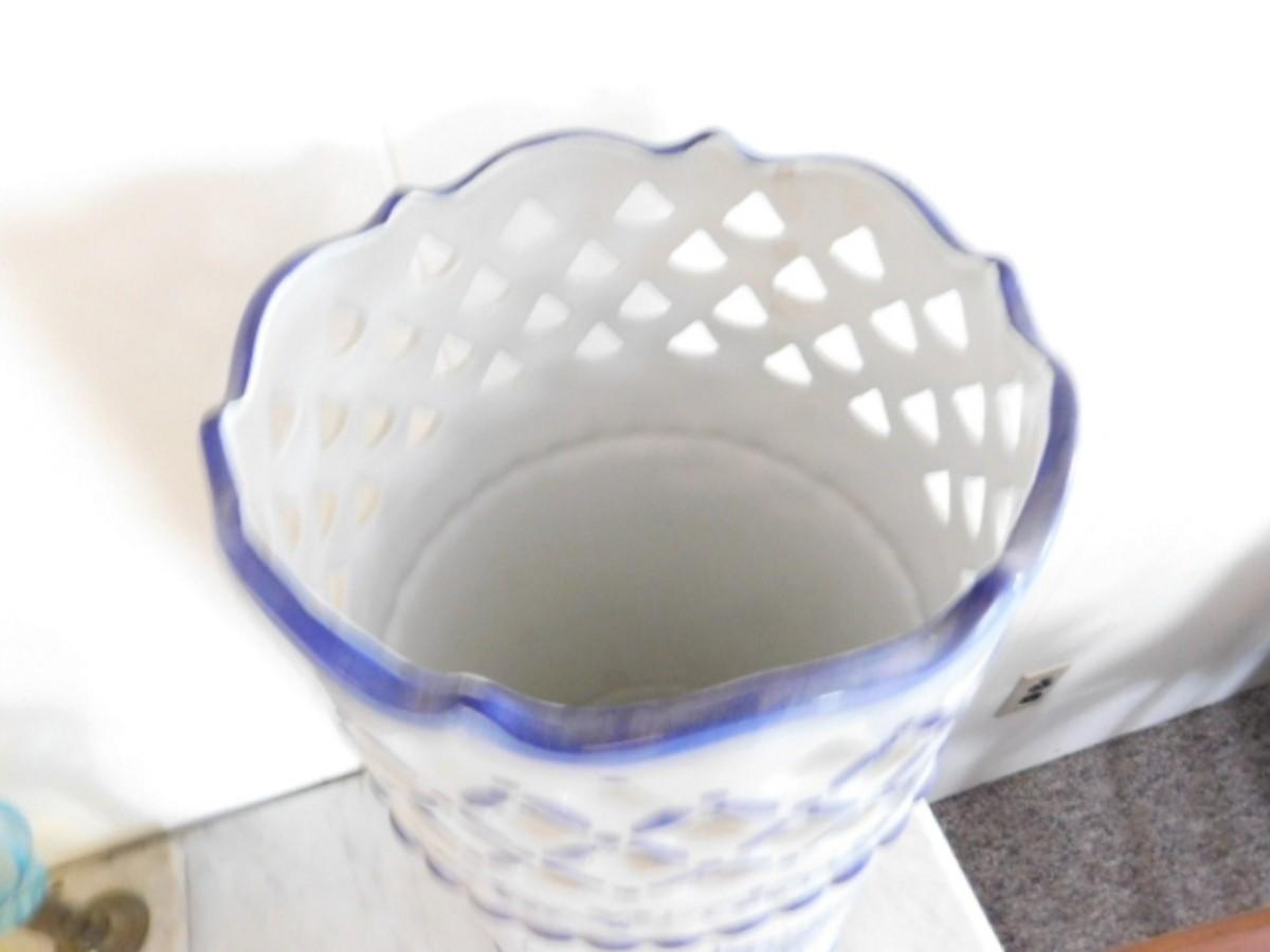 Ceramic Blue and White Umbrella Stand with Pierced Edge