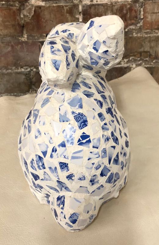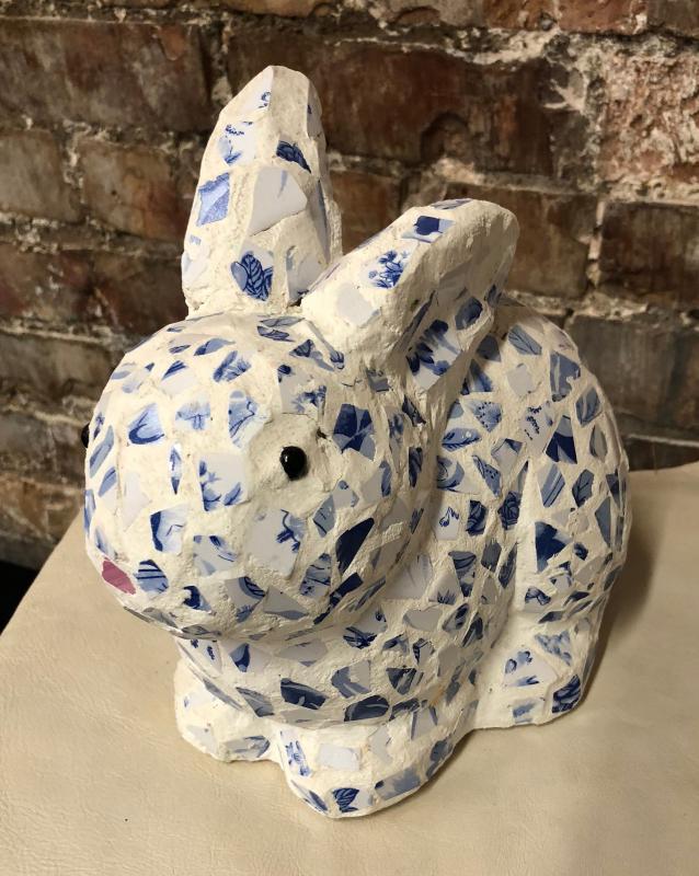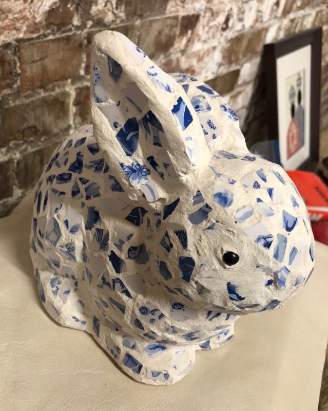 CERAMIC BLUE TILE BUNNY FIGURE