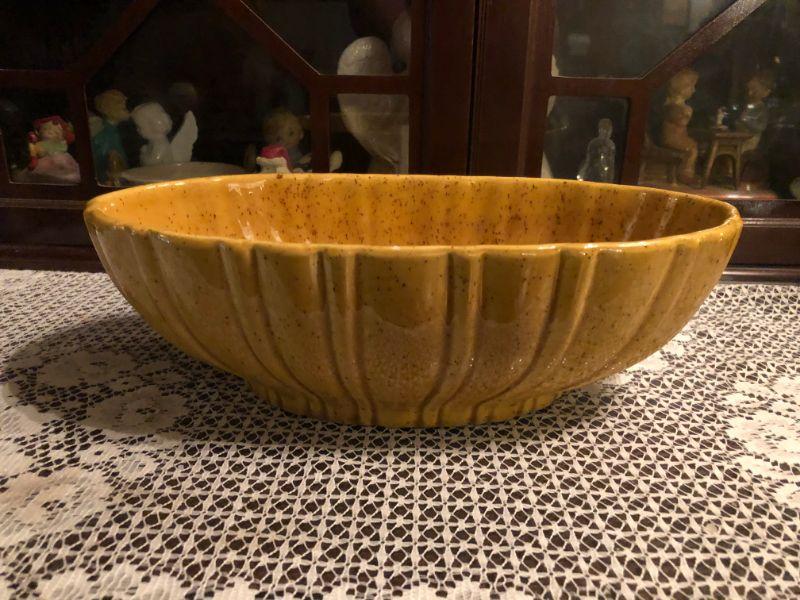 MUSTARD COLOR CERAMIC BOWL OR SERVING DISH FOR YOU TO ENJOY! Haeger 4020.c usa stamped on bottom 1950's