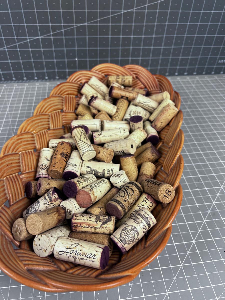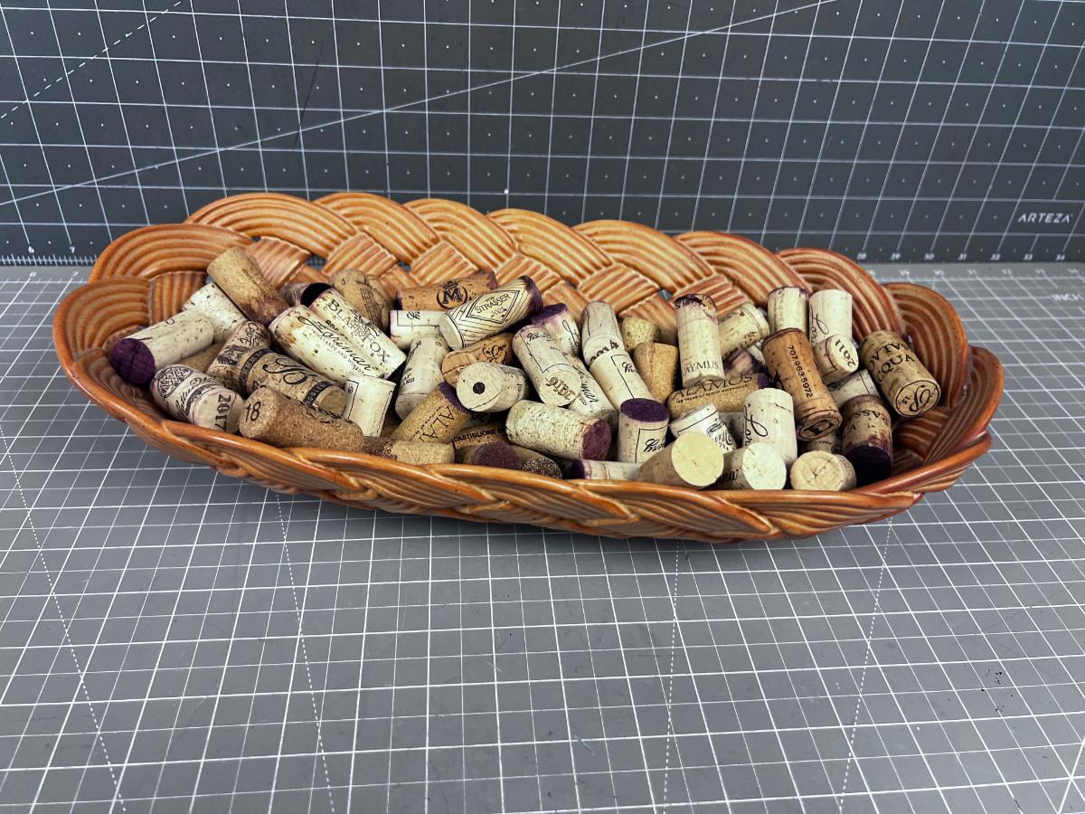 Ceramic Bread Basket FULL OF WINE Corks