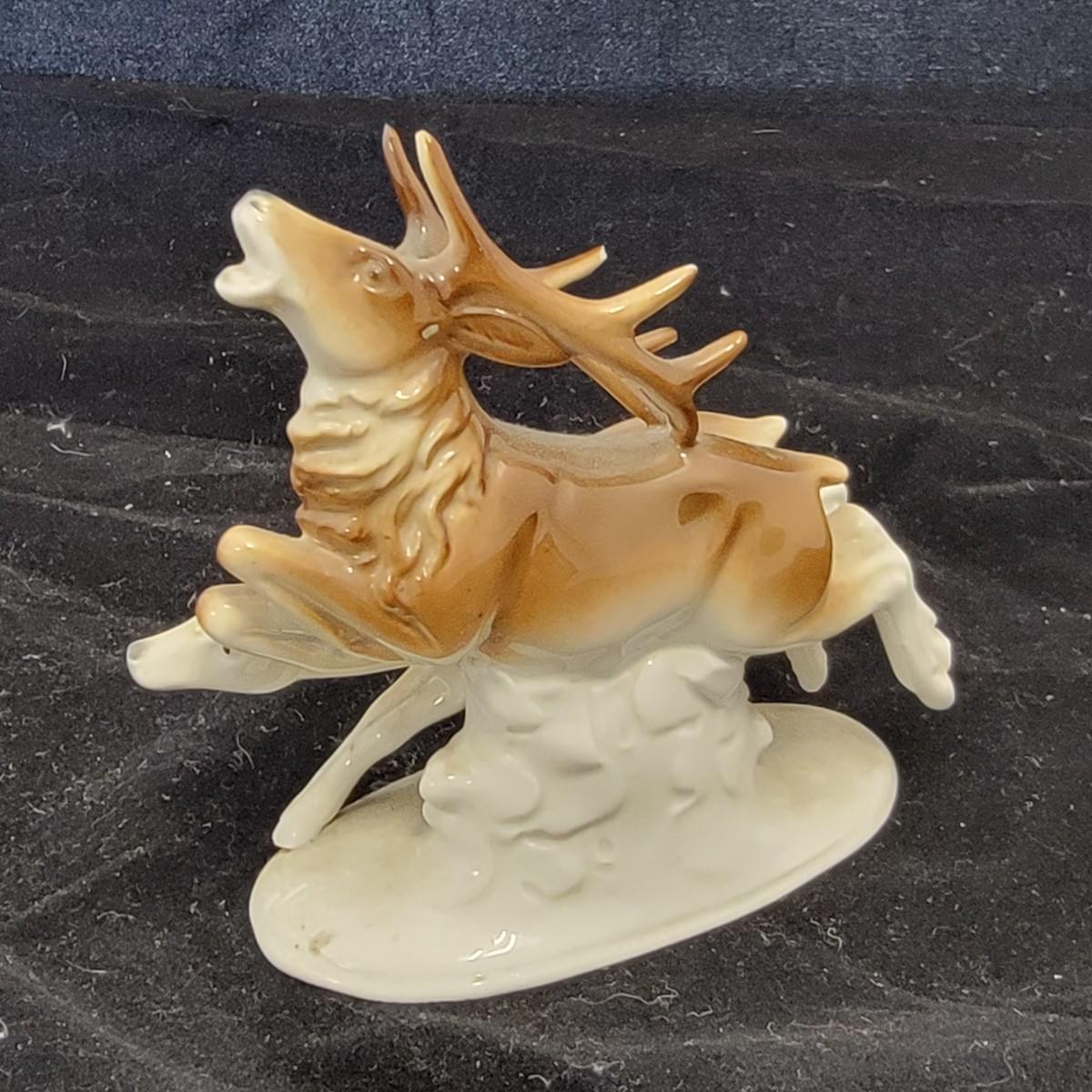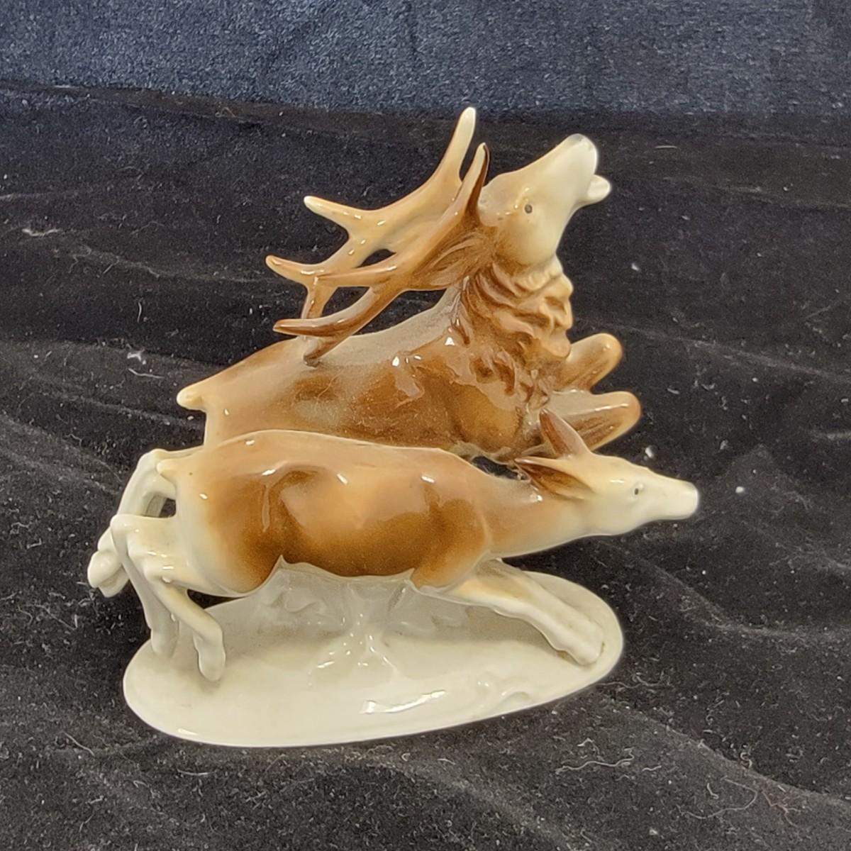 Ceramic Buck and Deer Statue in great condition.
