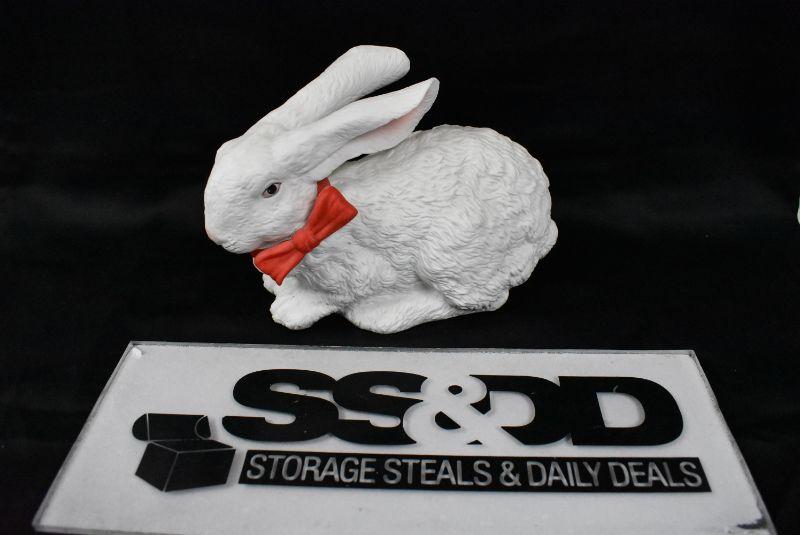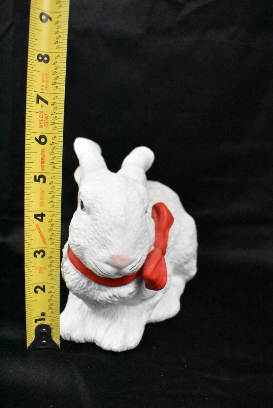 Ceramic Bunny Rabbit Decor, white with red bow