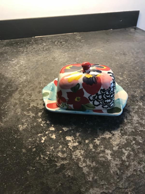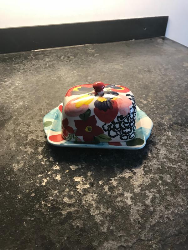 Ceramic Butter Dish Tray Holder Had painted