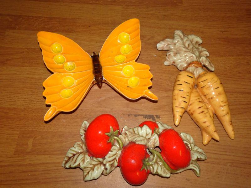Ceramic Butterfly Trivet and Carrots & Tomatoes Wall Plaques