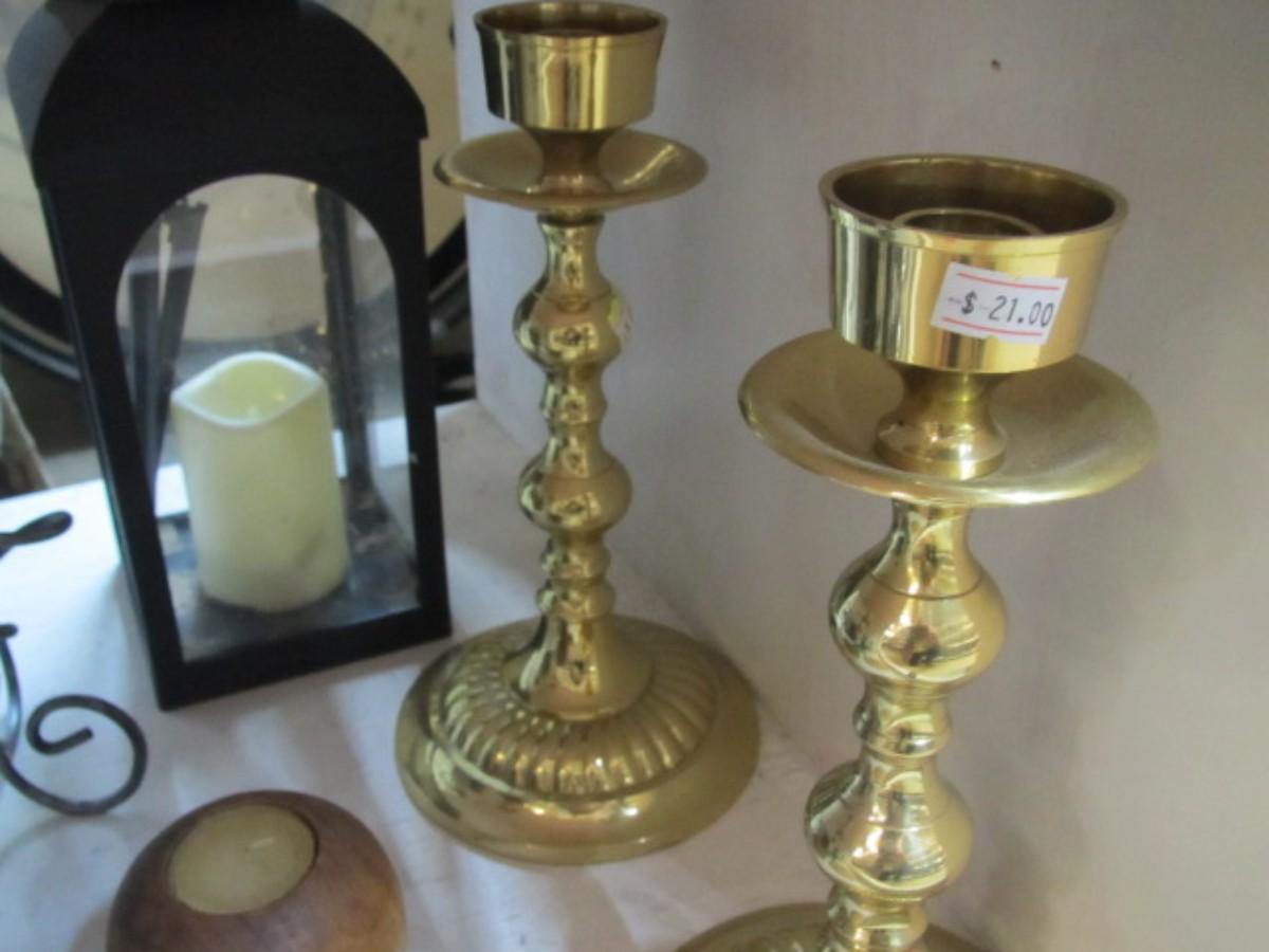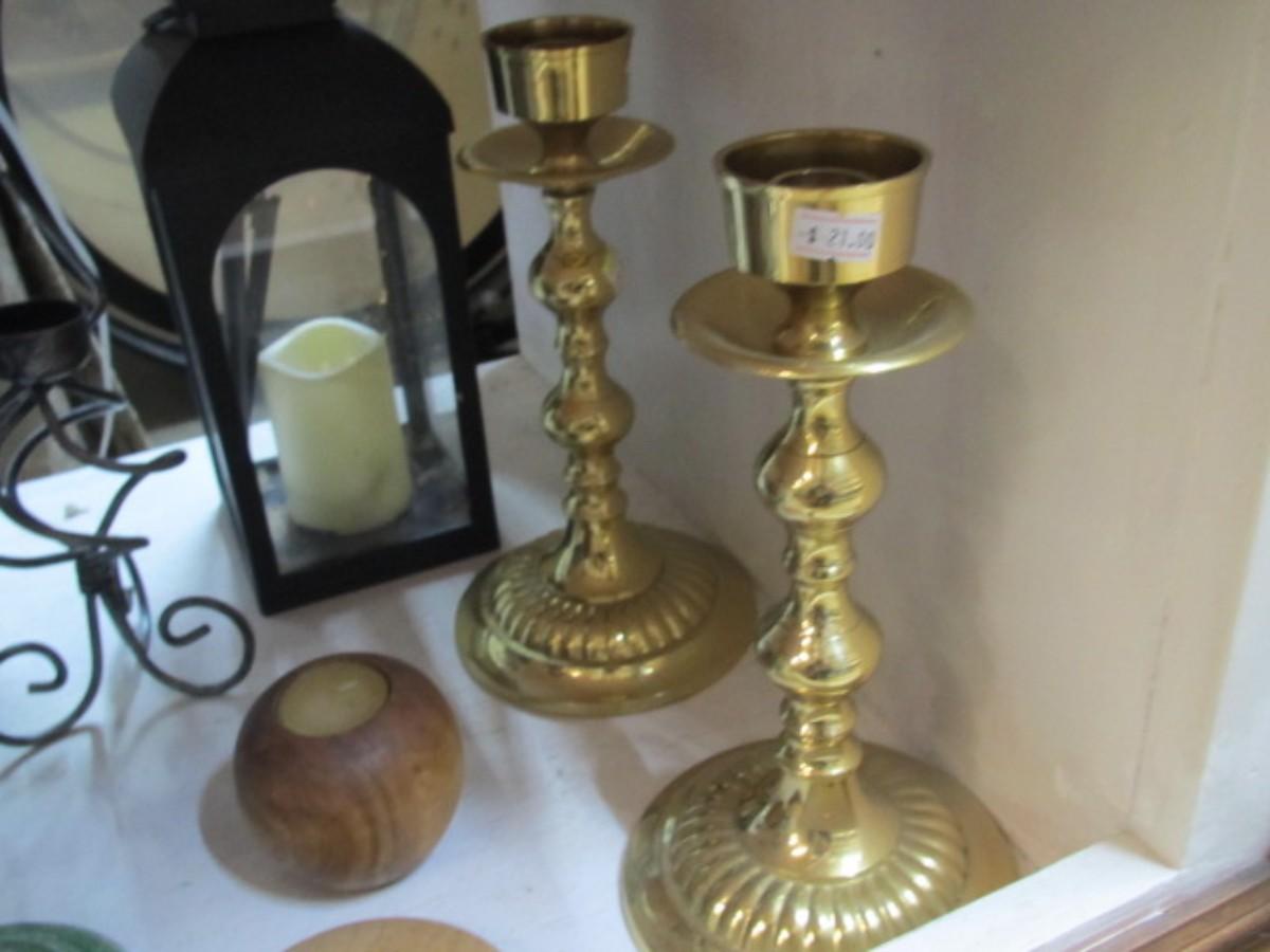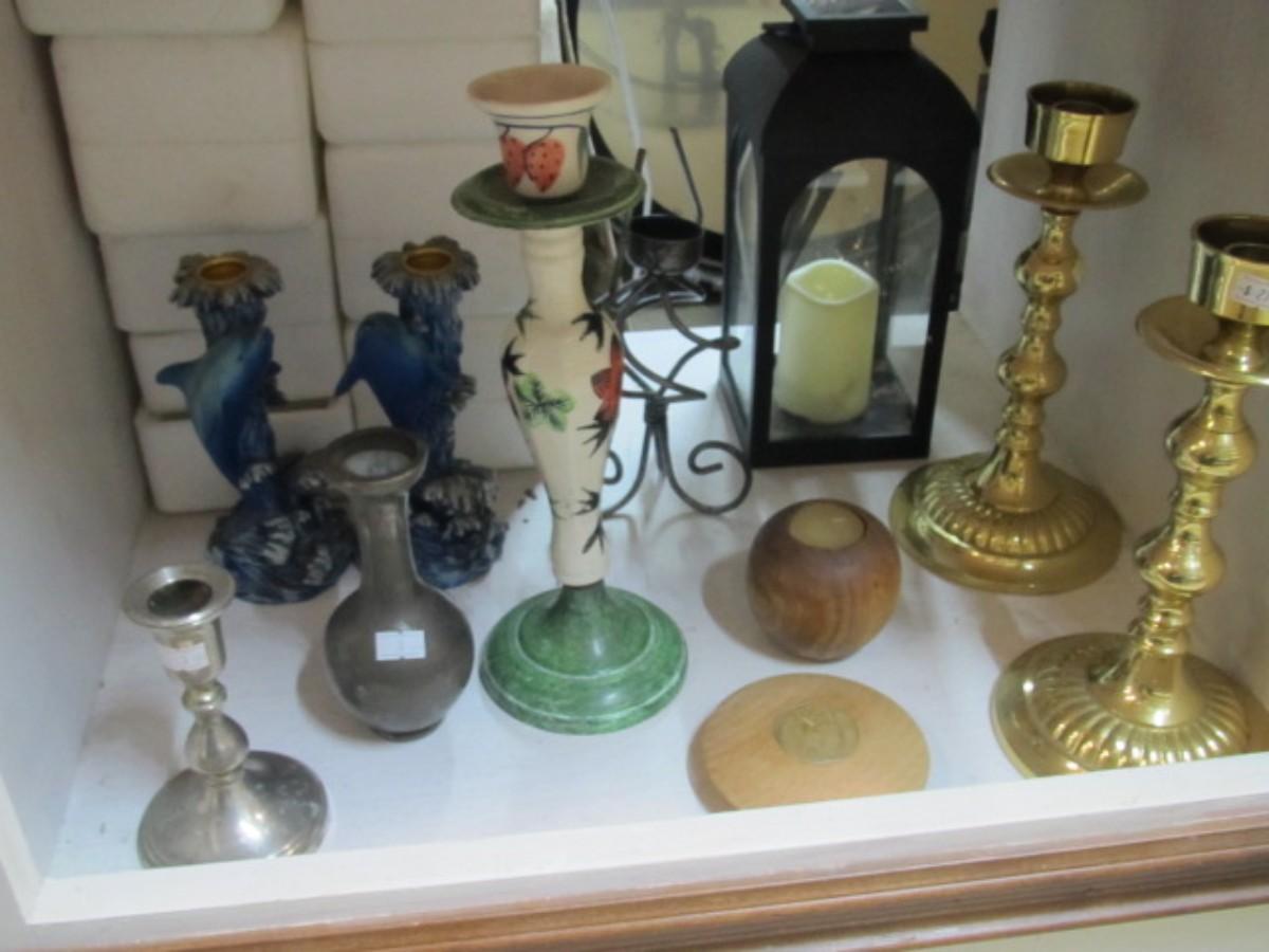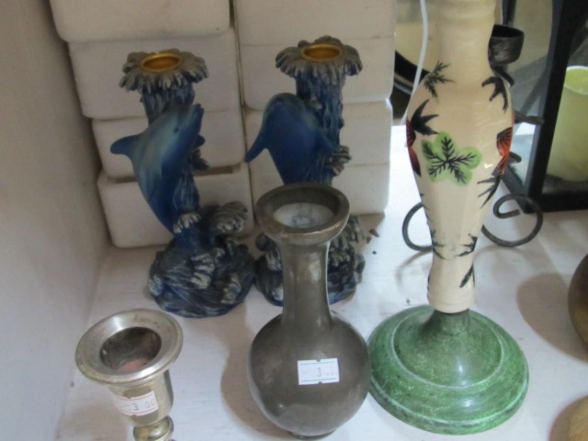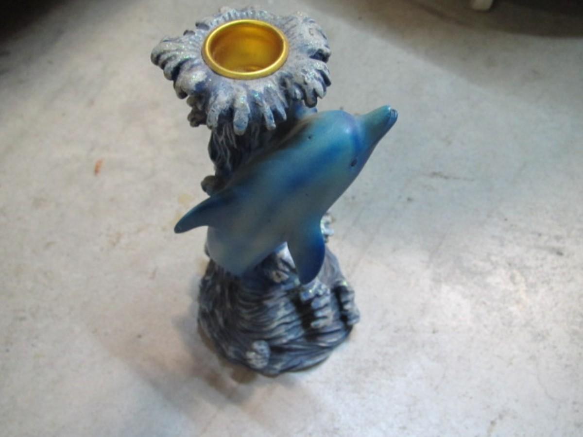 Ceramic Candle Holder Including Dolphins & Brass Candle Holders
