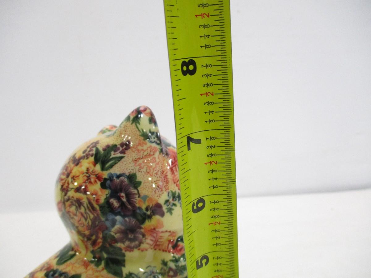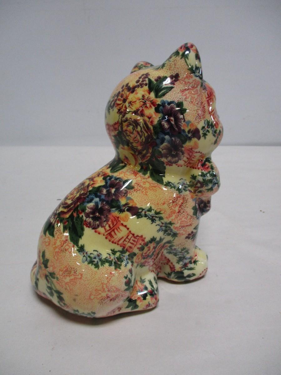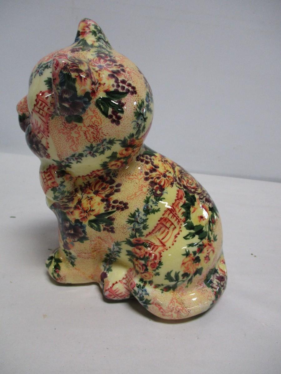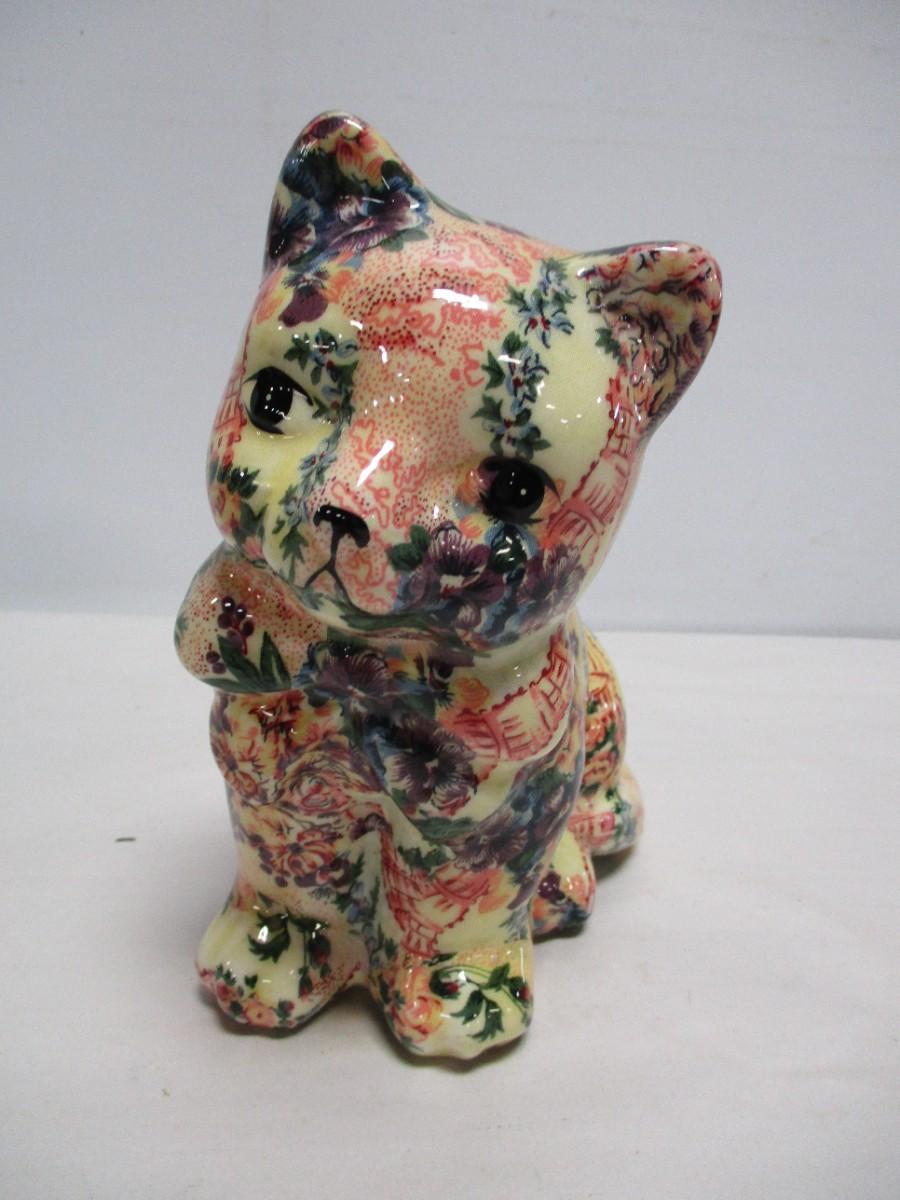 Ceramic Cat Figure Fabric & Glaze Covered Sitting Kitten