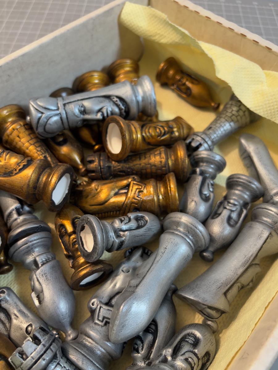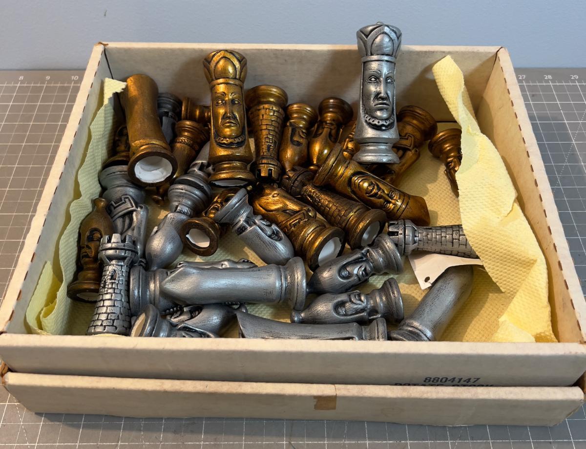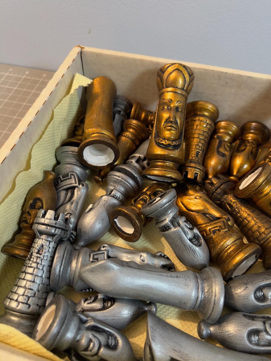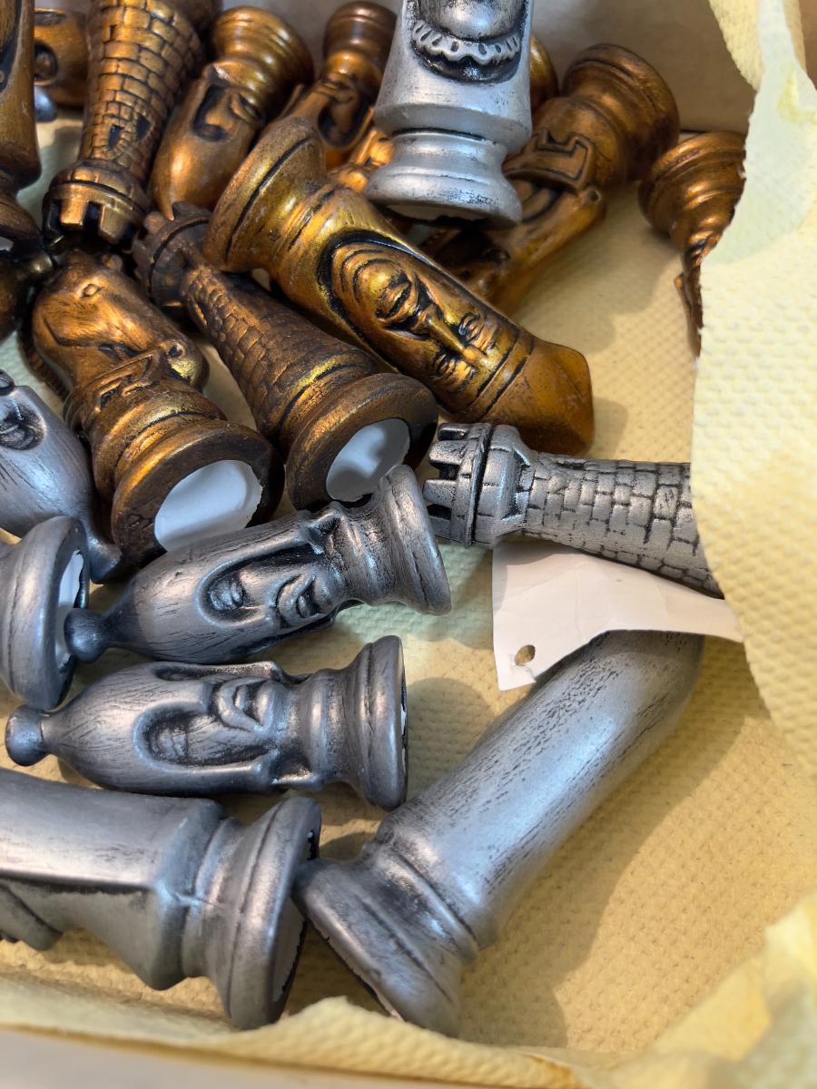 Ceramic Chess Men 32 total Ceramic Silver & Gold Tone