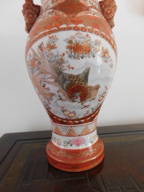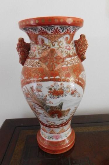 Ceramic Chinoiserie Urn Vase with Stamp 10"