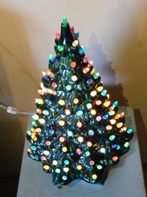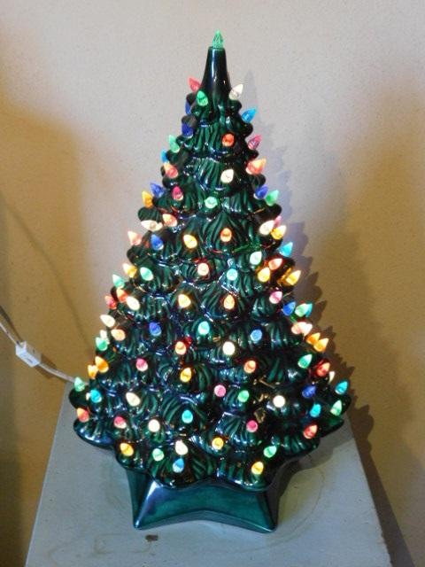 Ceramic Christmas Tree 19" has some bulbs missing at bottom as pictured
