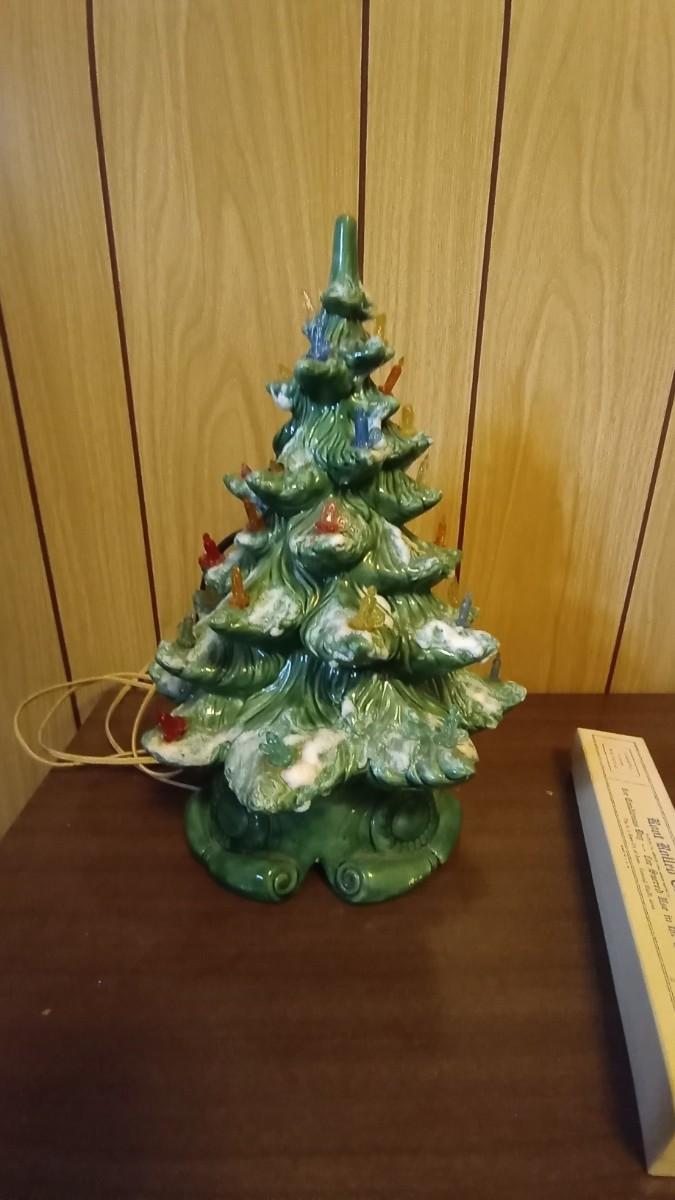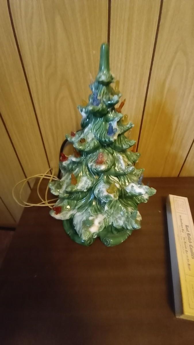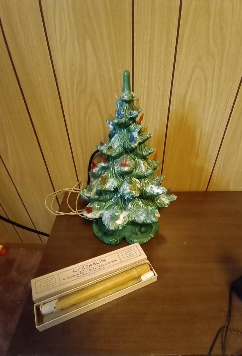 CERAMIC CHRISTMAS TREE MEASURES APPROX. 17 TALL AND CANDLES