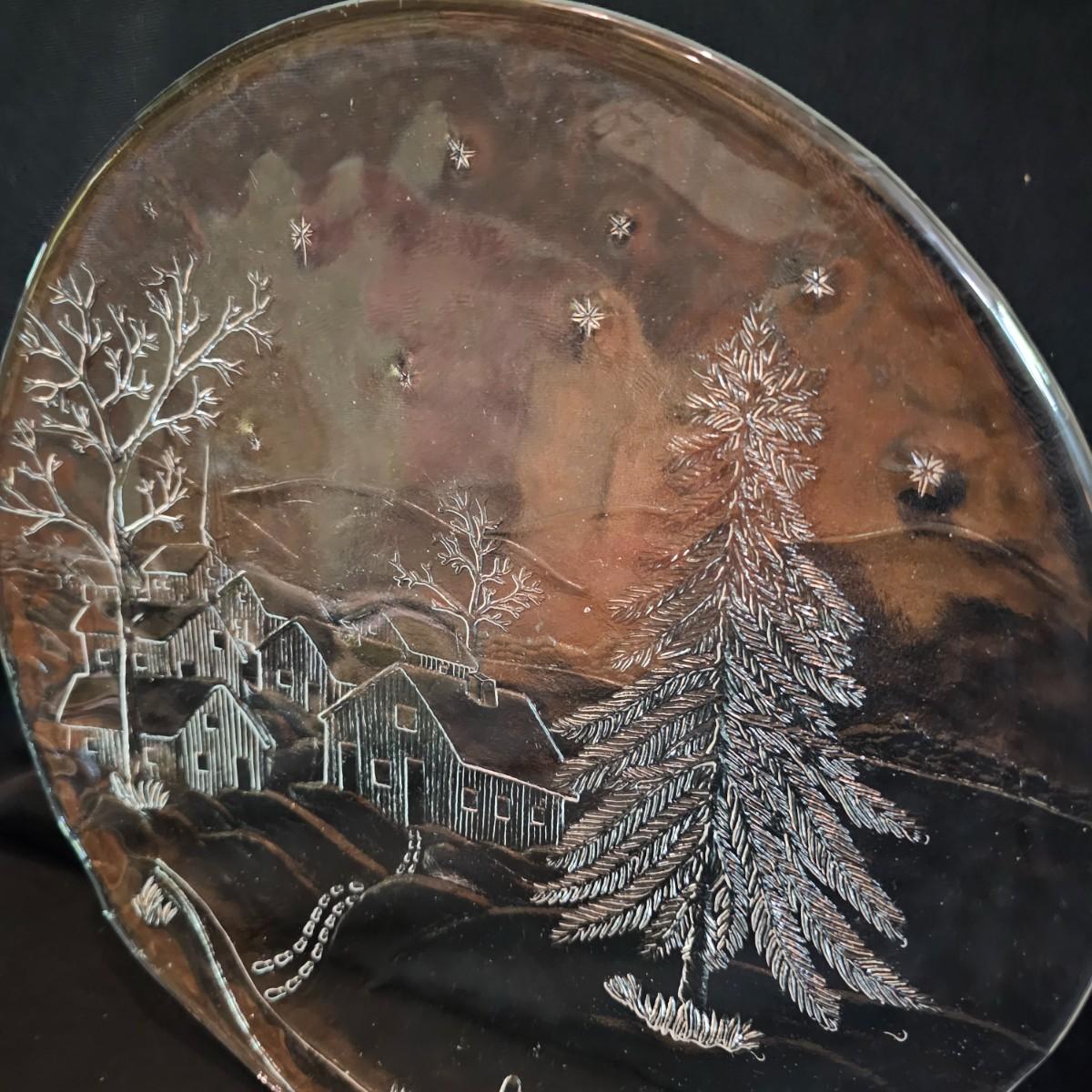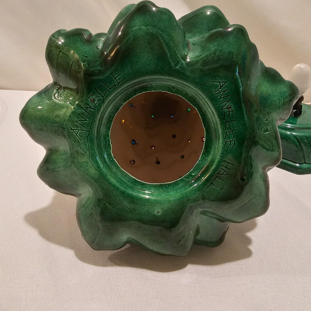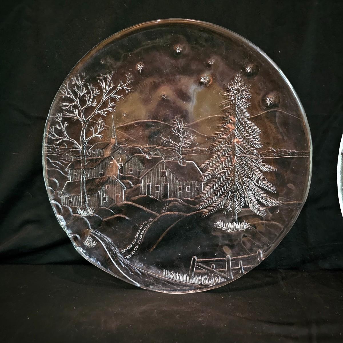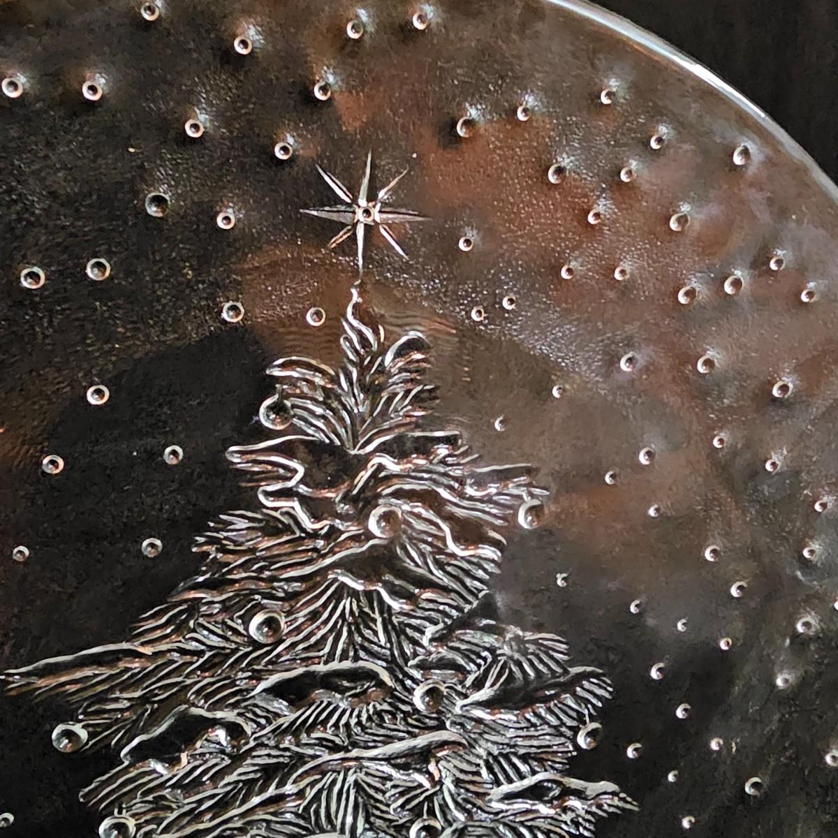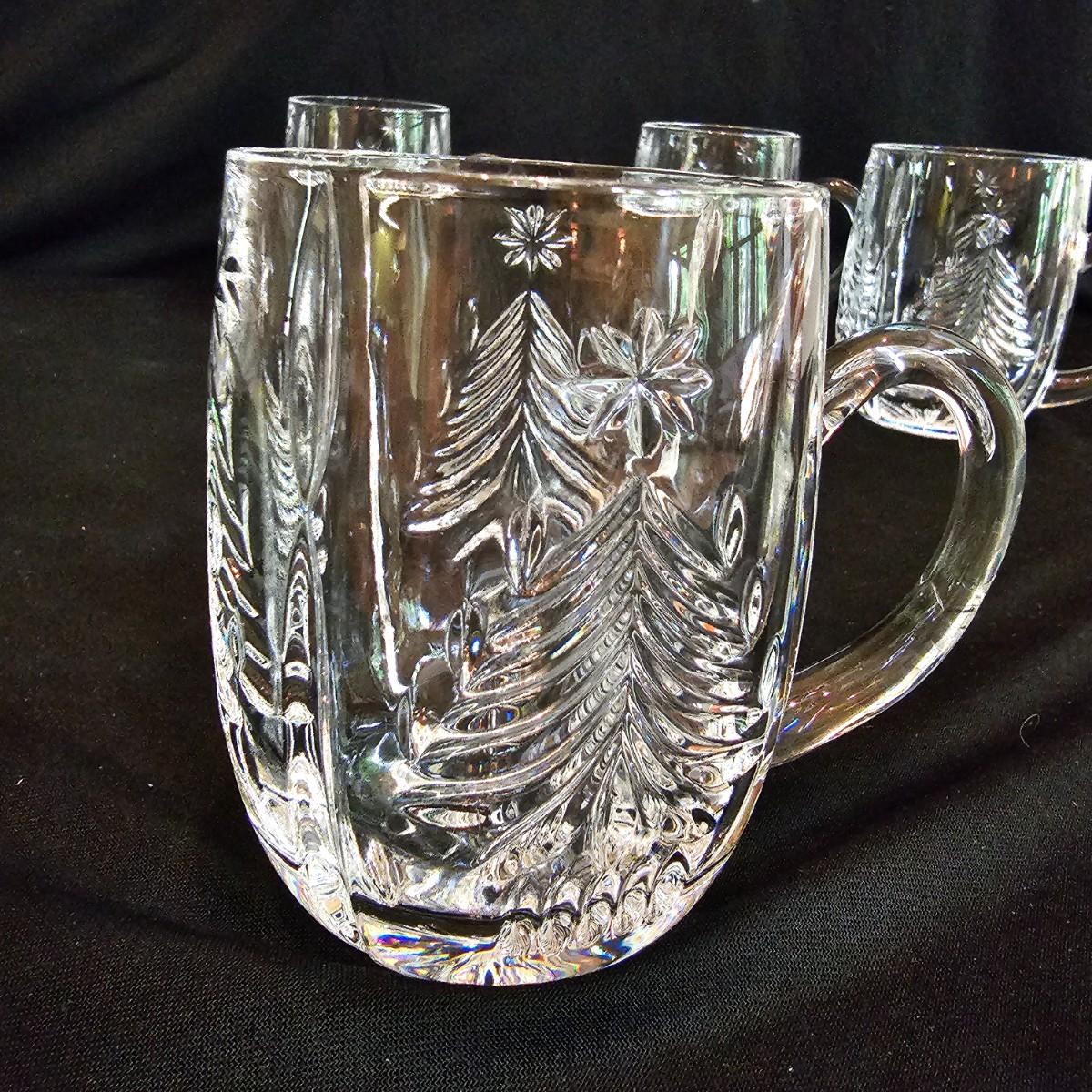 One green ceramic lighted Christmas tree and base. Tree is 6.5"D x 11"H. Also included are several holiday serving plates, two clear items are 12.5"D and the smaller bell plate is 10"D. Includes a Santa themed candle holder, a small tree serving dish and four clear glass handled mugs. Note that ceramic tree is missing some jewels. Tree lit up when plugged in. See photos for details. Shipping available.